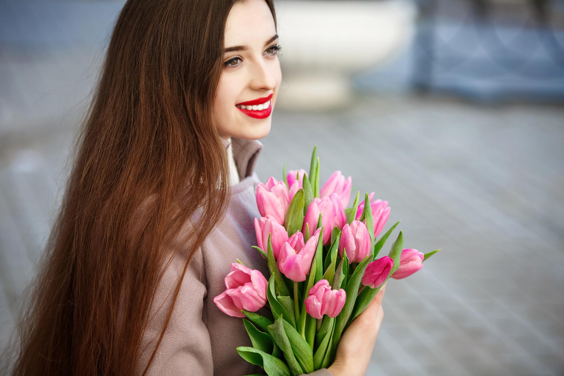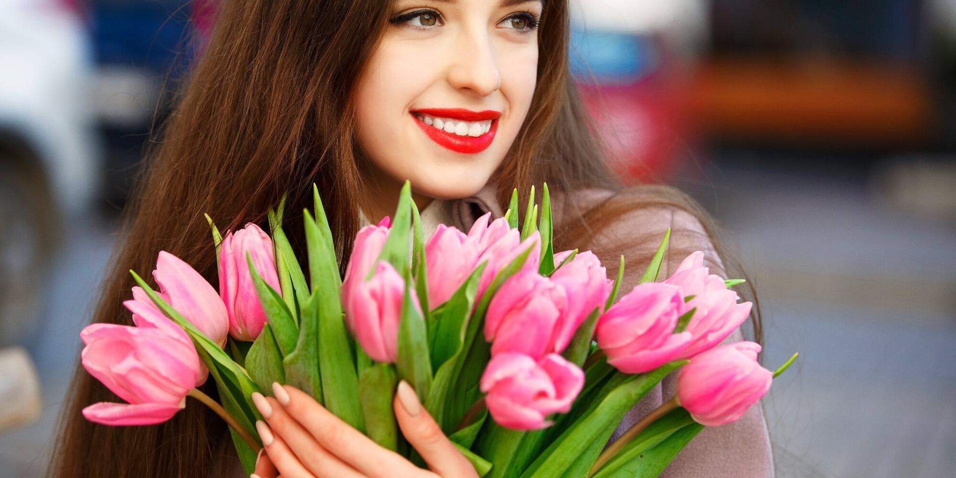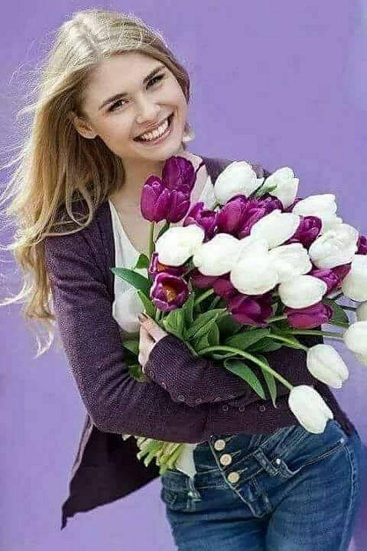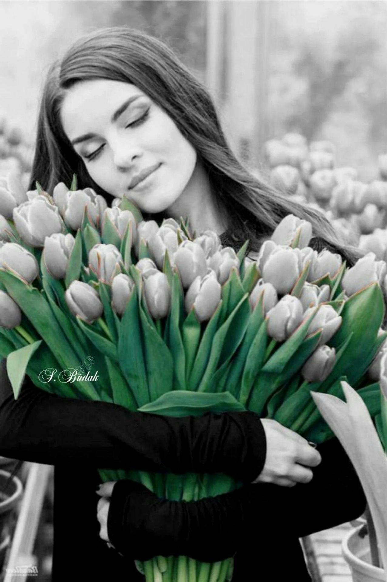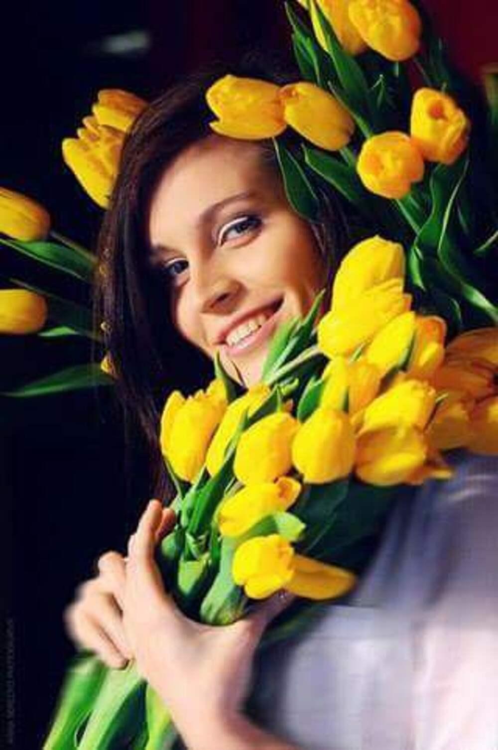 Красивые картинки Девушка с тюльпанами с надписями