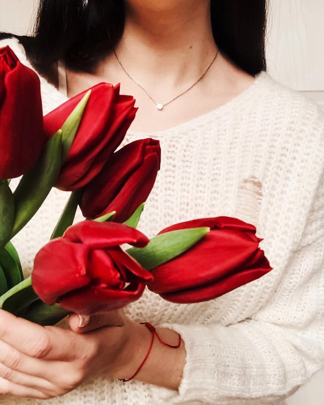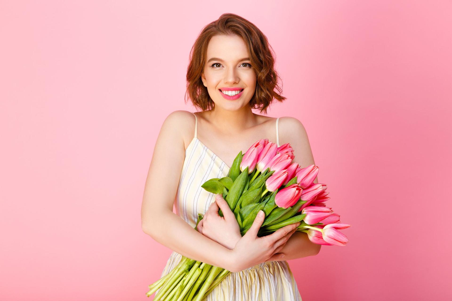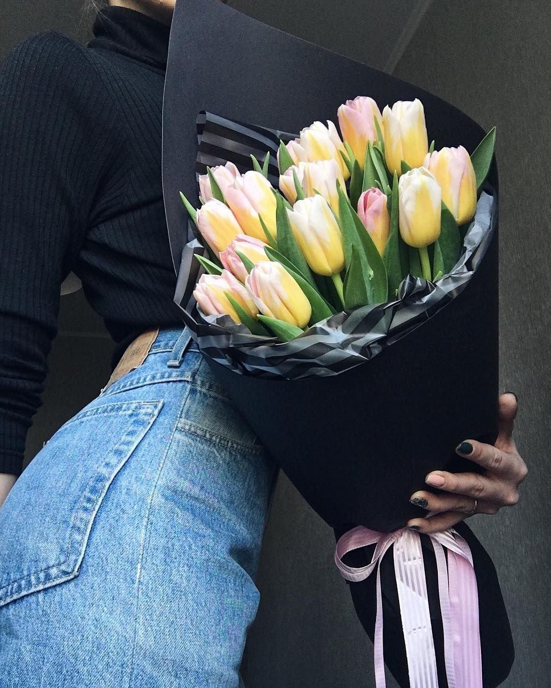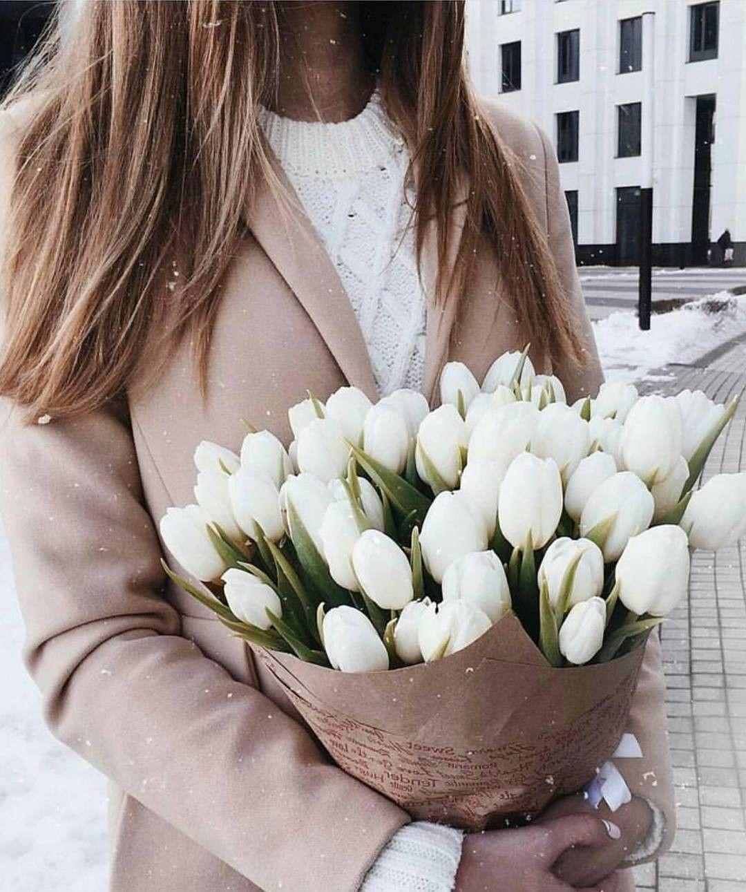 Красивые картинки Девушка с тюльпанами с надписями