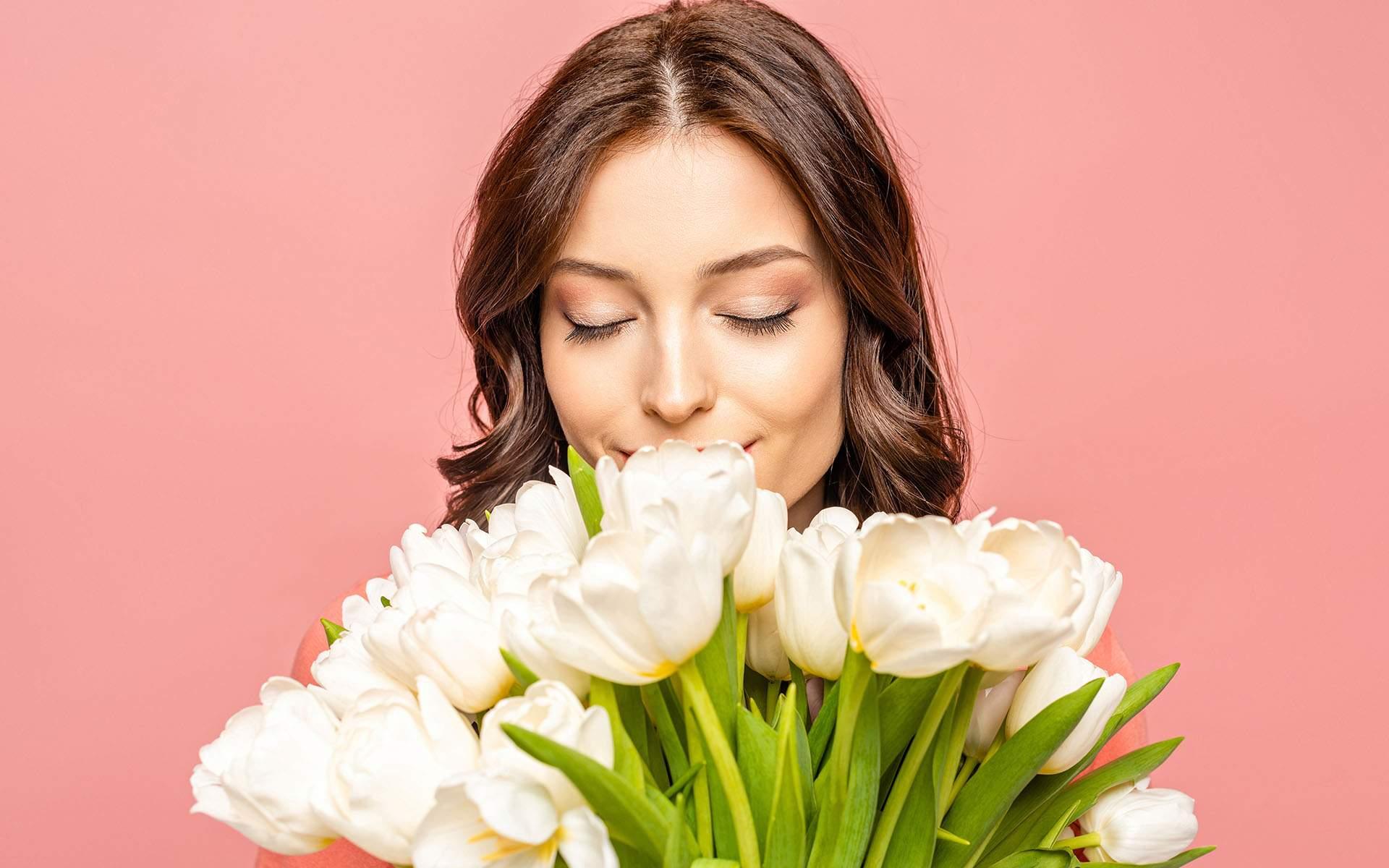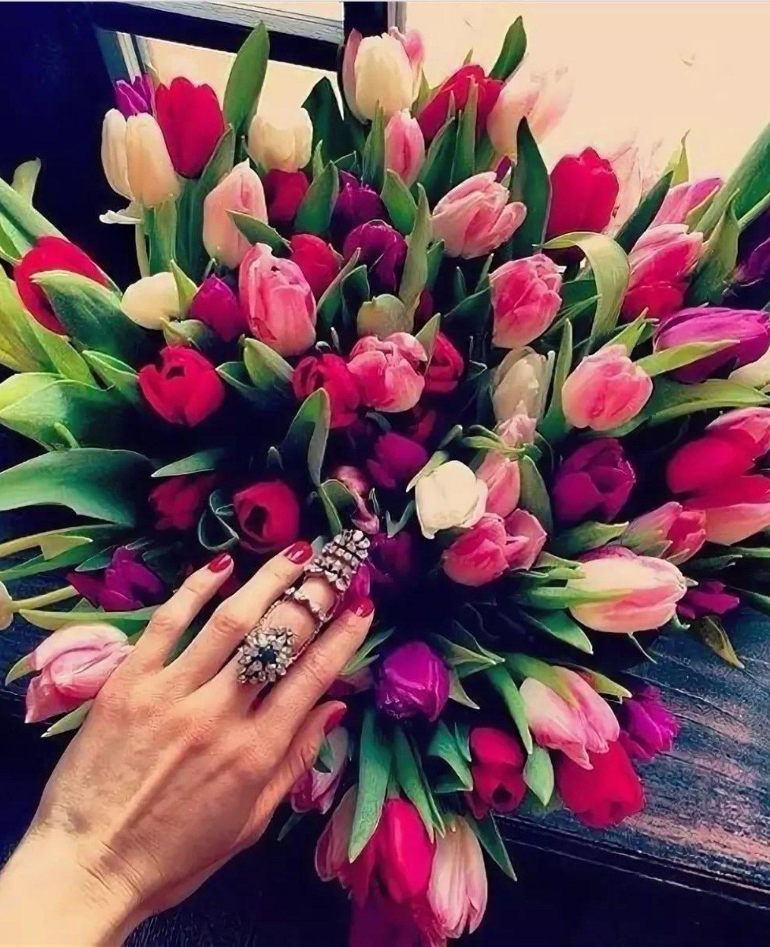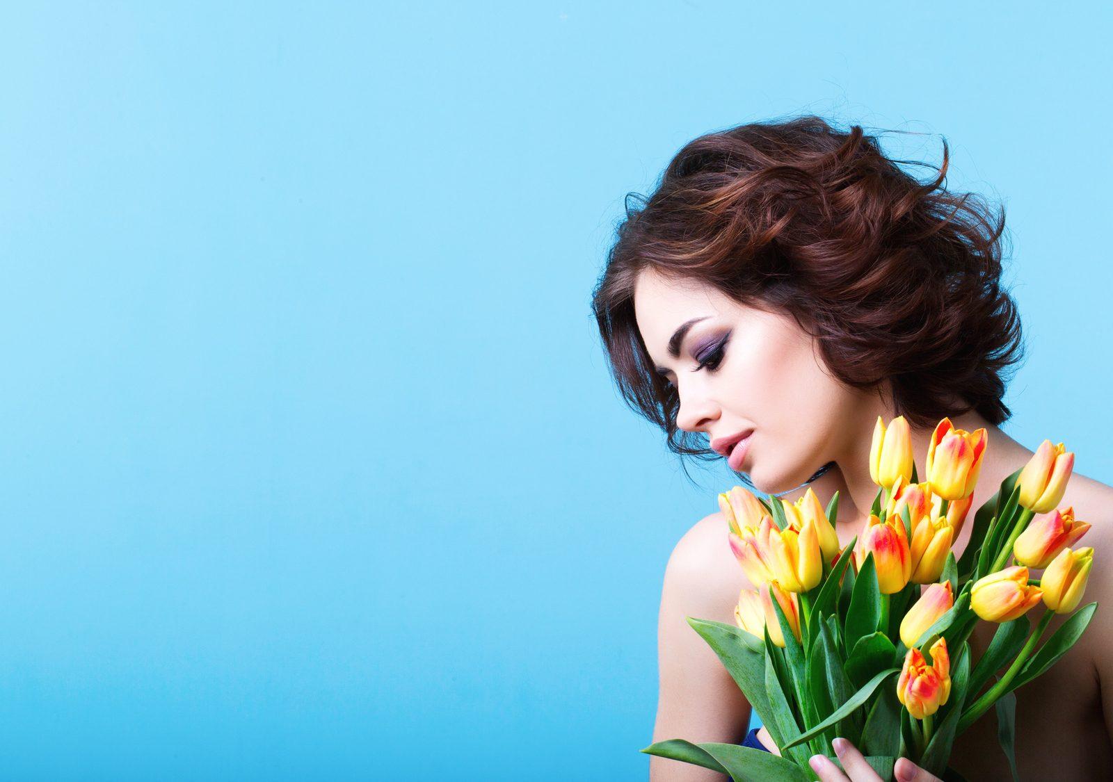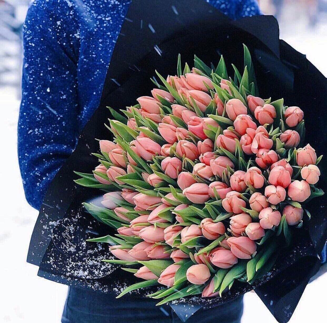 Красивые картинки Девушка с тюльпанами с надписями