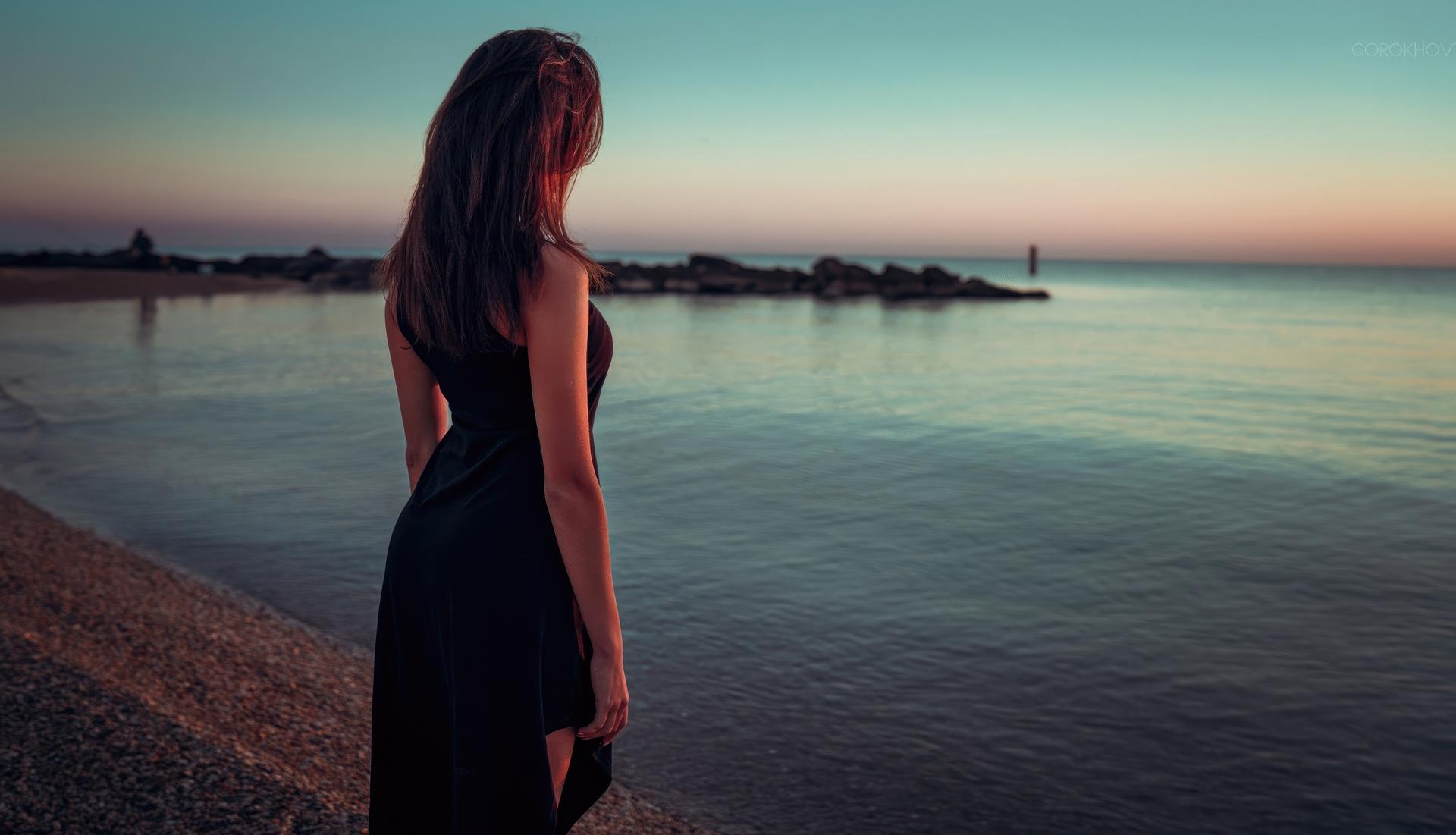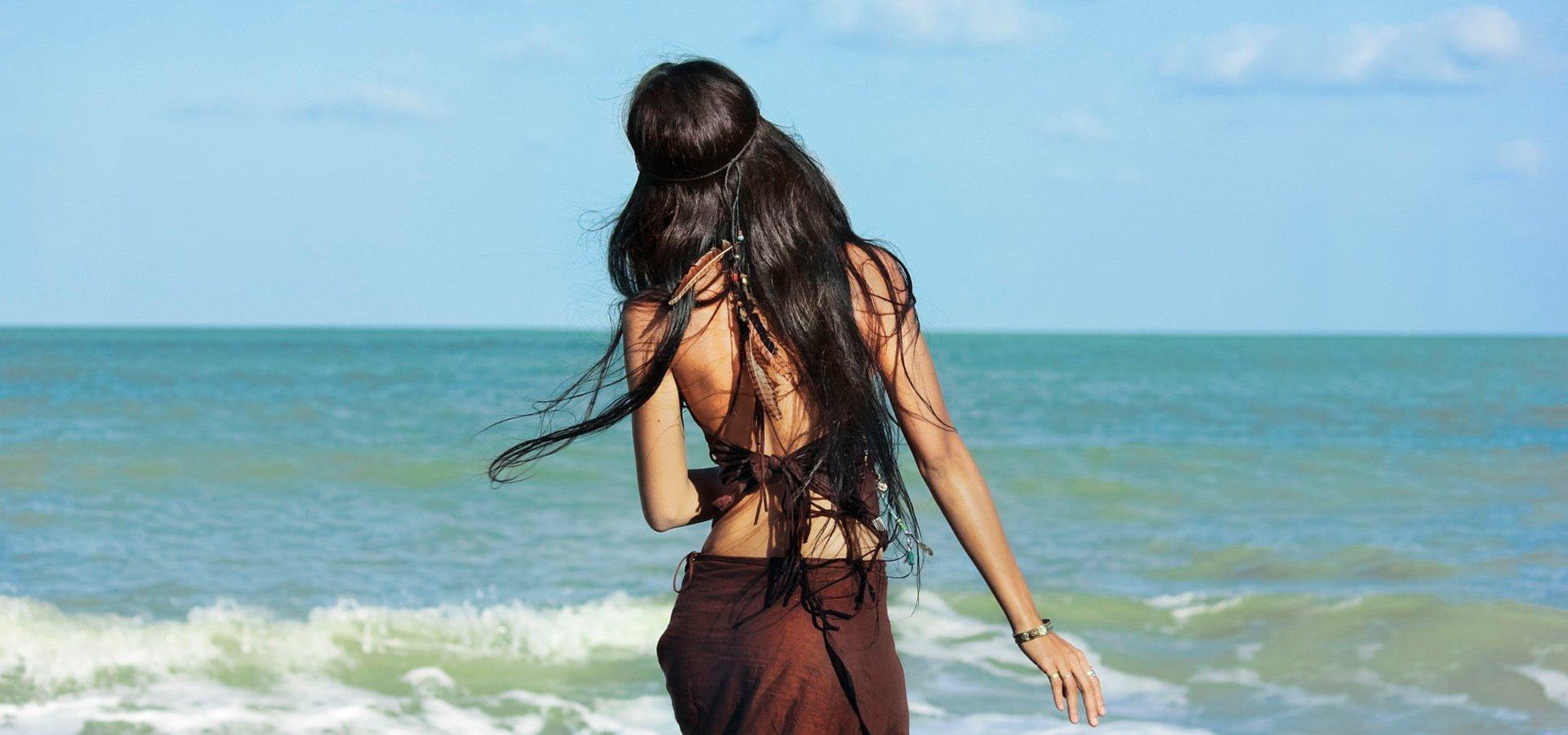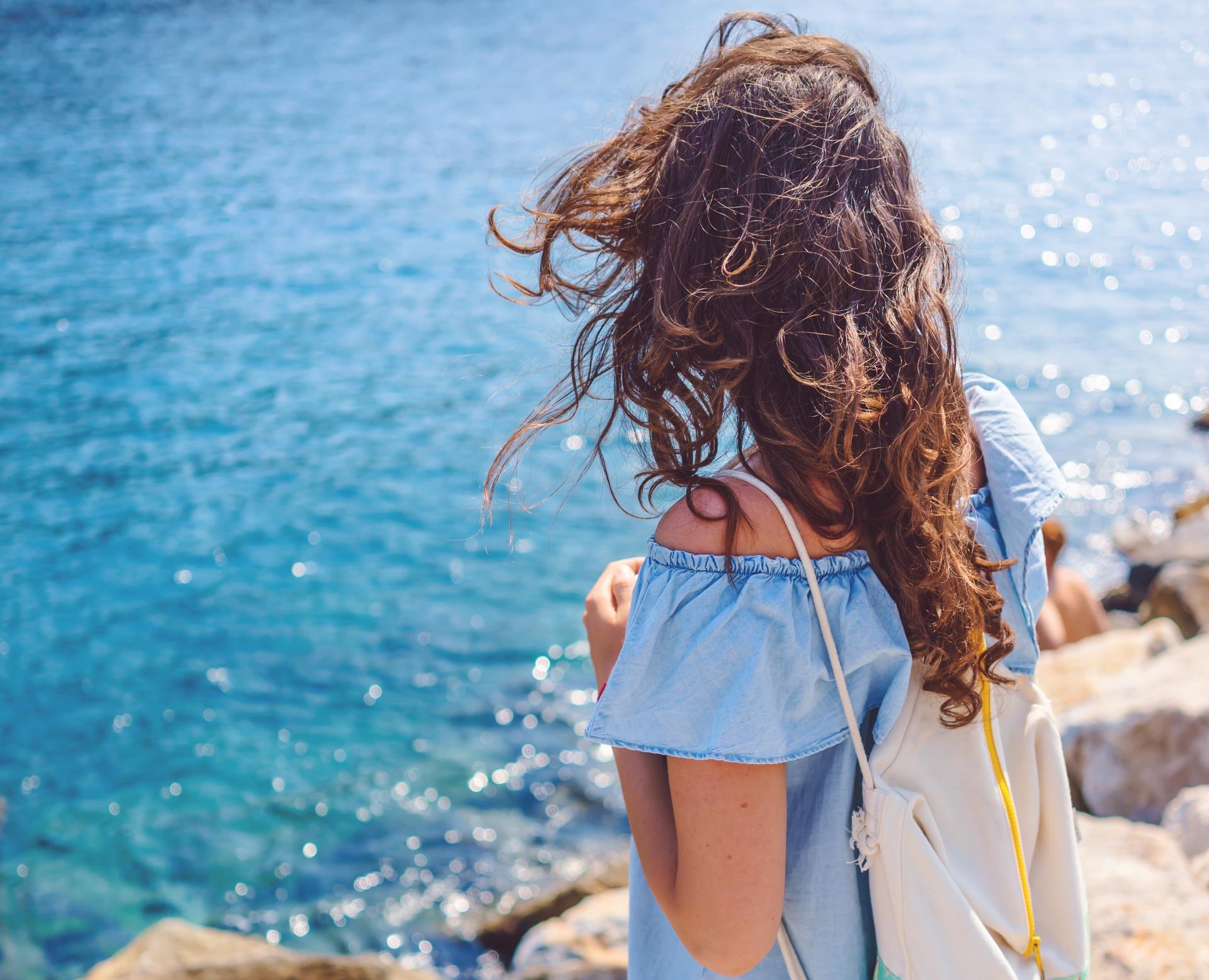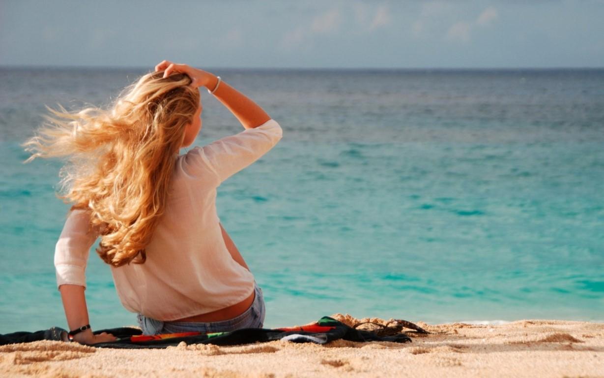 Девушка со спины у моря