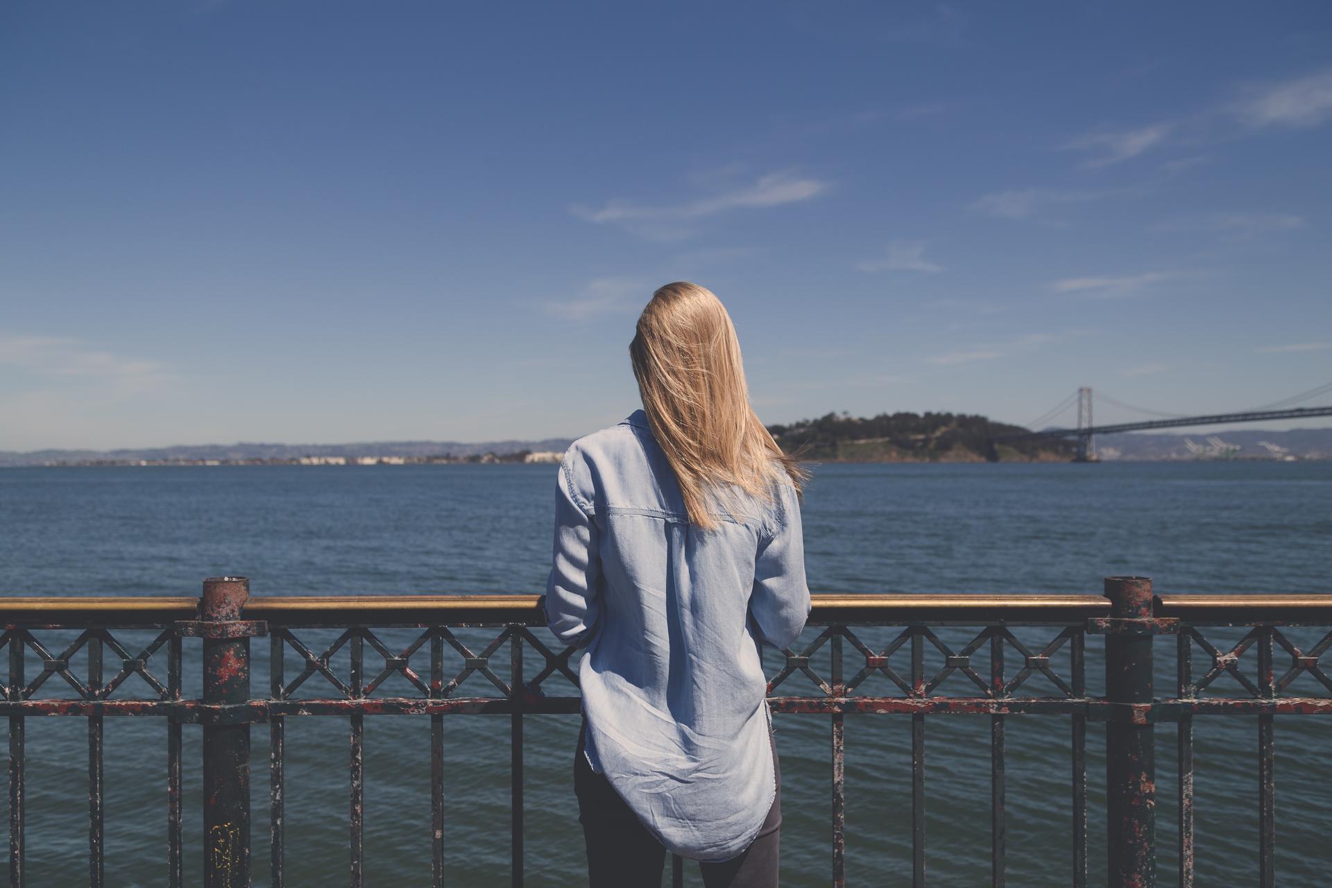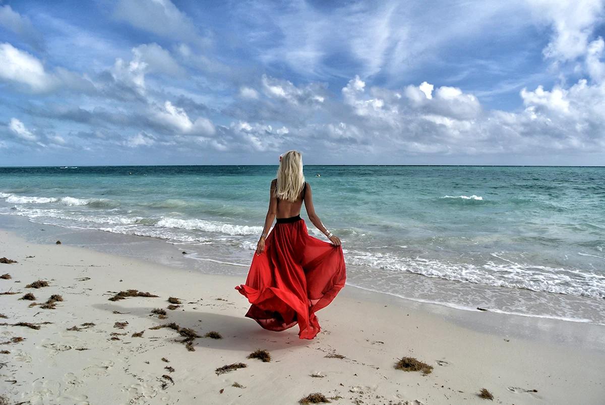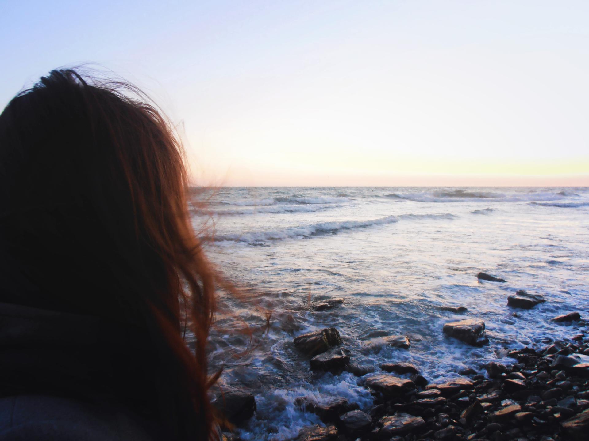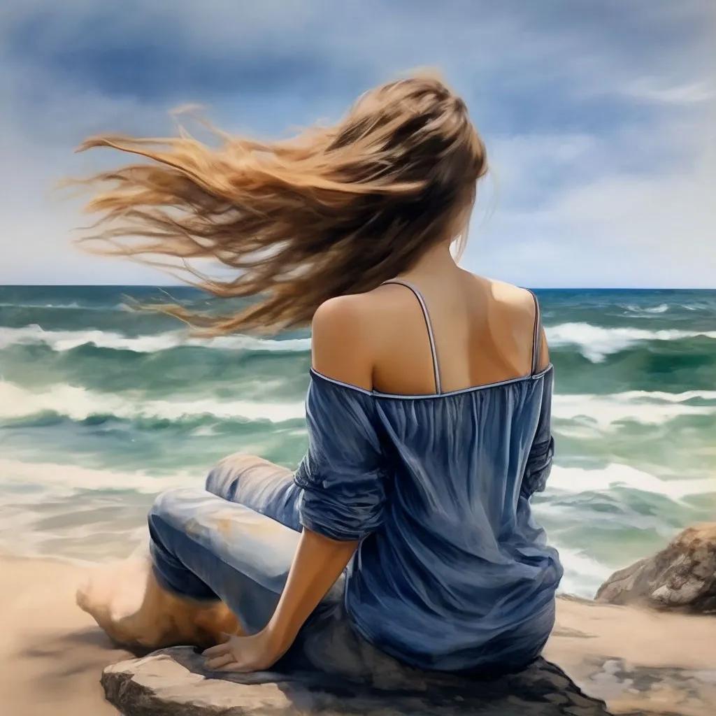 Девушка со спины у моря