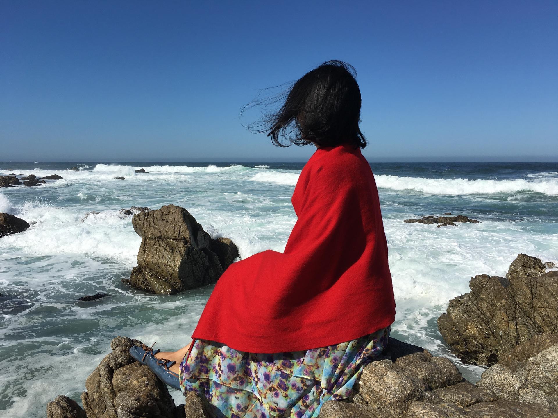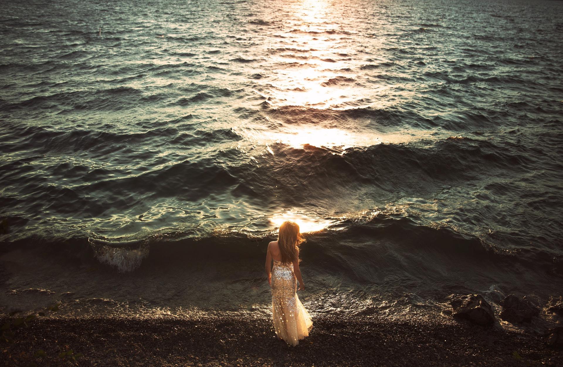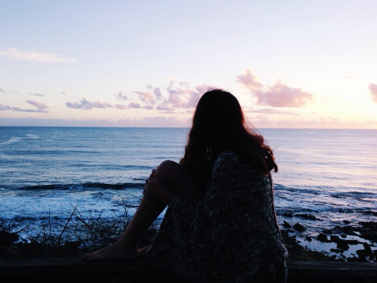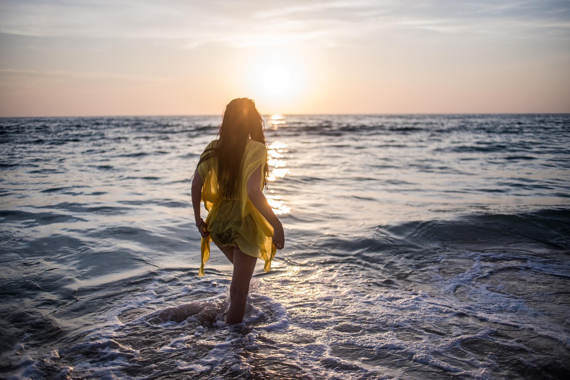 Девушка со спины у моря
