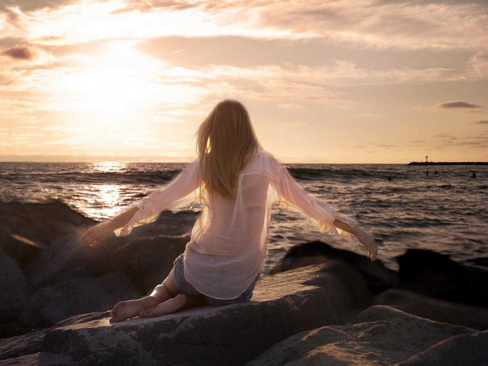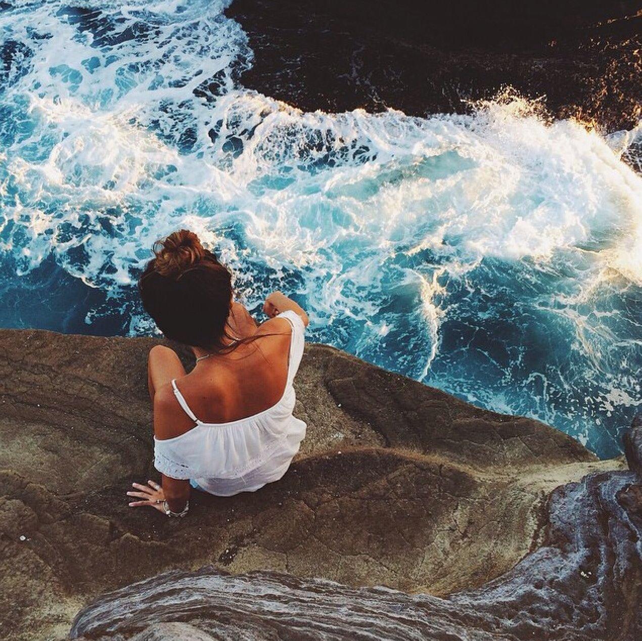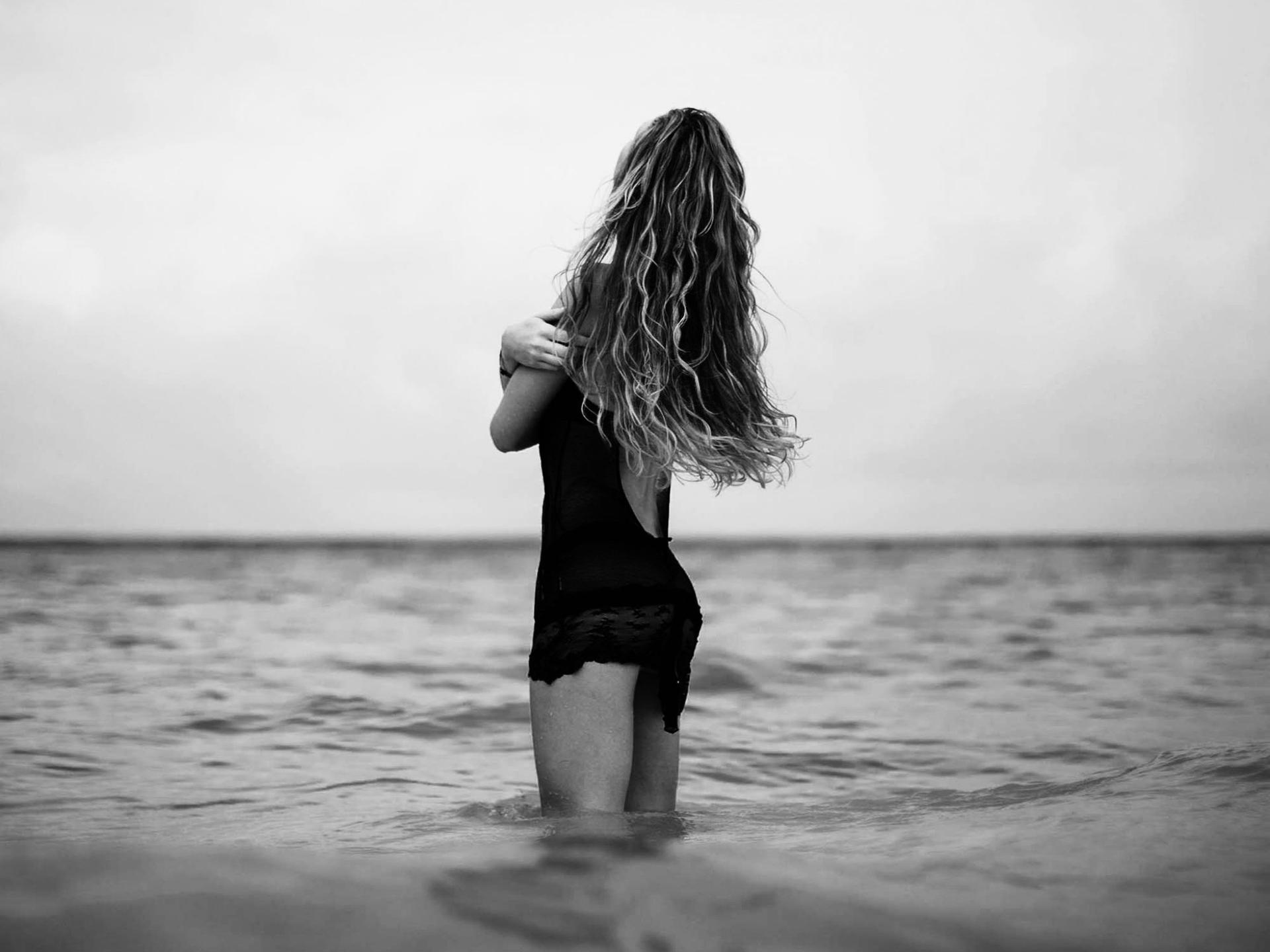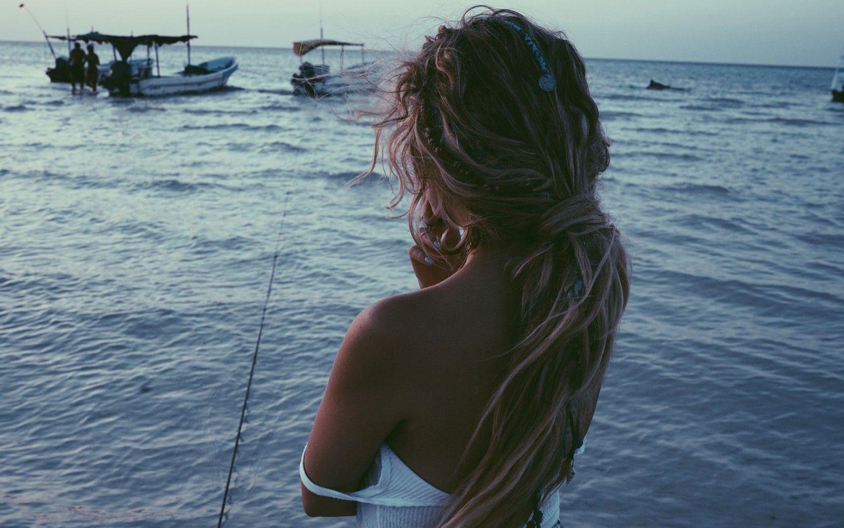 Красивые картинки Девушка со спины у моря с надписями