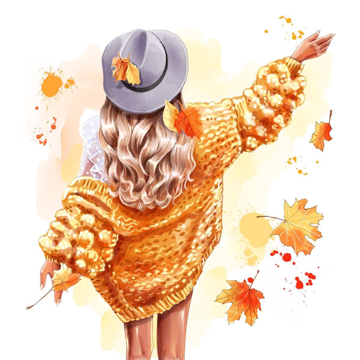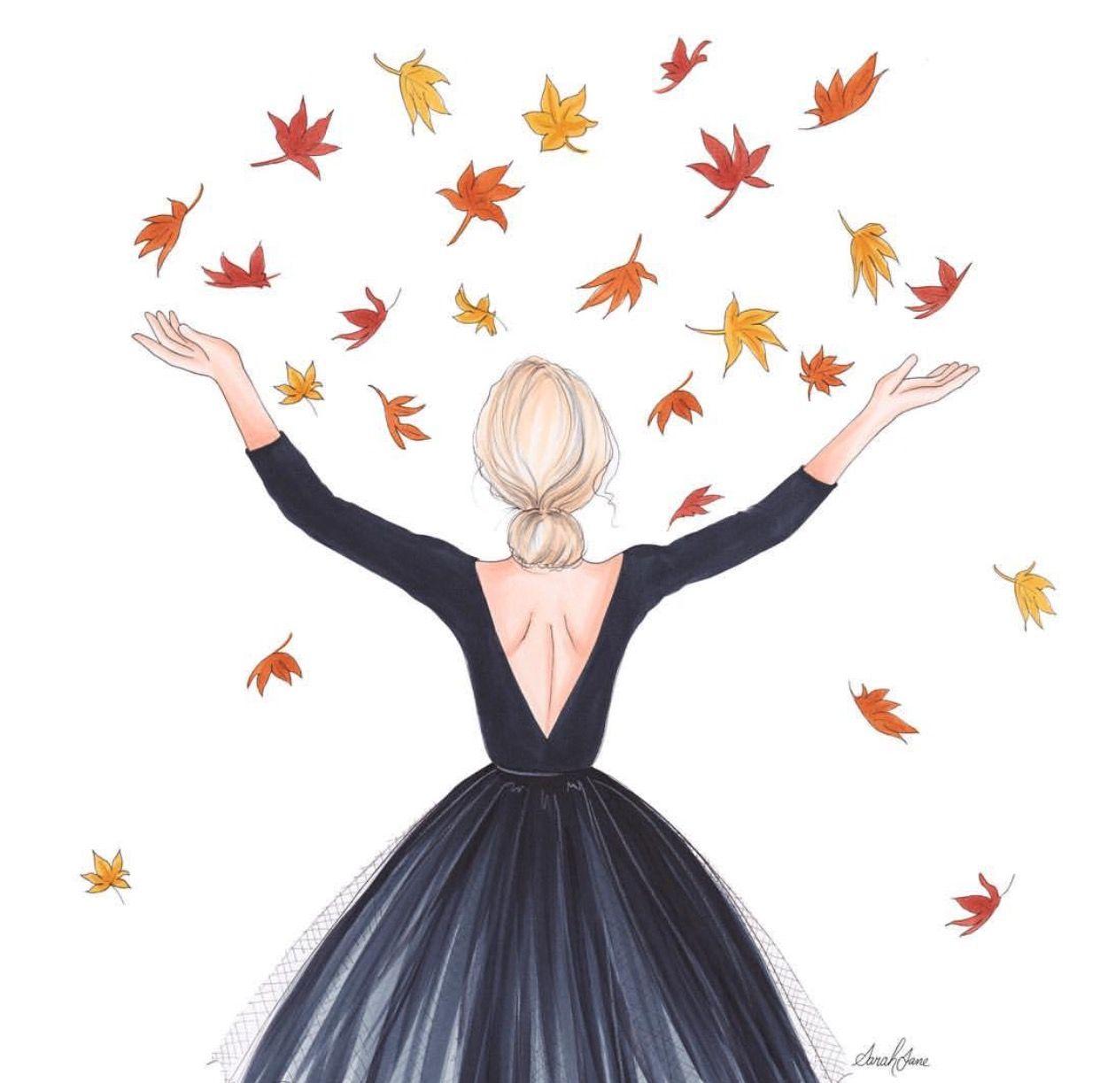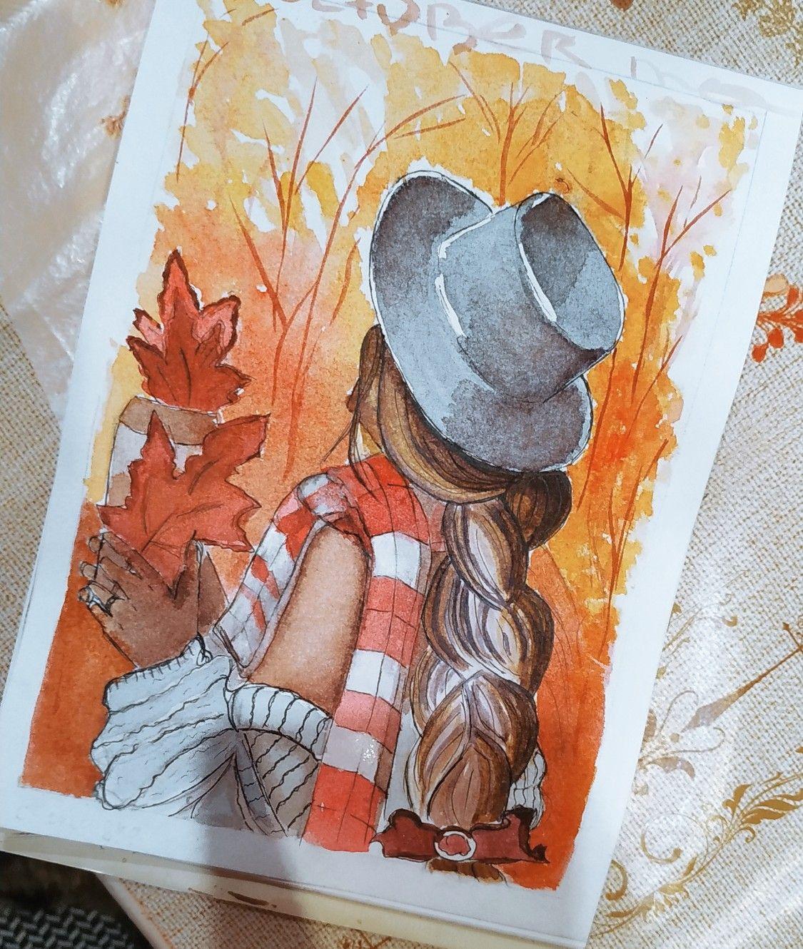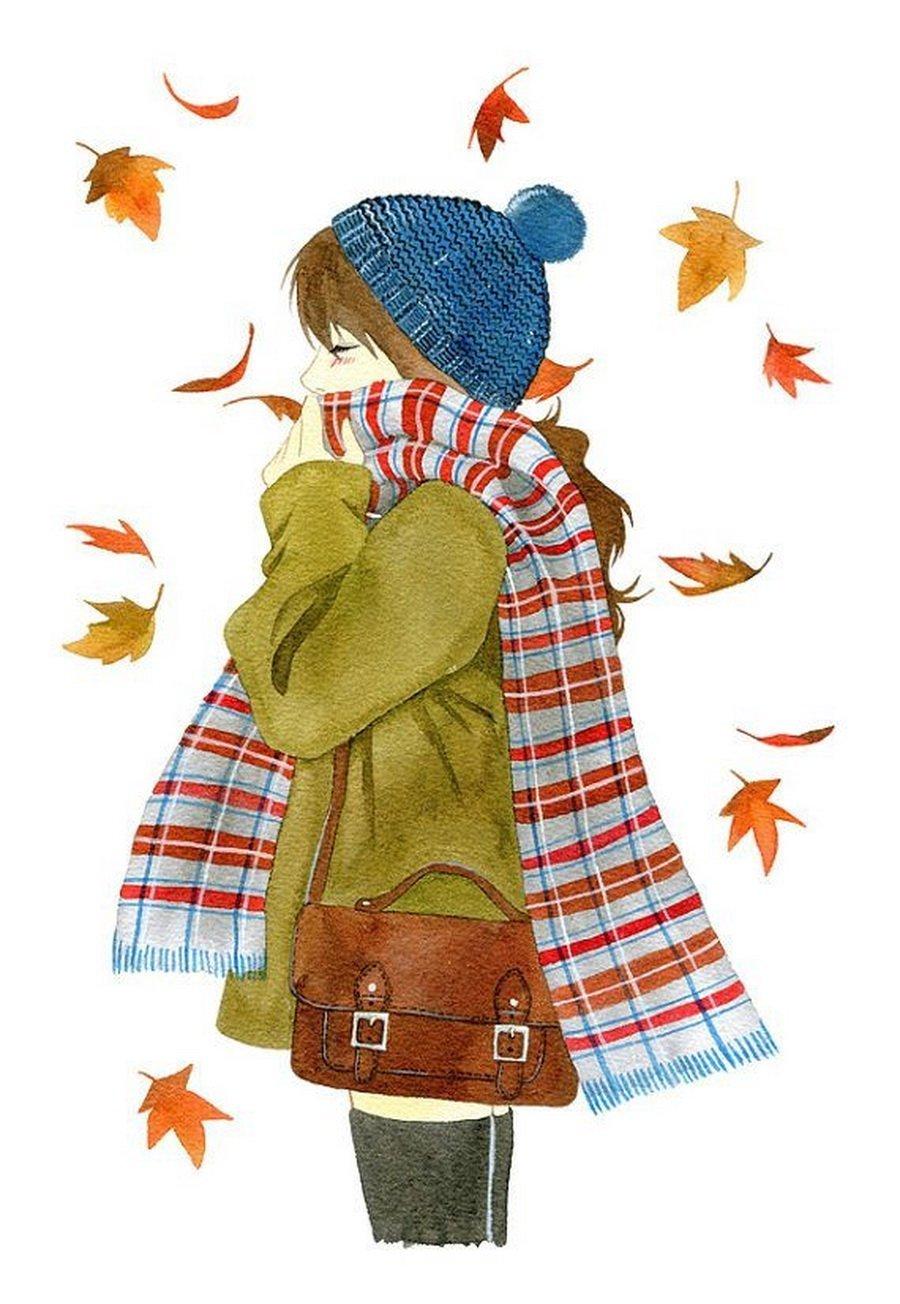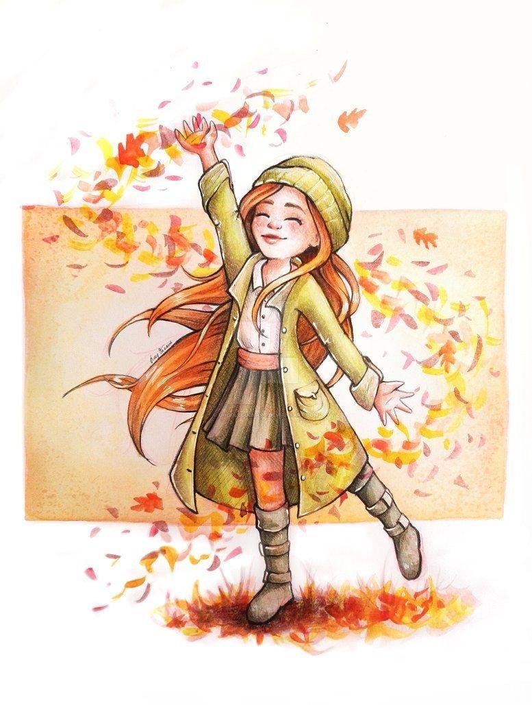 Девушка осень нарисованные