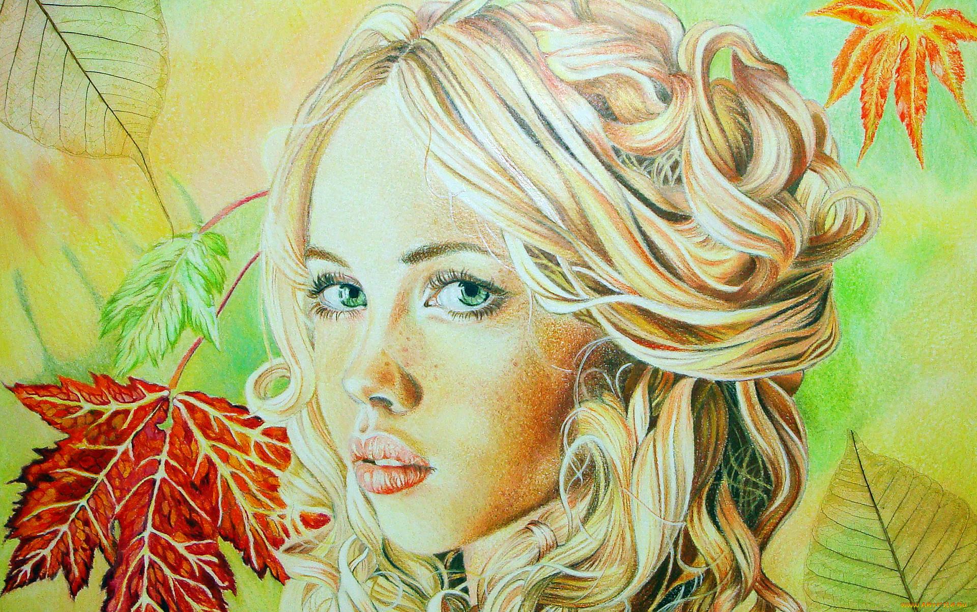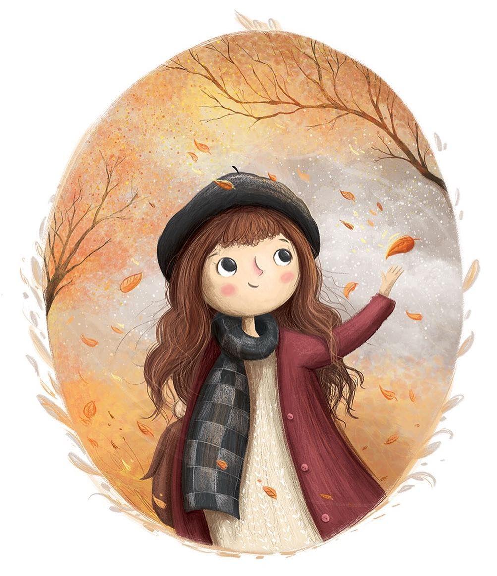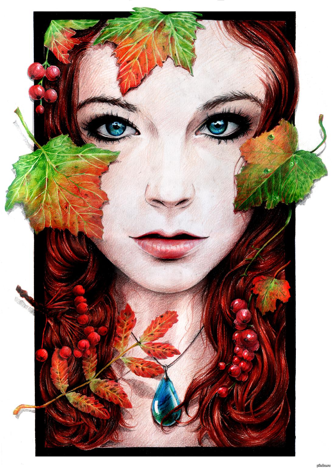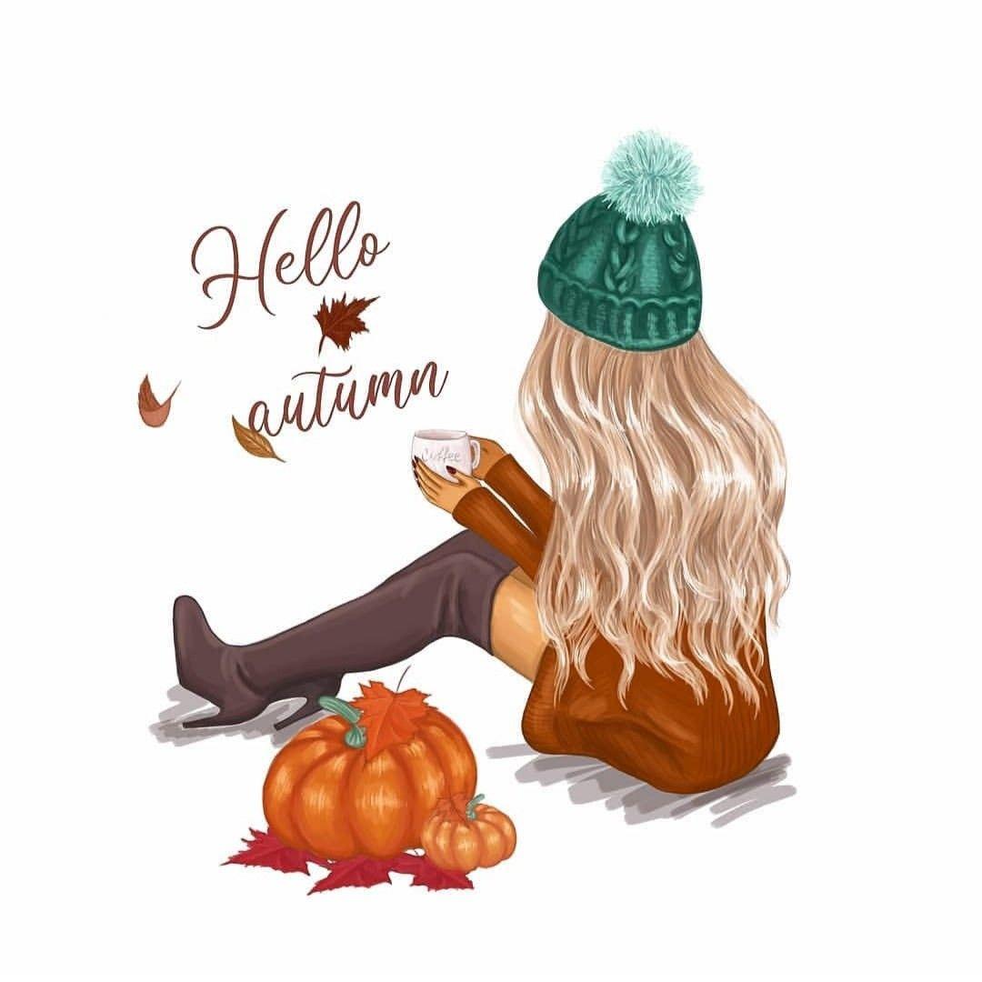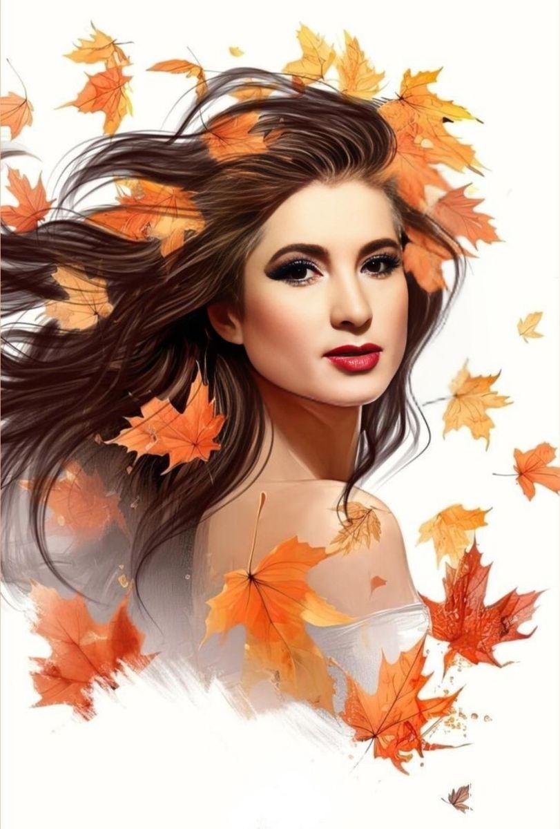 Девушка осень нарисованные