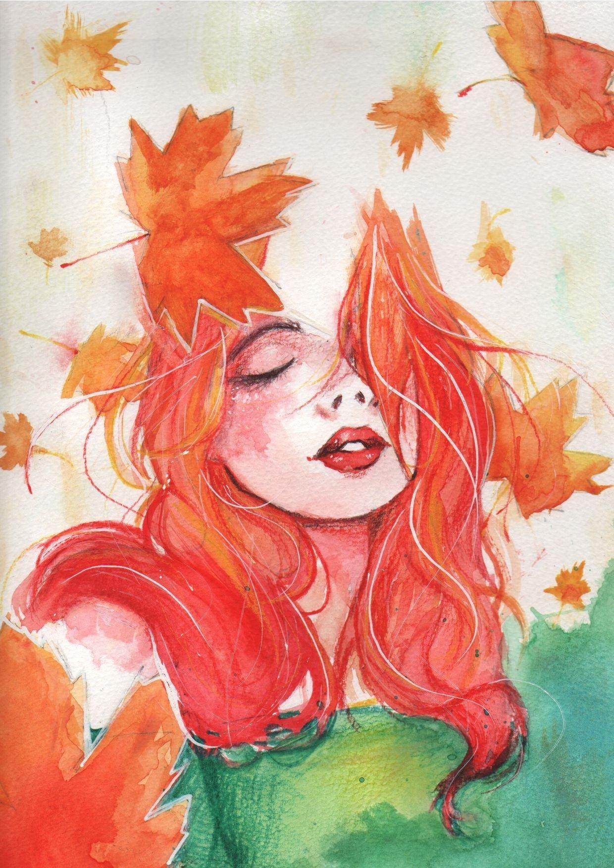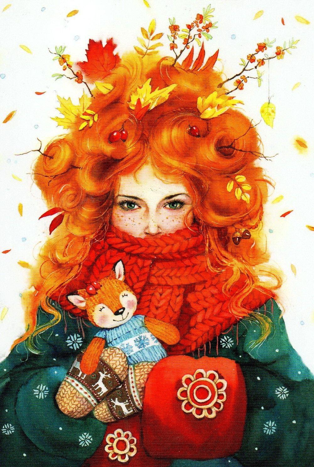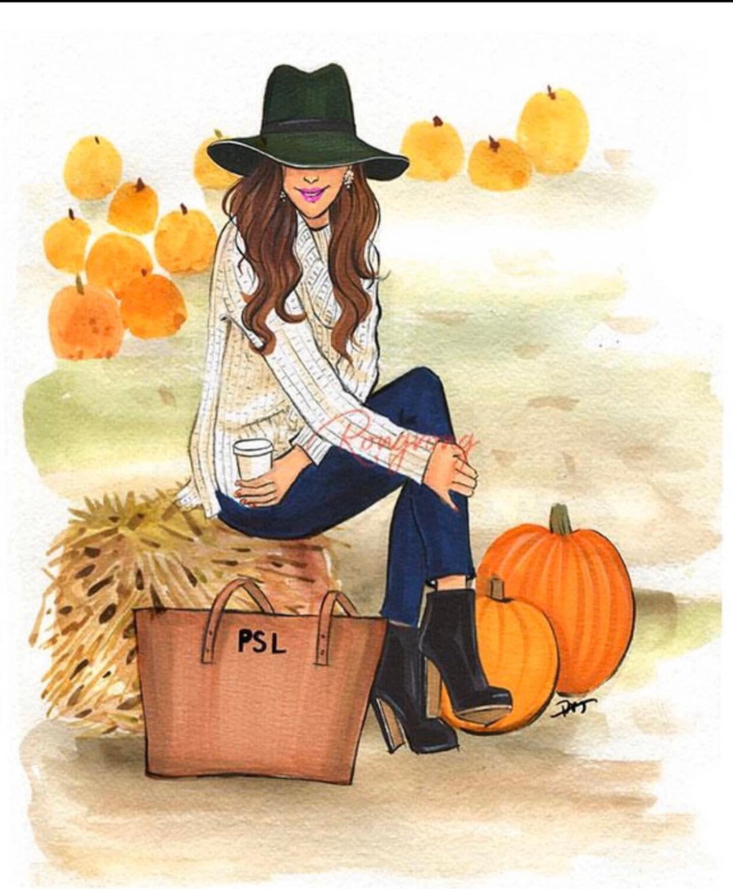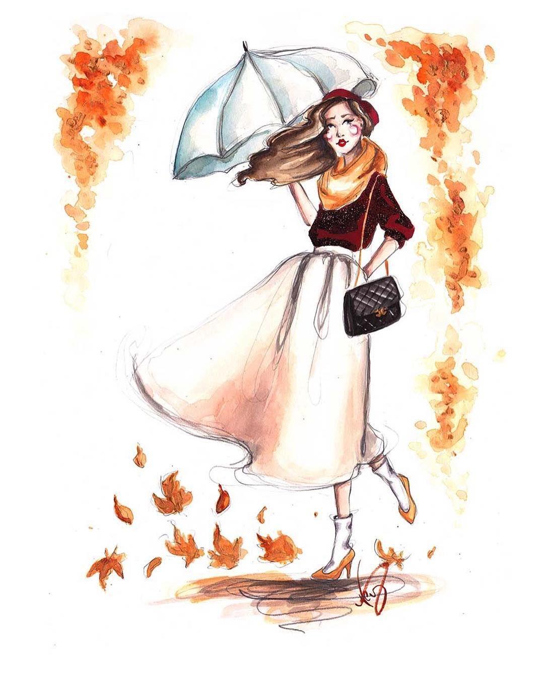 Девушка осень нарисованные
