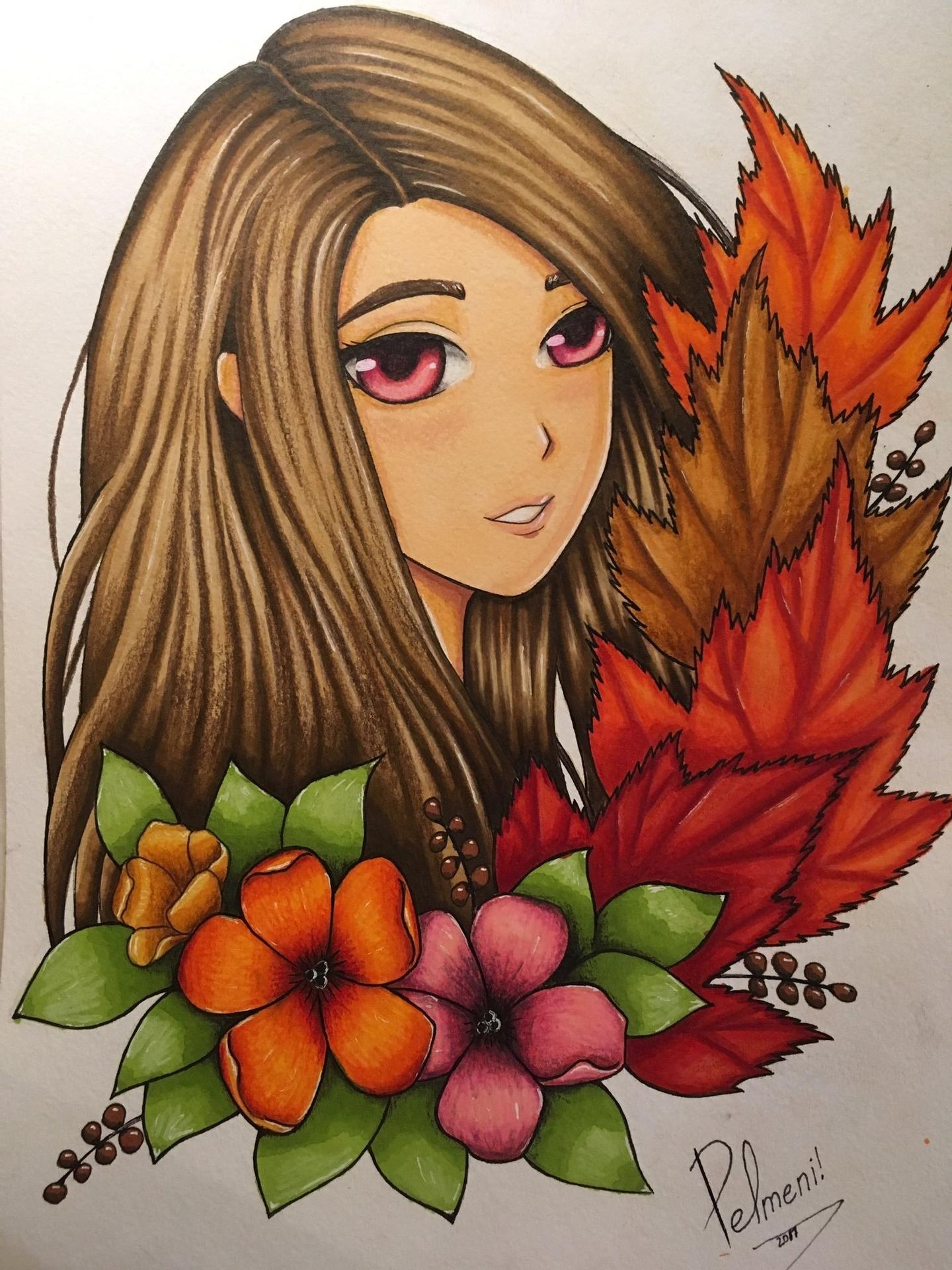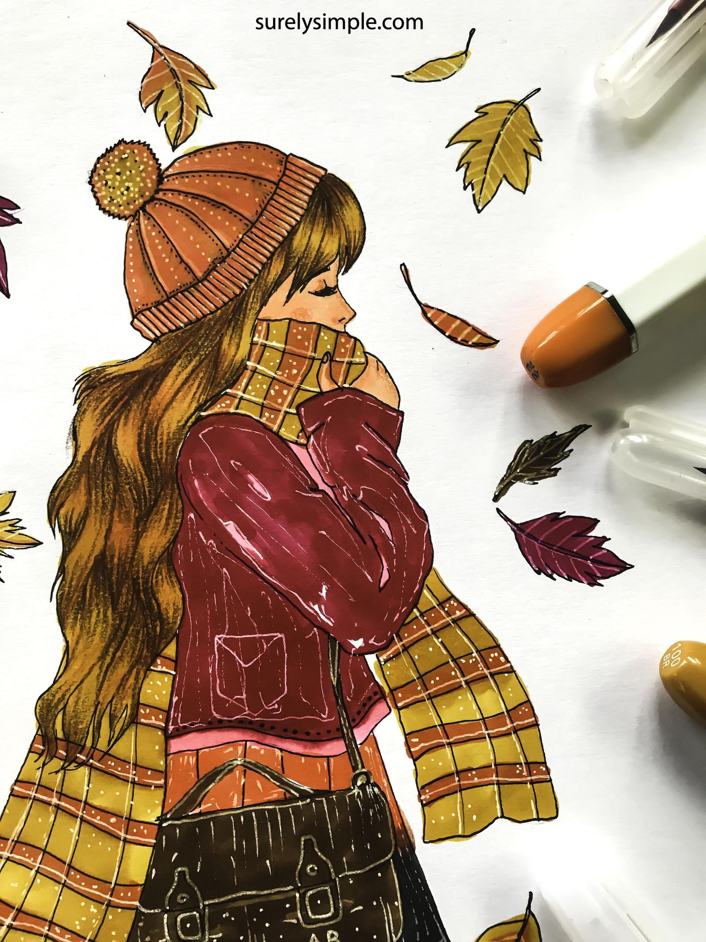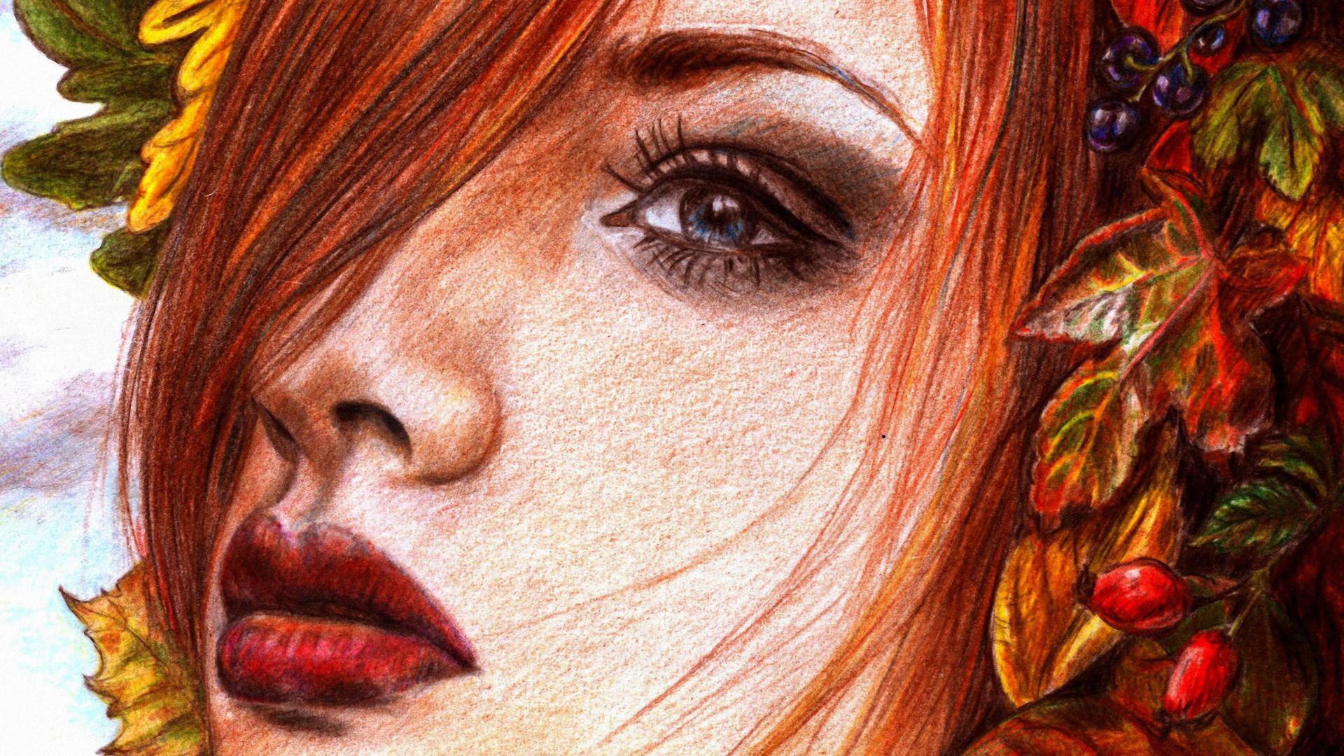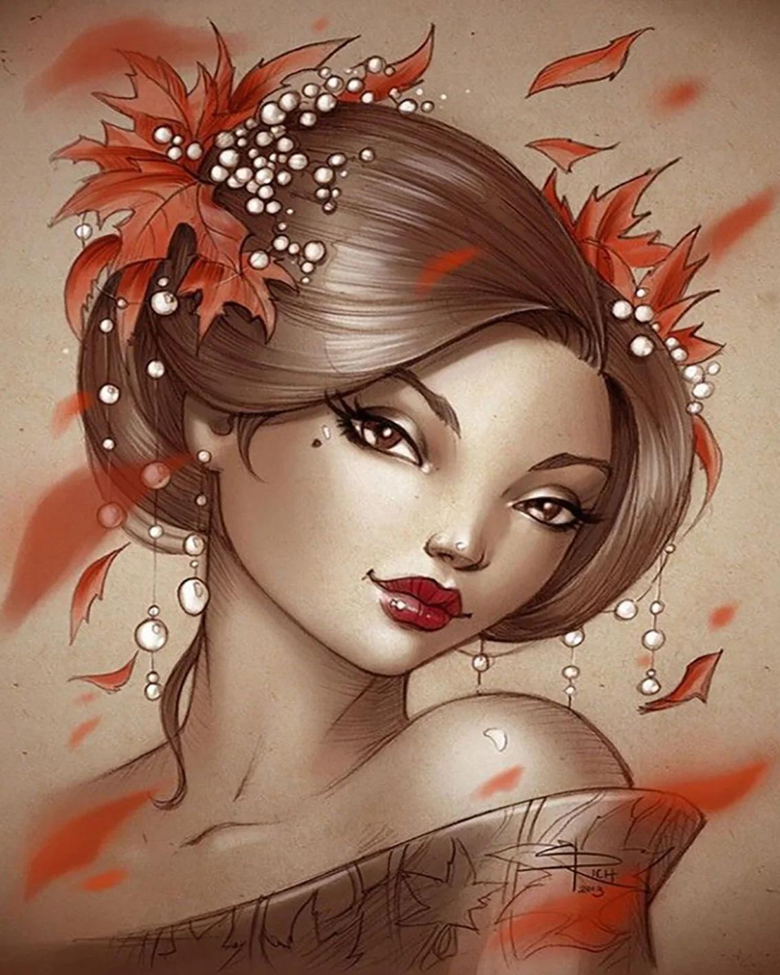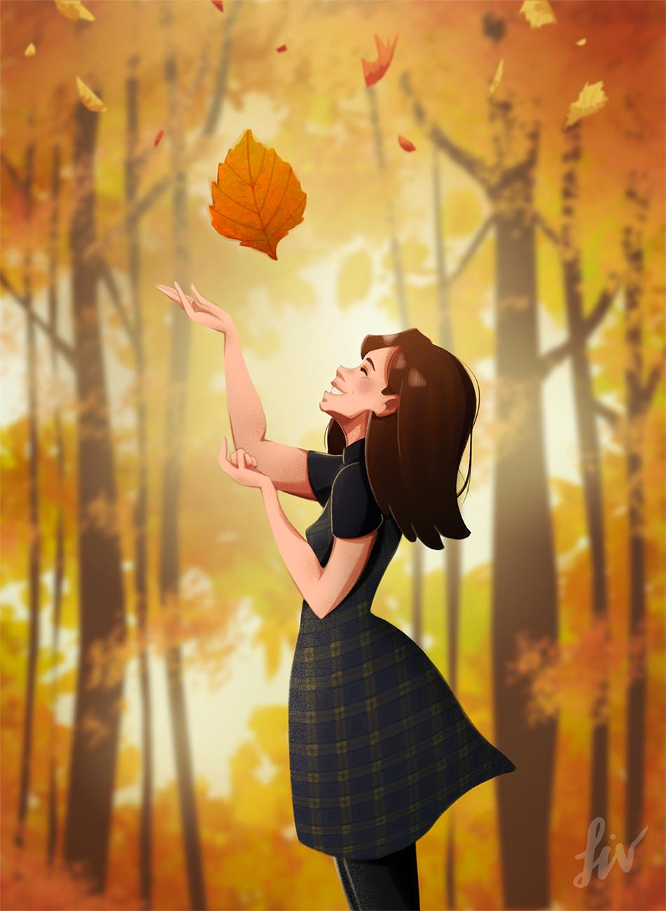 Девушка осень нарисованные