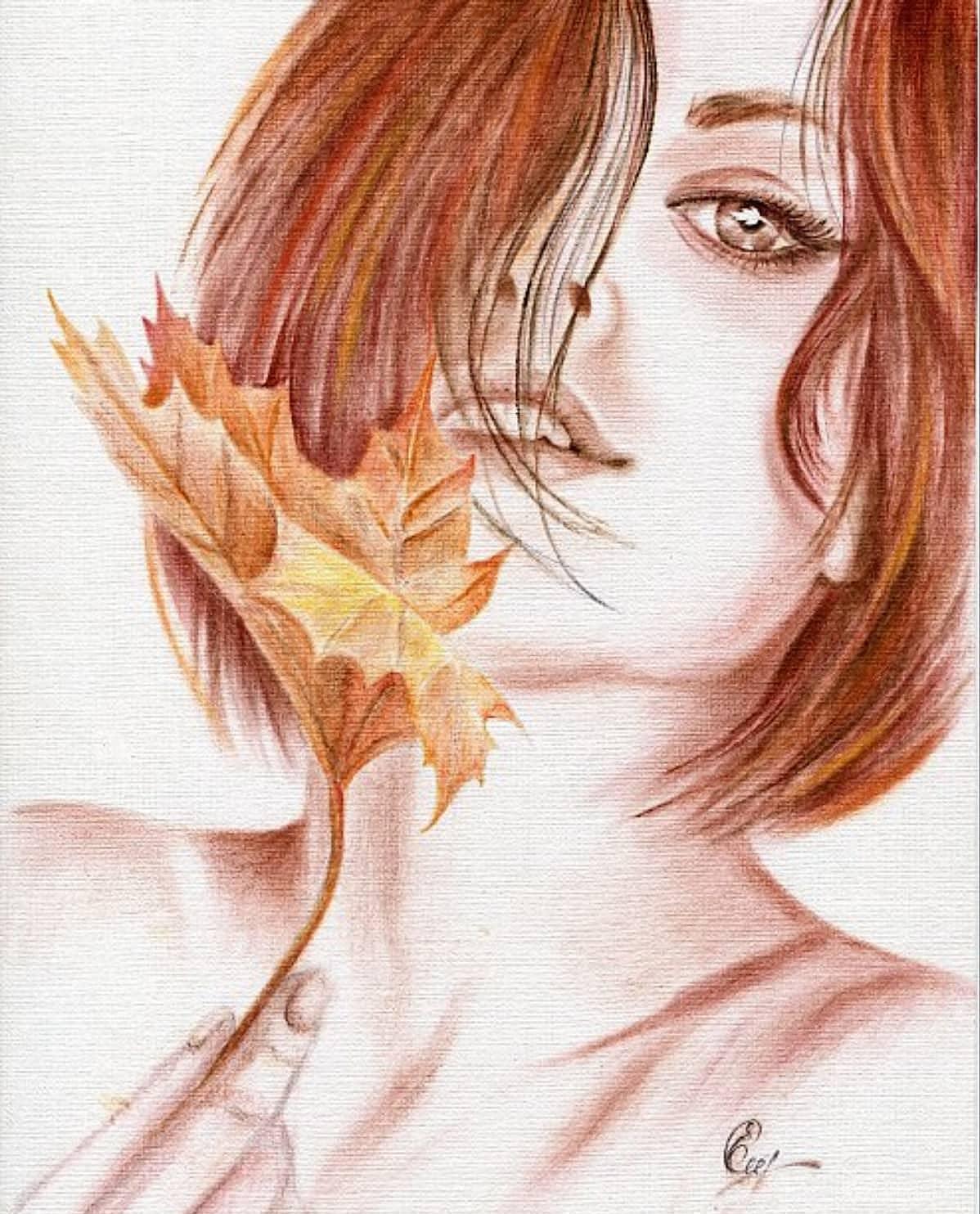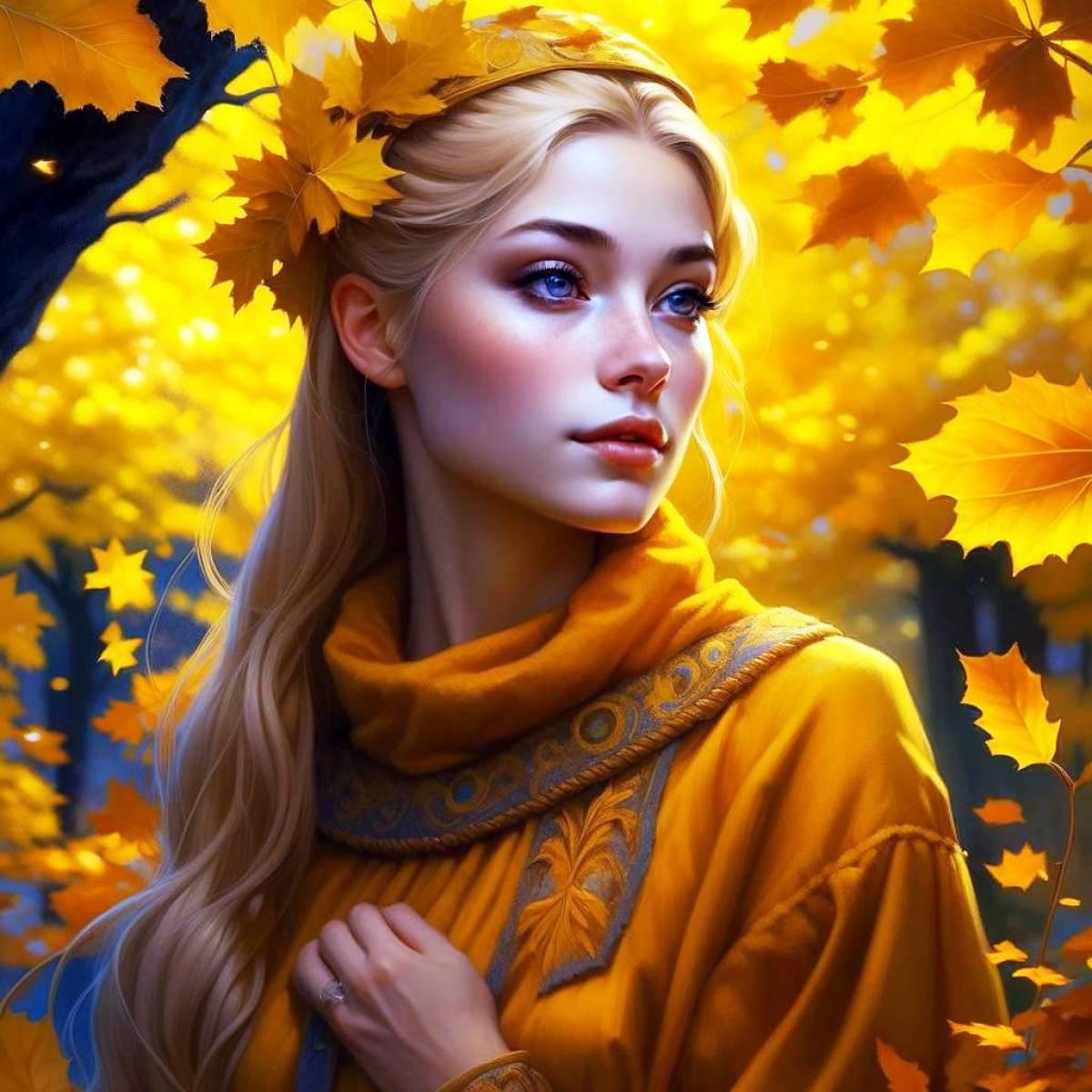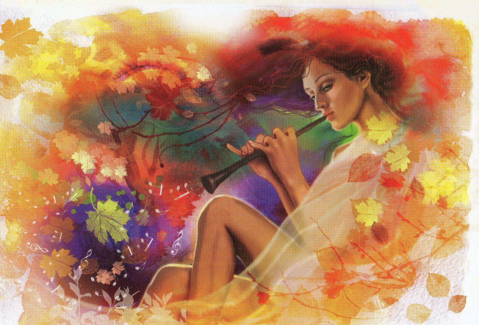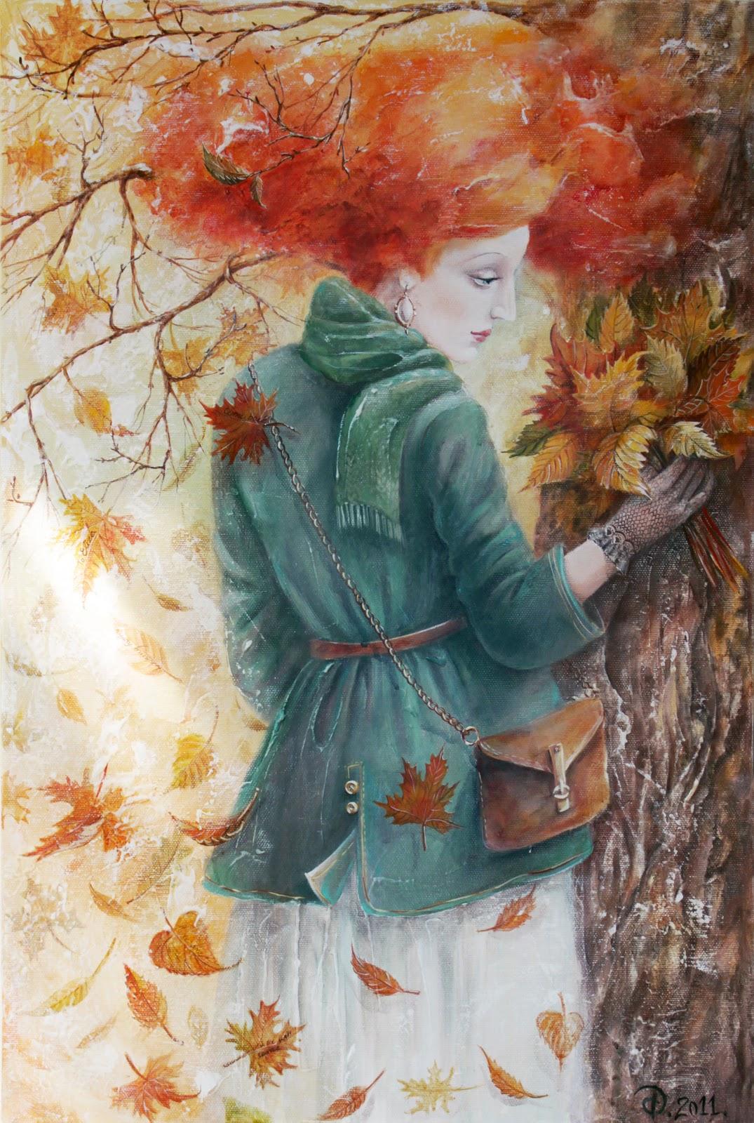 Девушка осень нарисованные