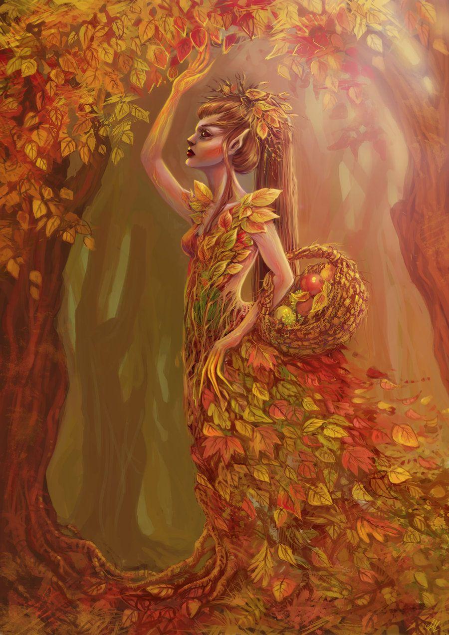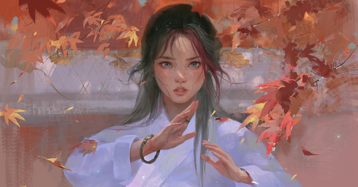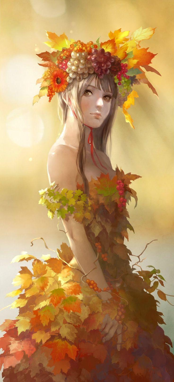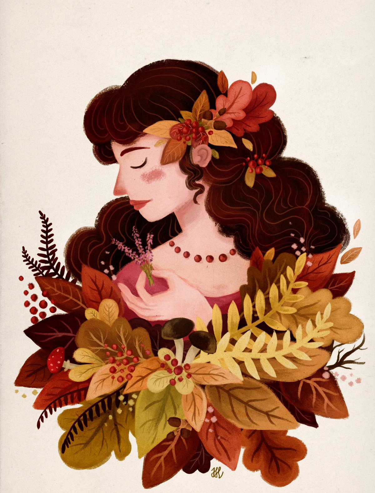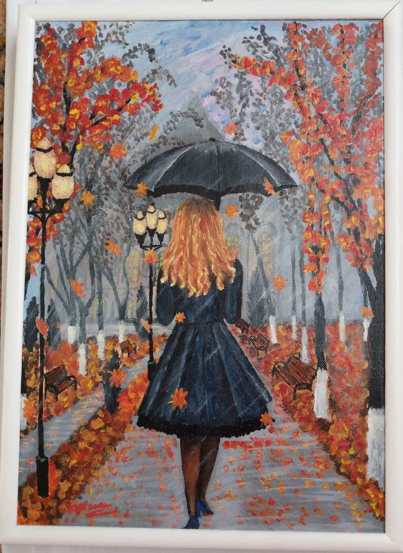 Девушка осень нарисованные