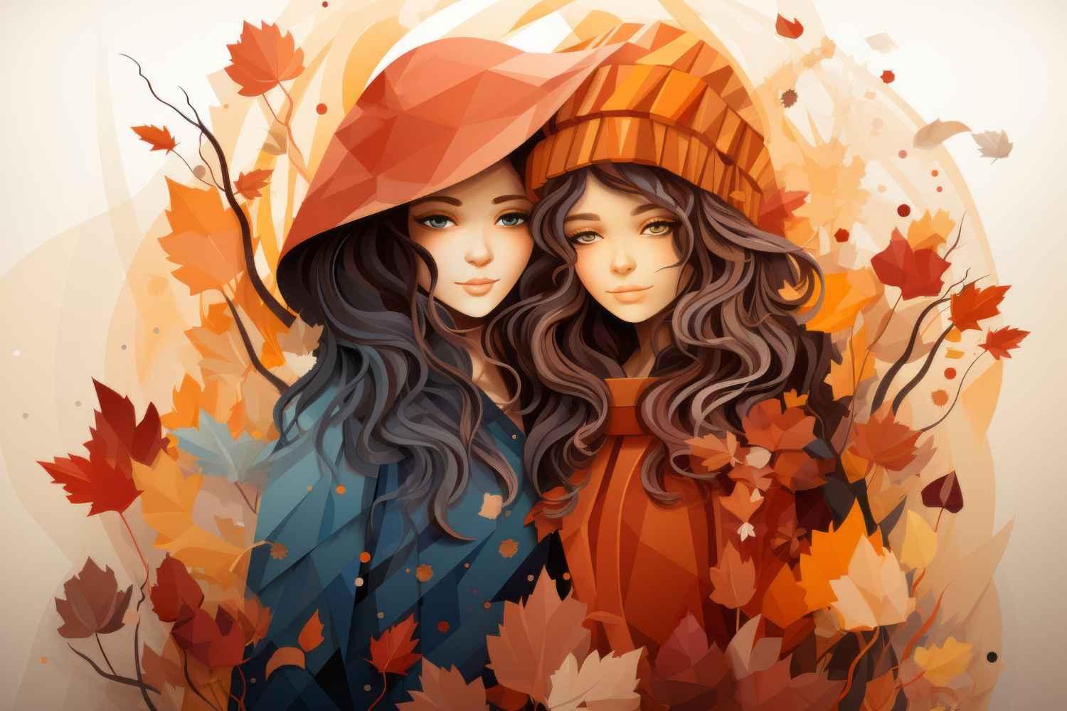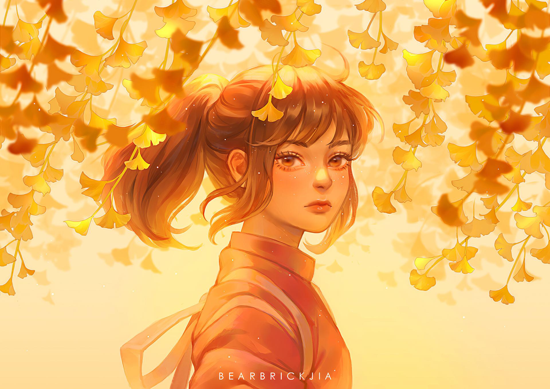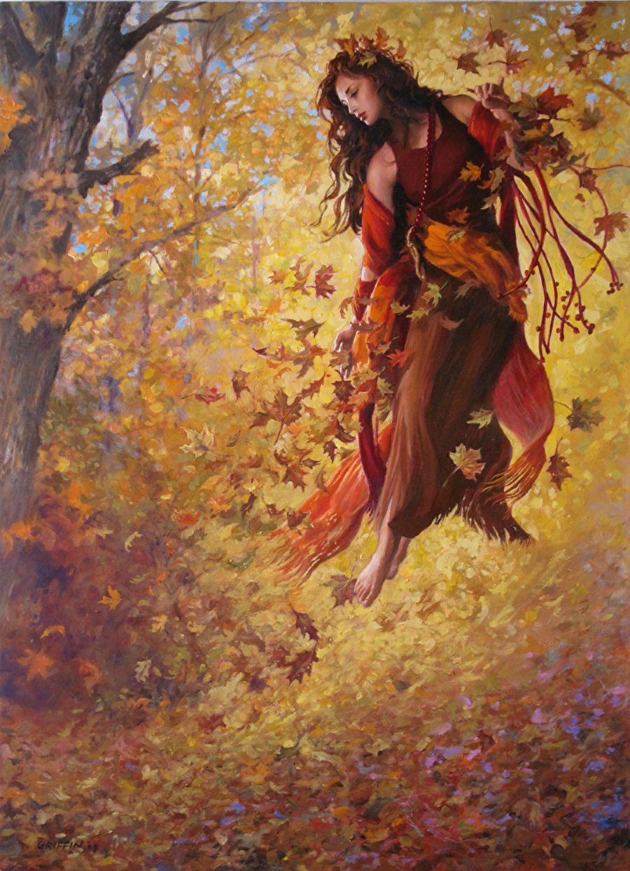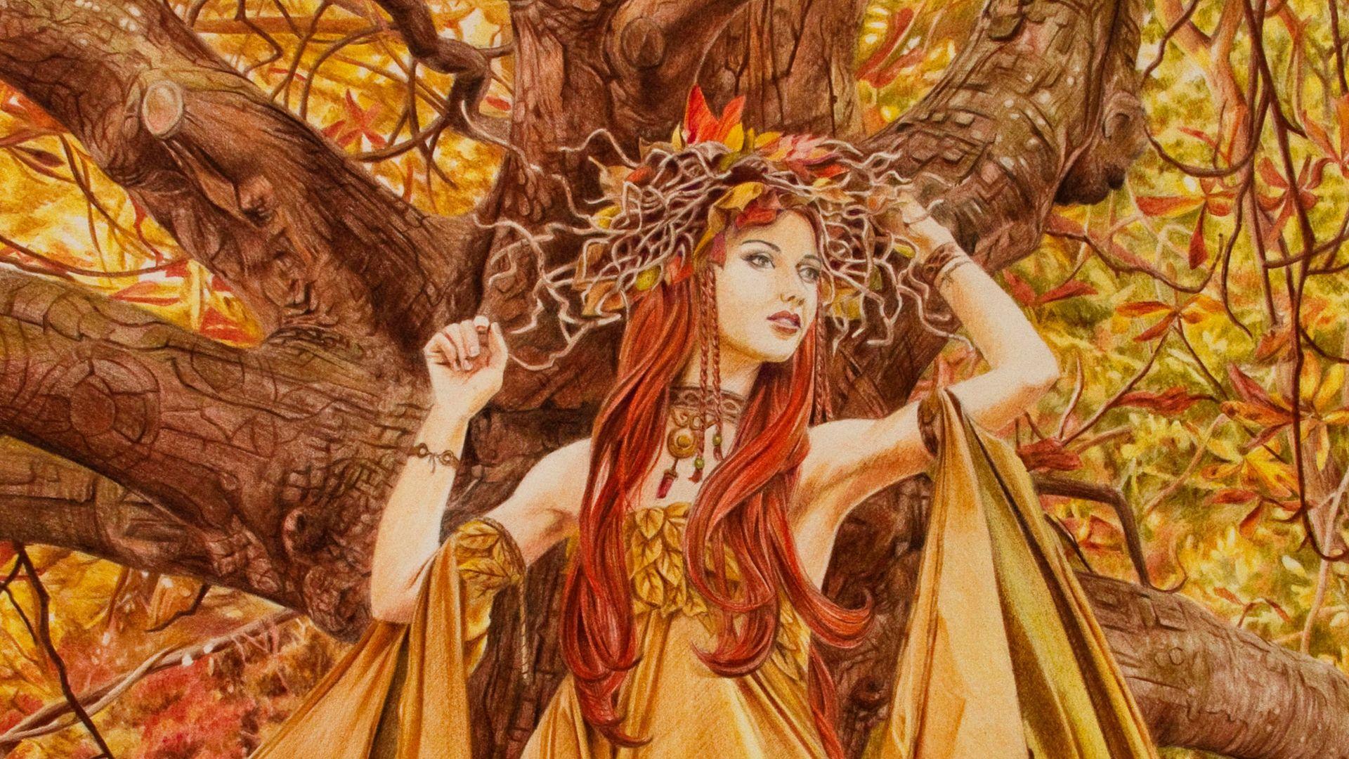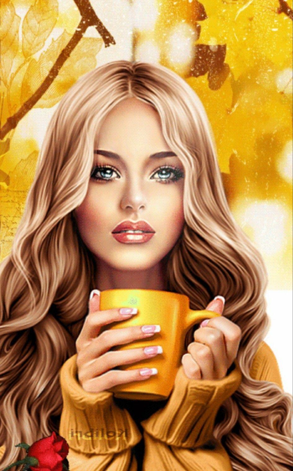 Девушка осень нарисованные