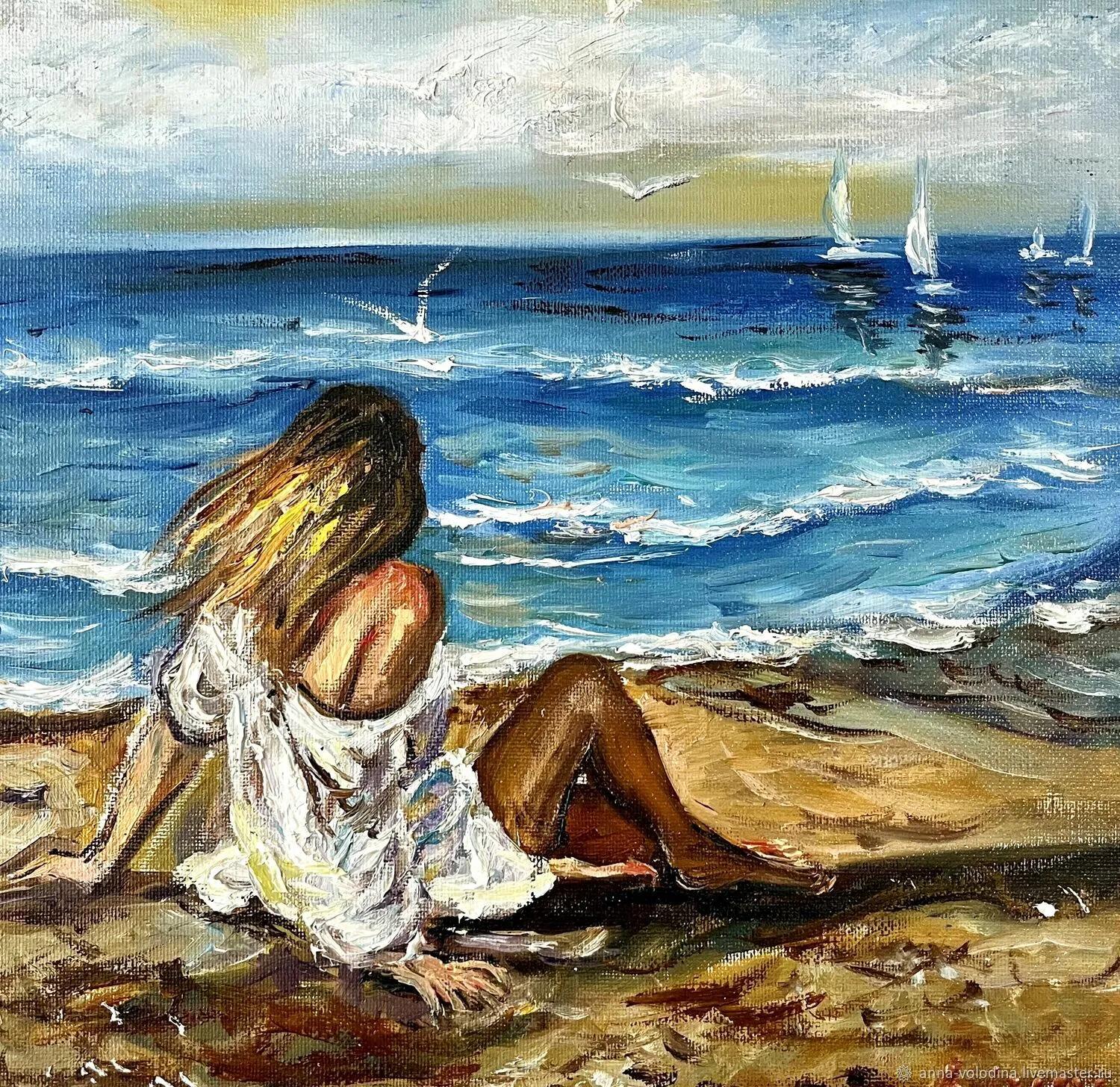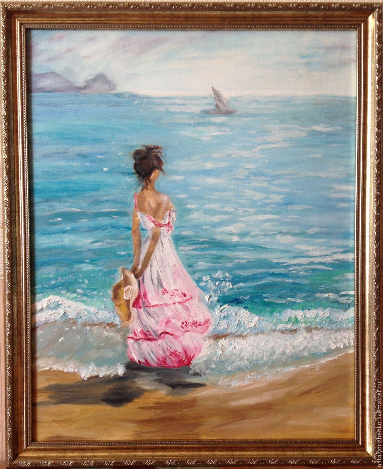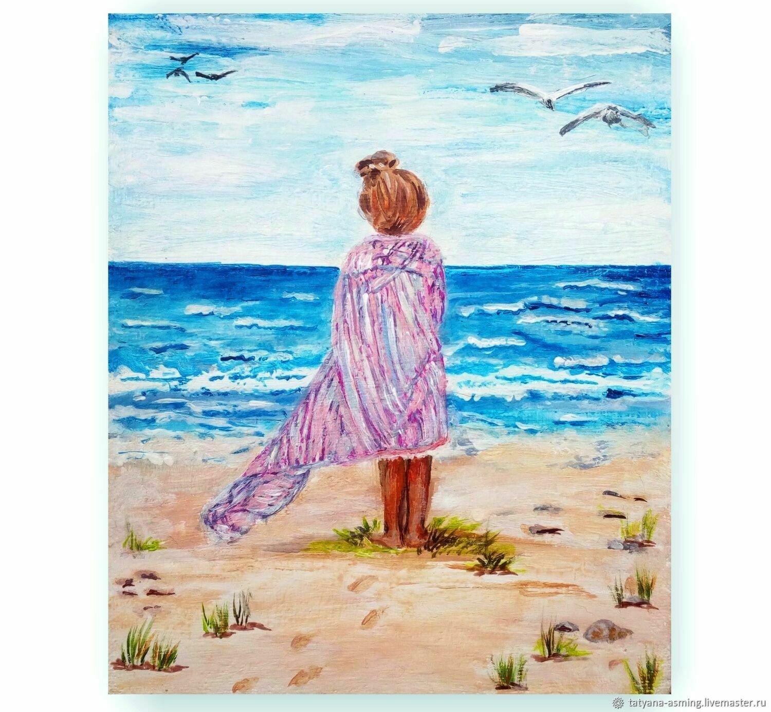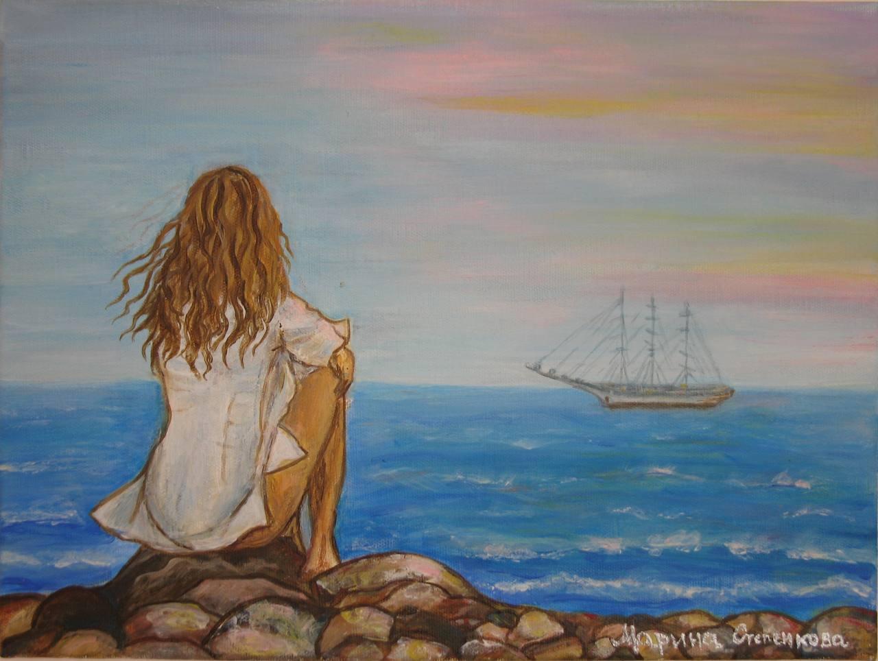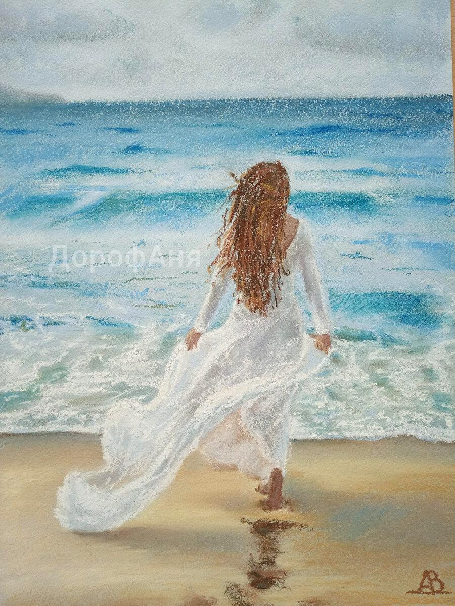 Девушка и море нарисованные