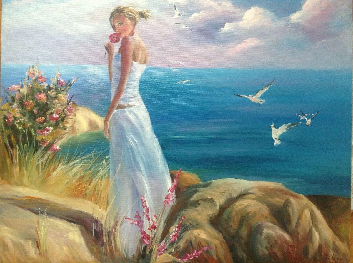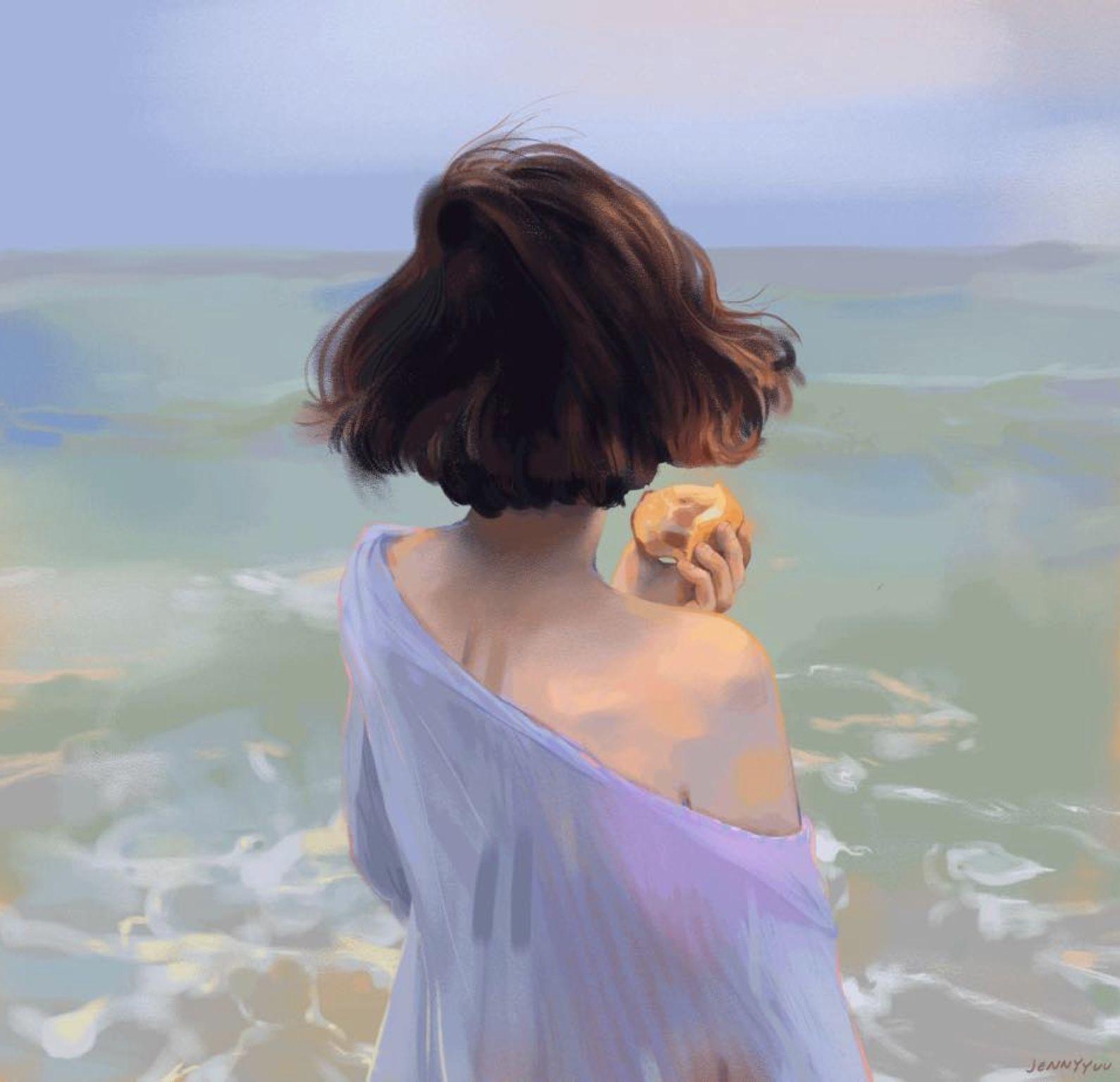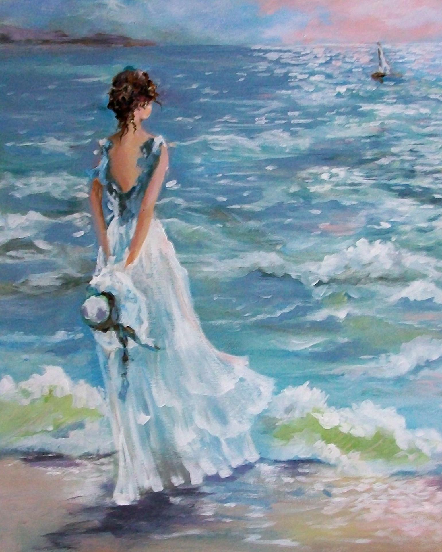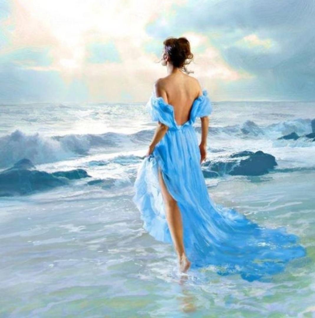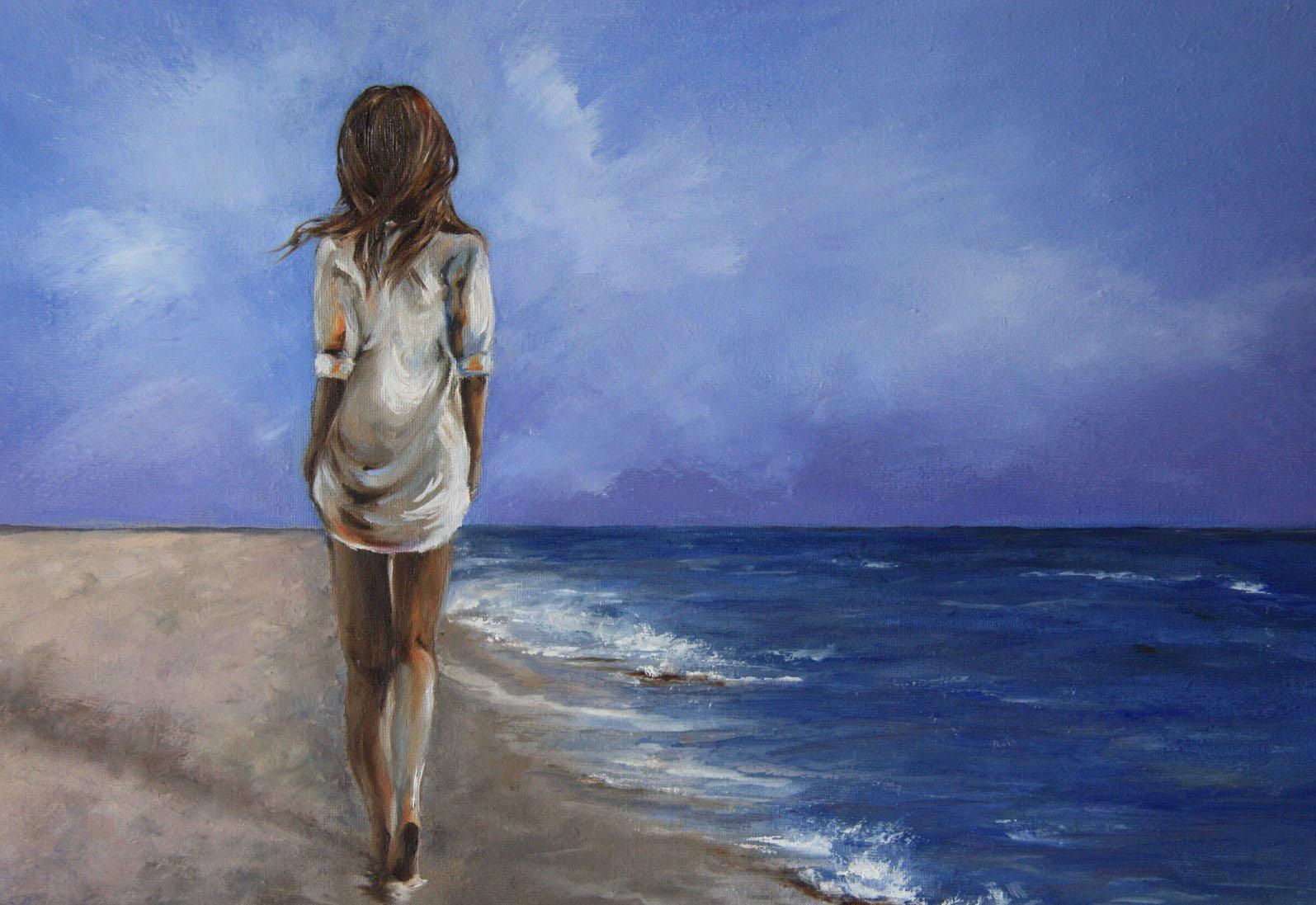 Девушка и море нарисованные