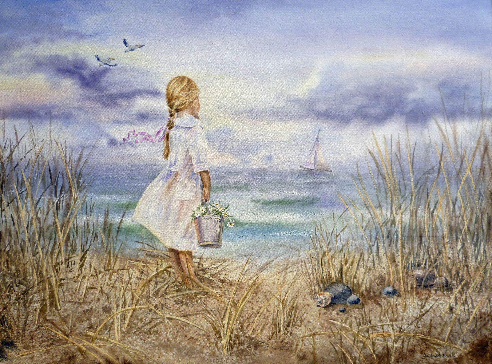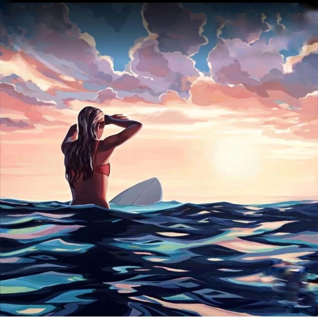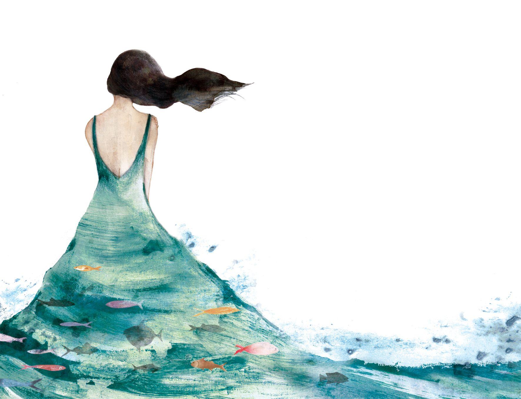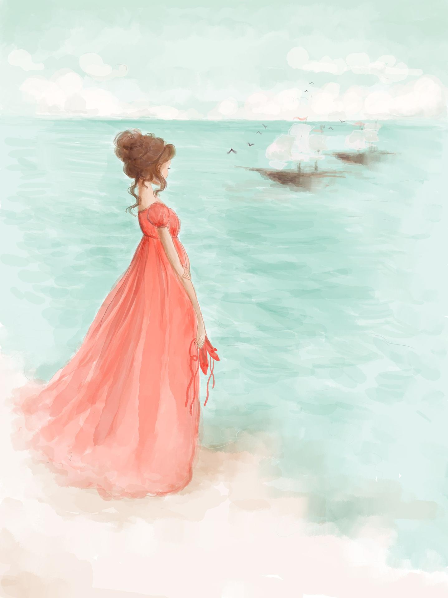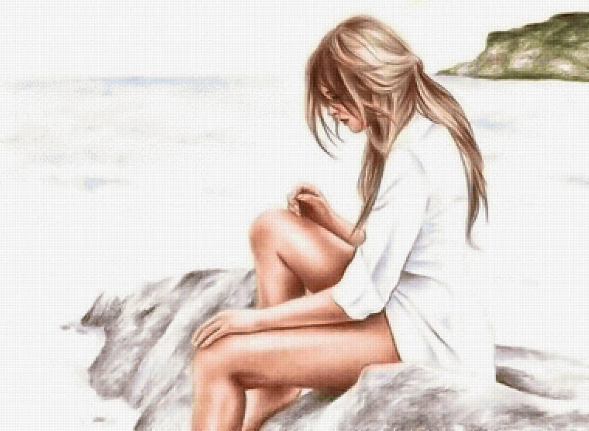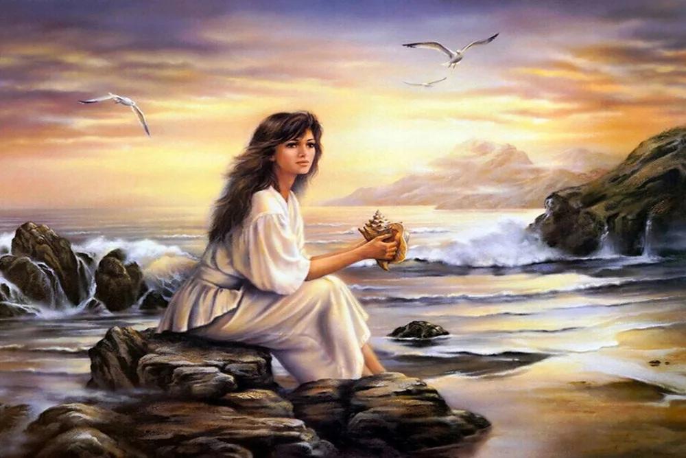 Девушка и море нарисованные