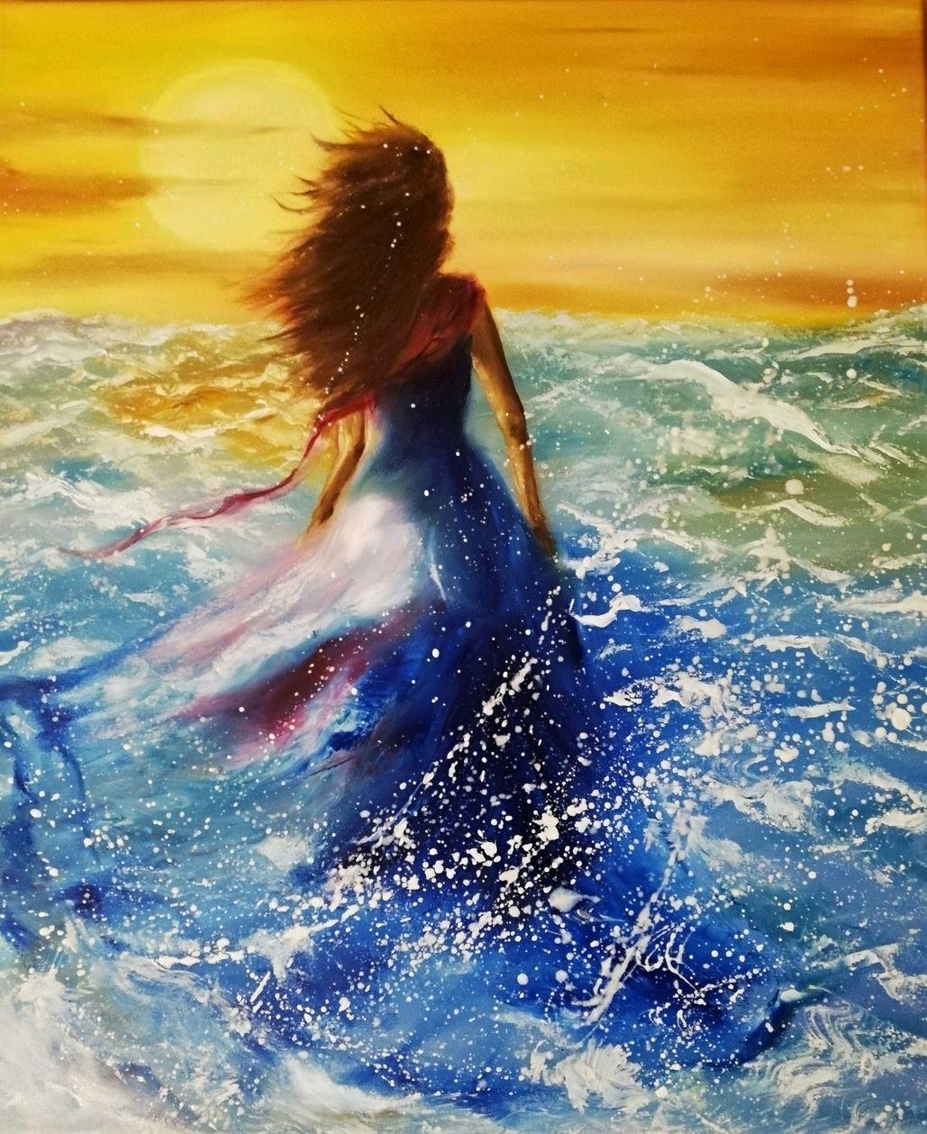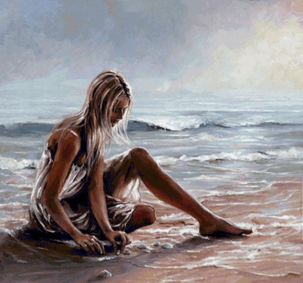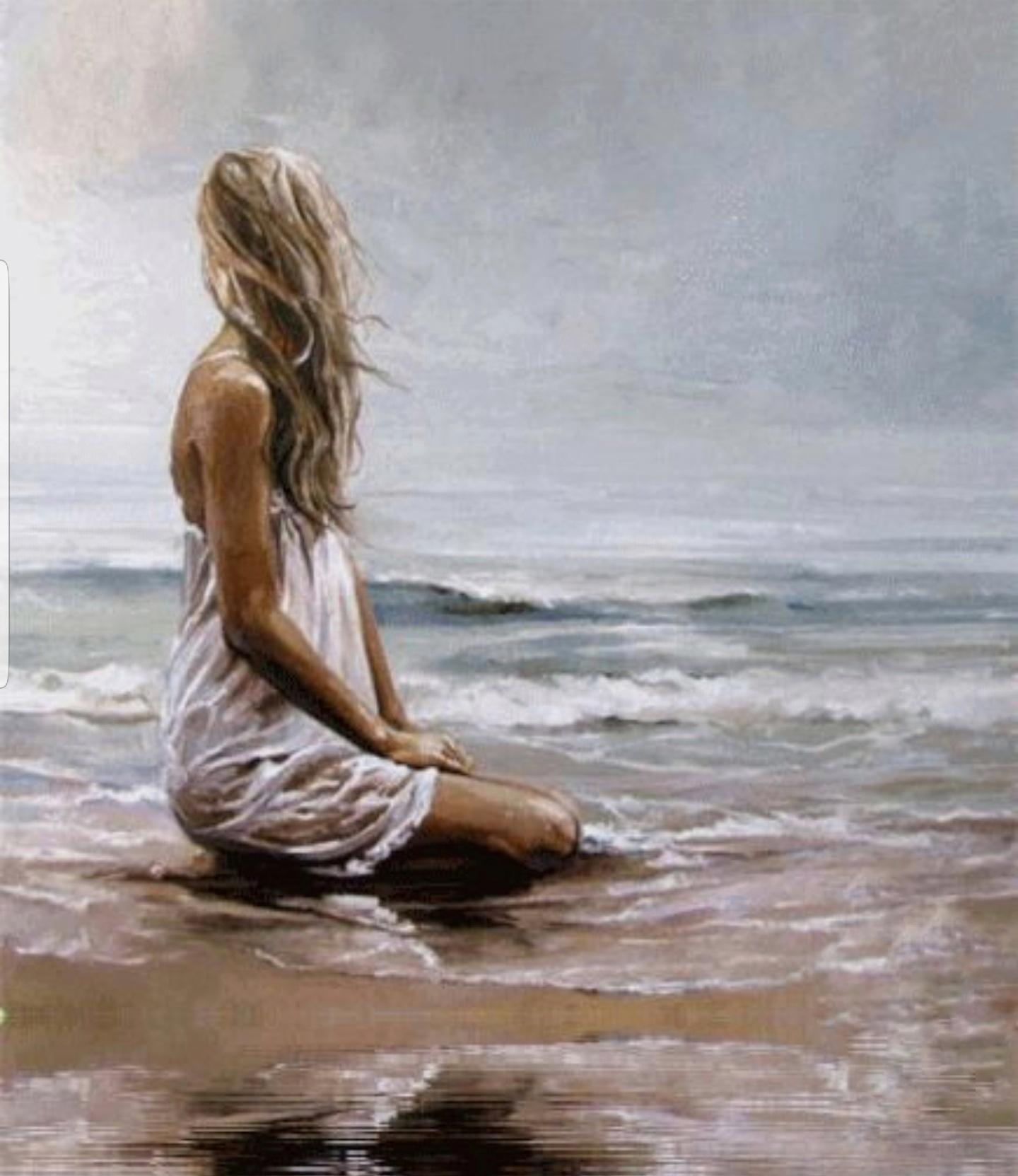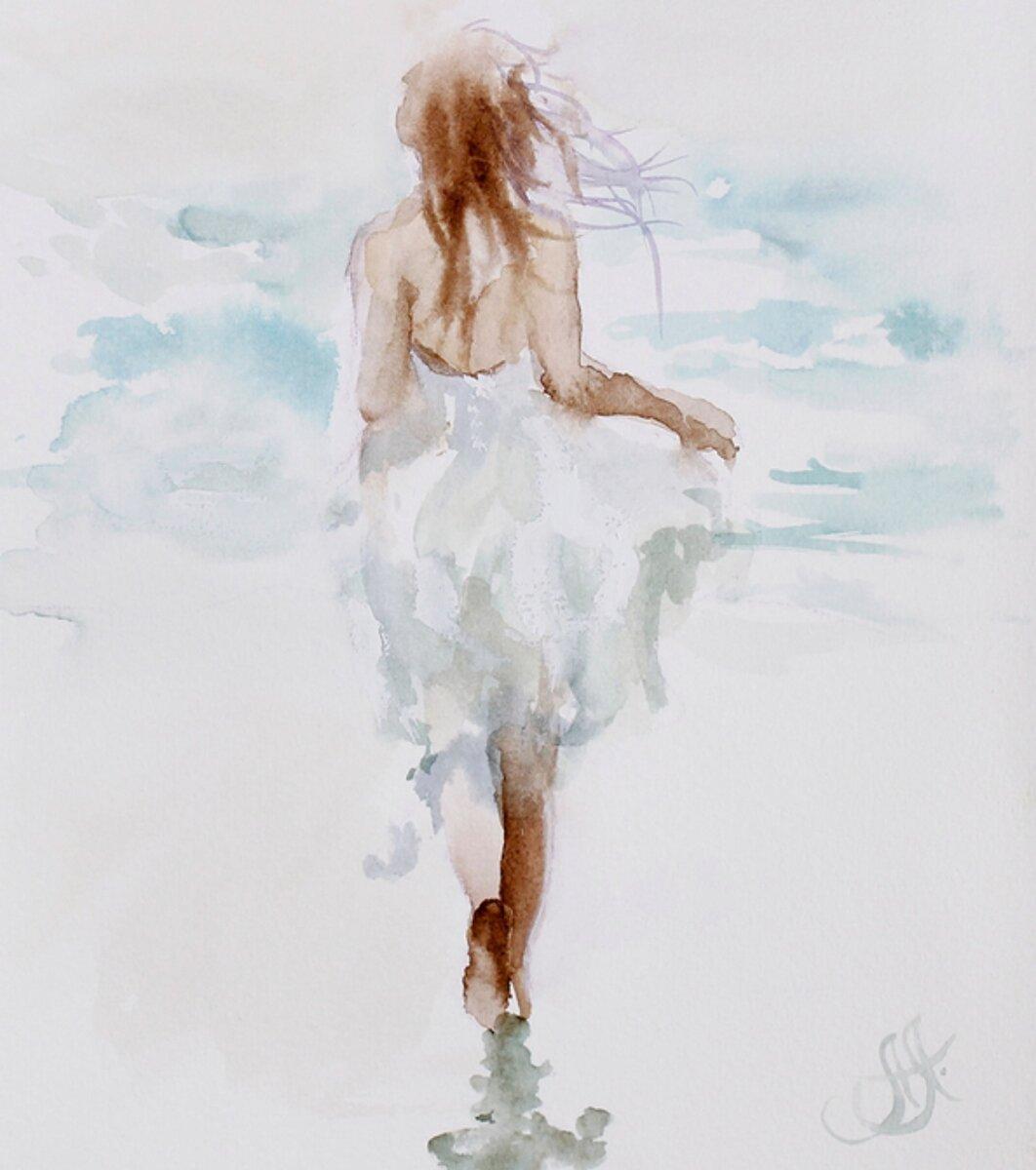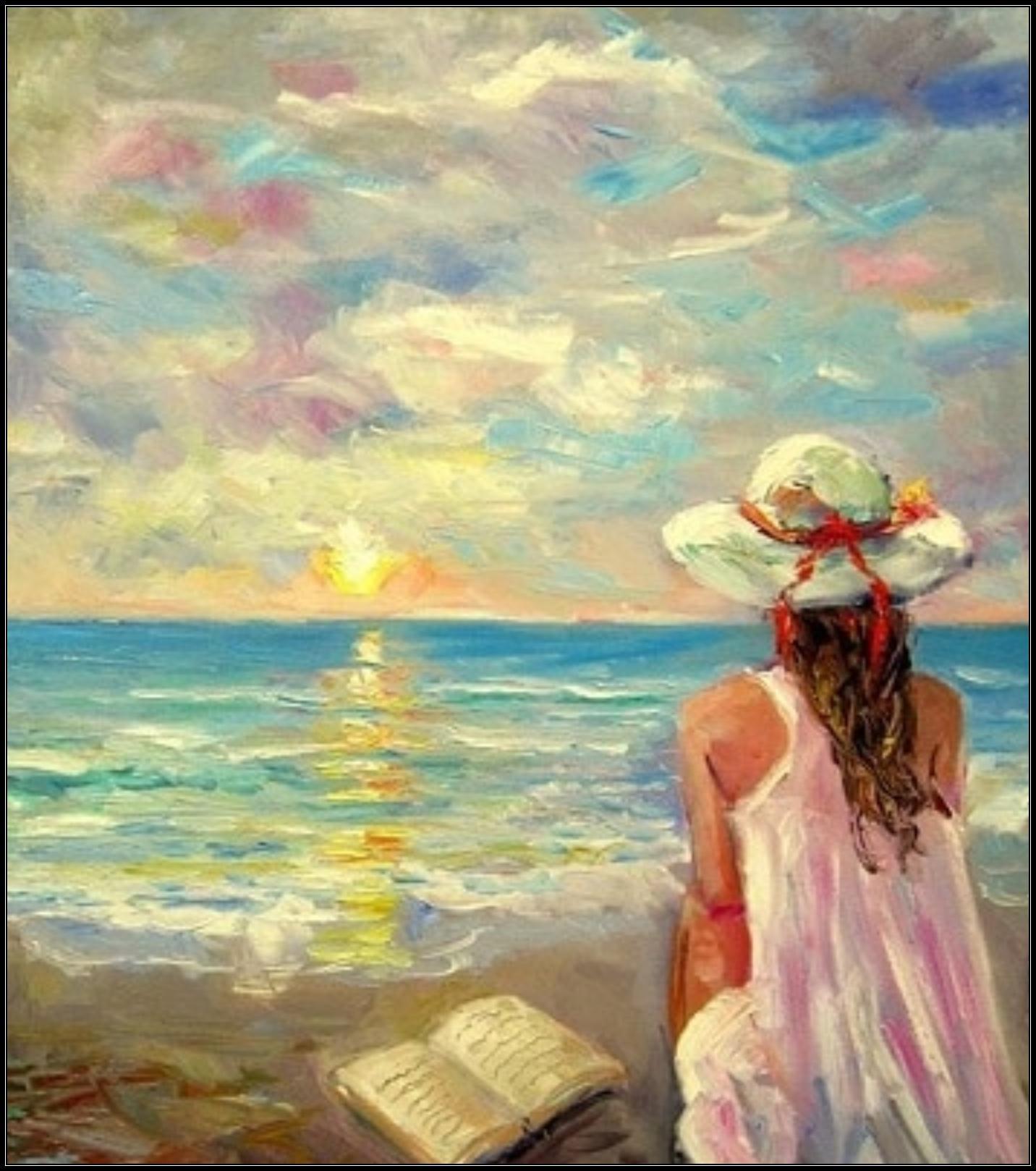 Девушка и море нарисованные