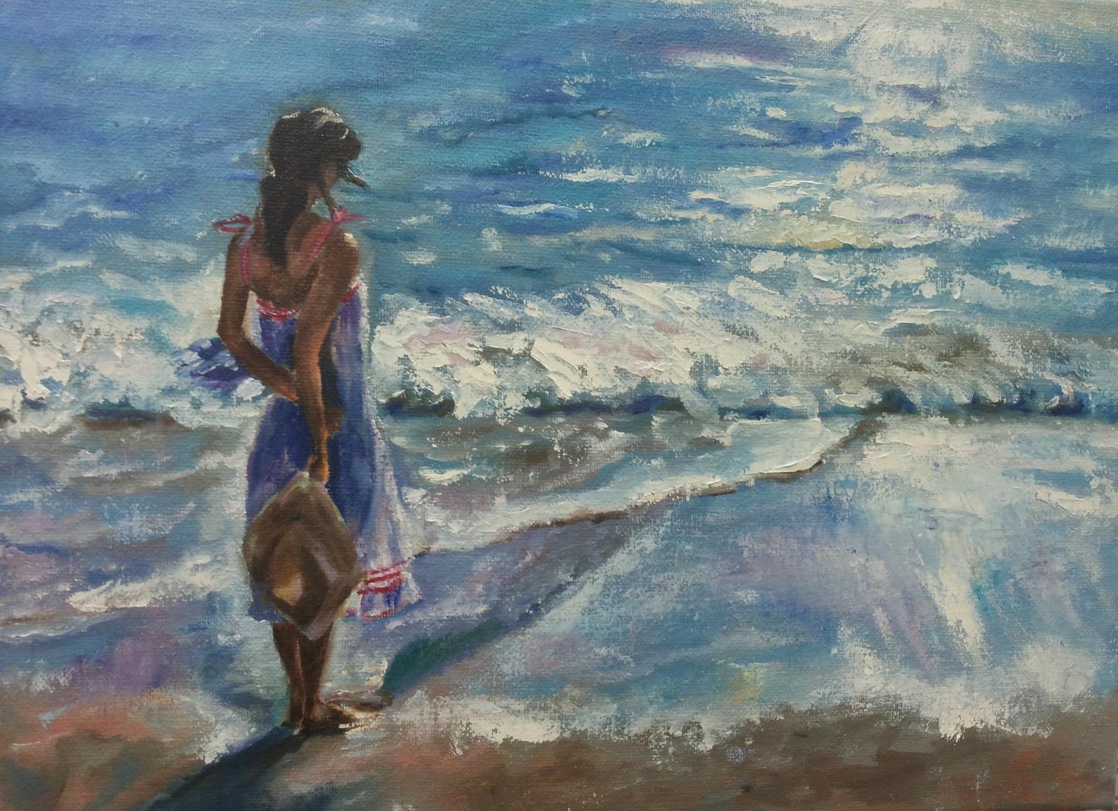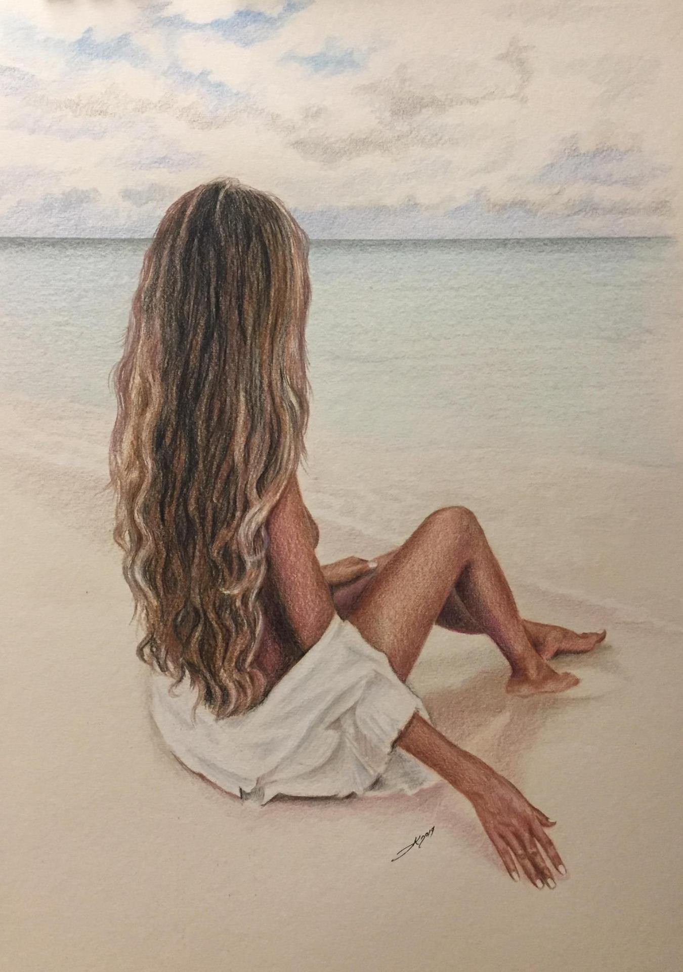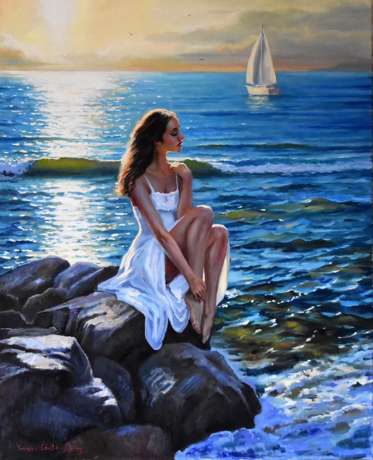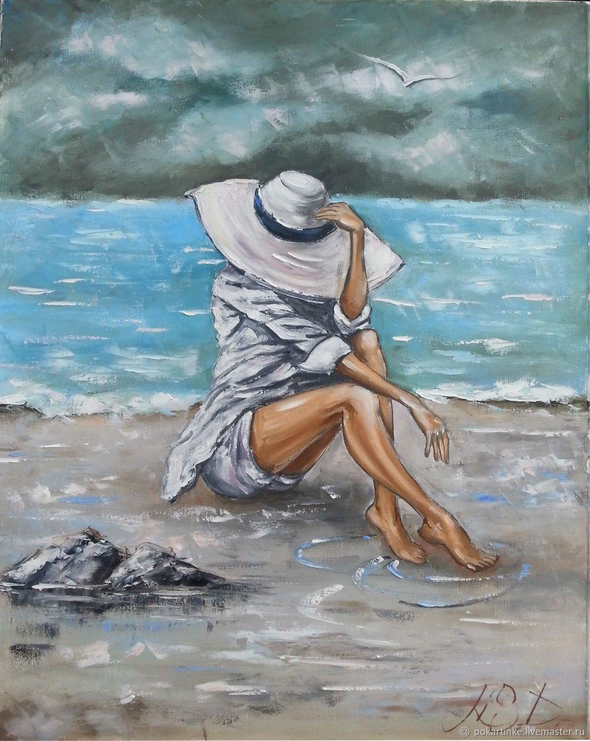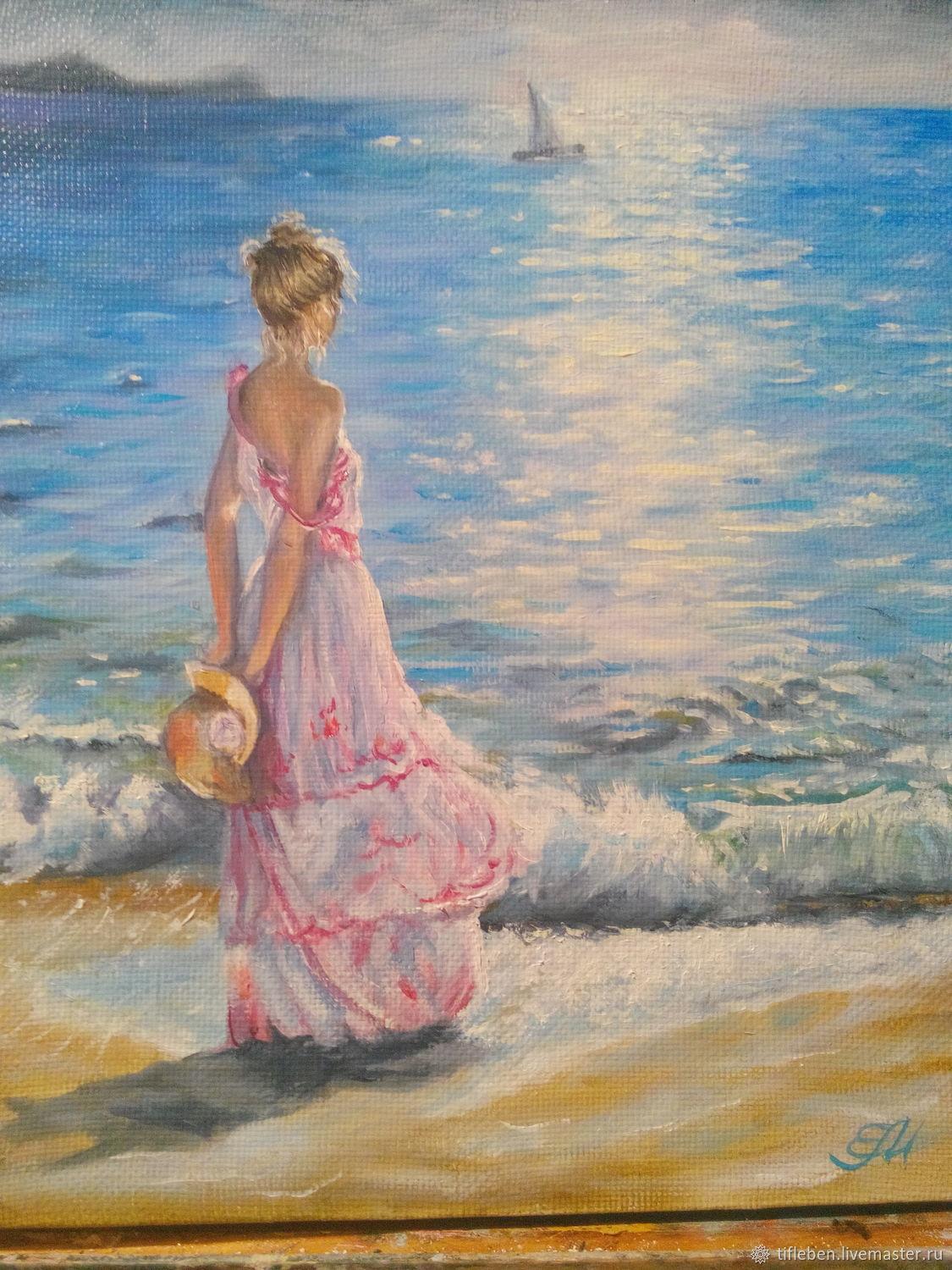 Девушка и море нарисованные