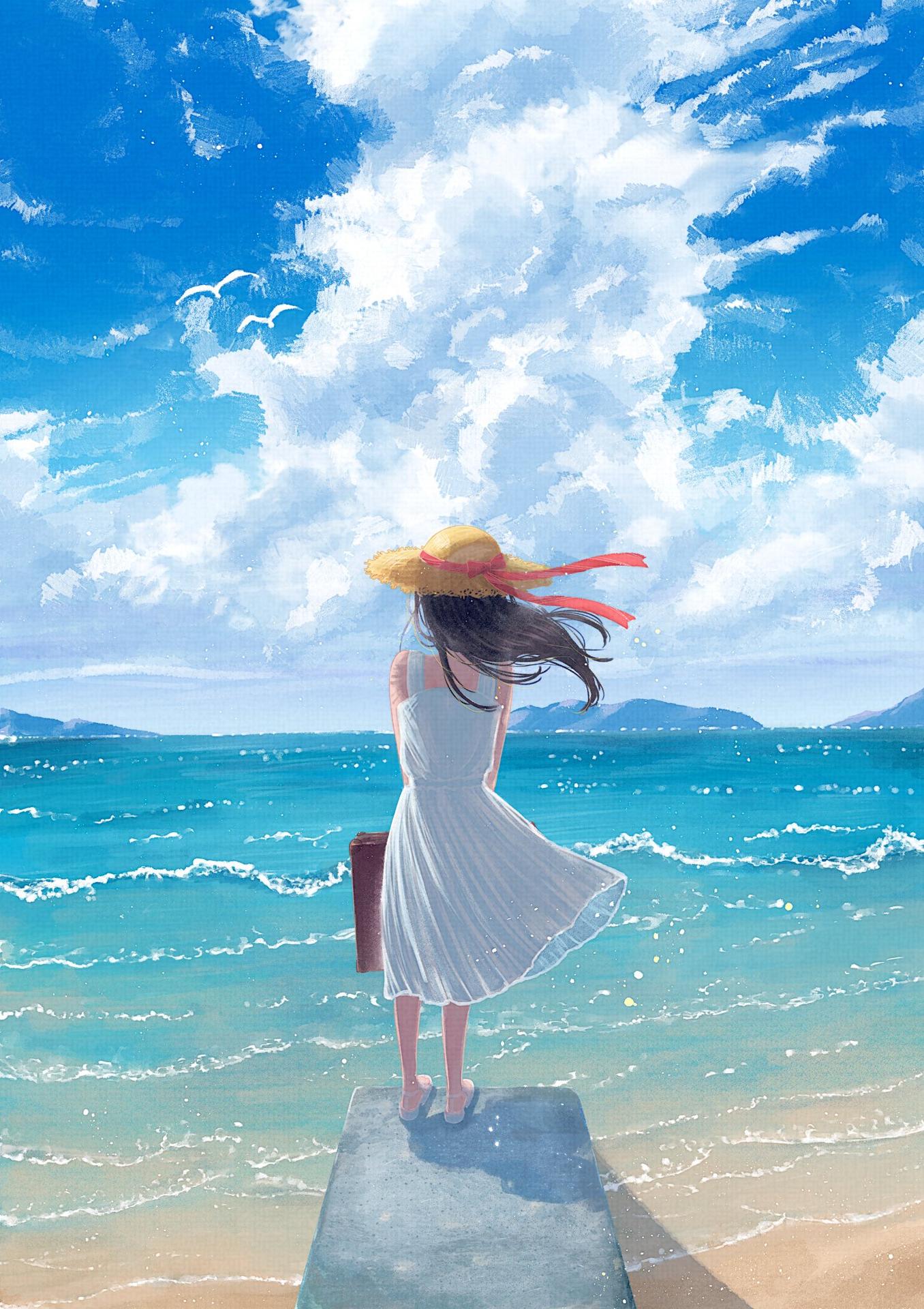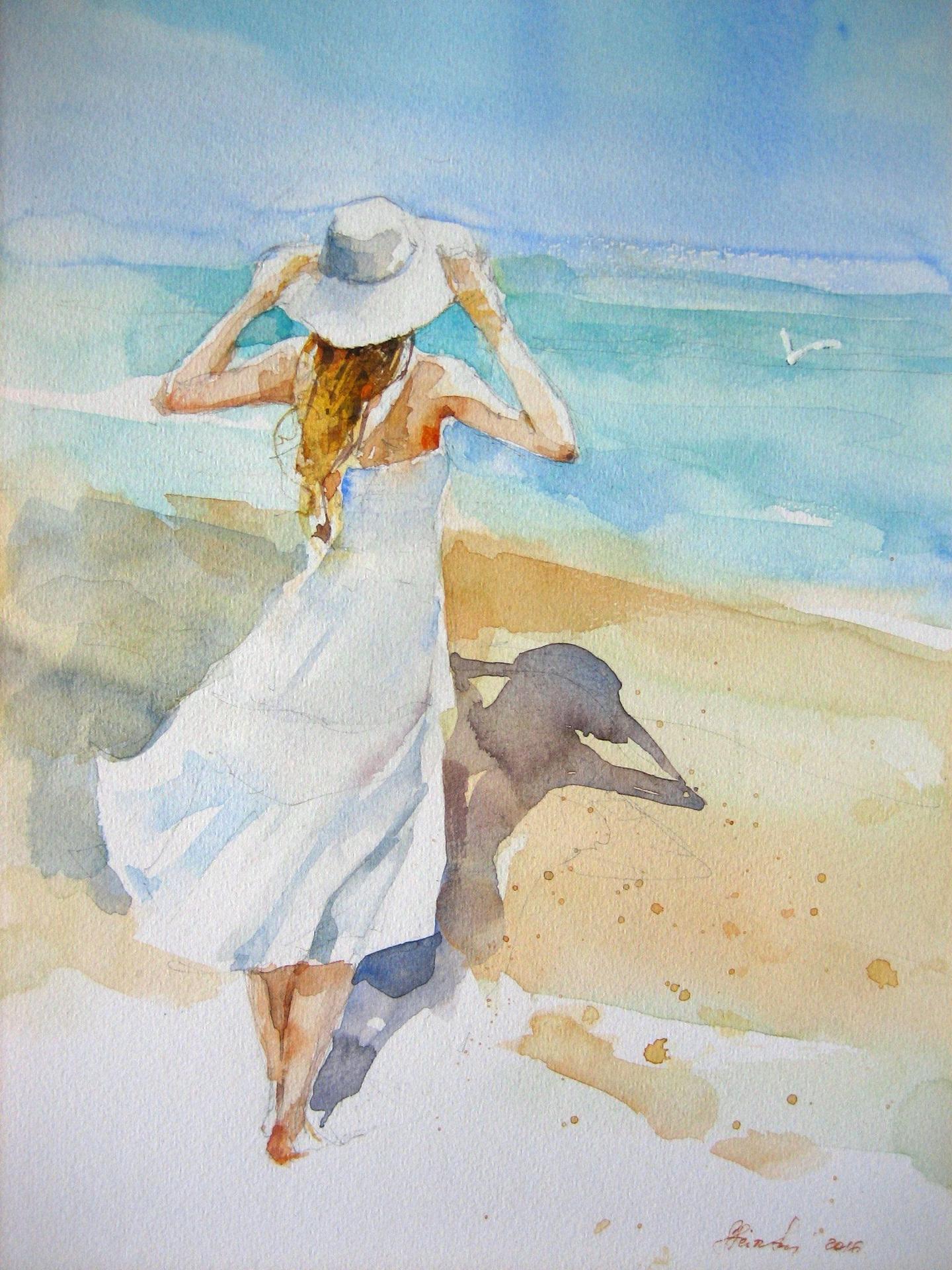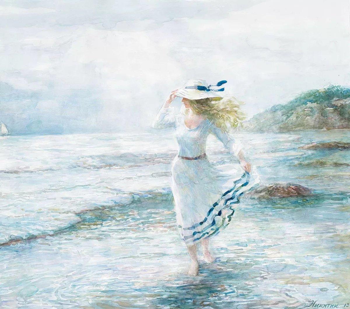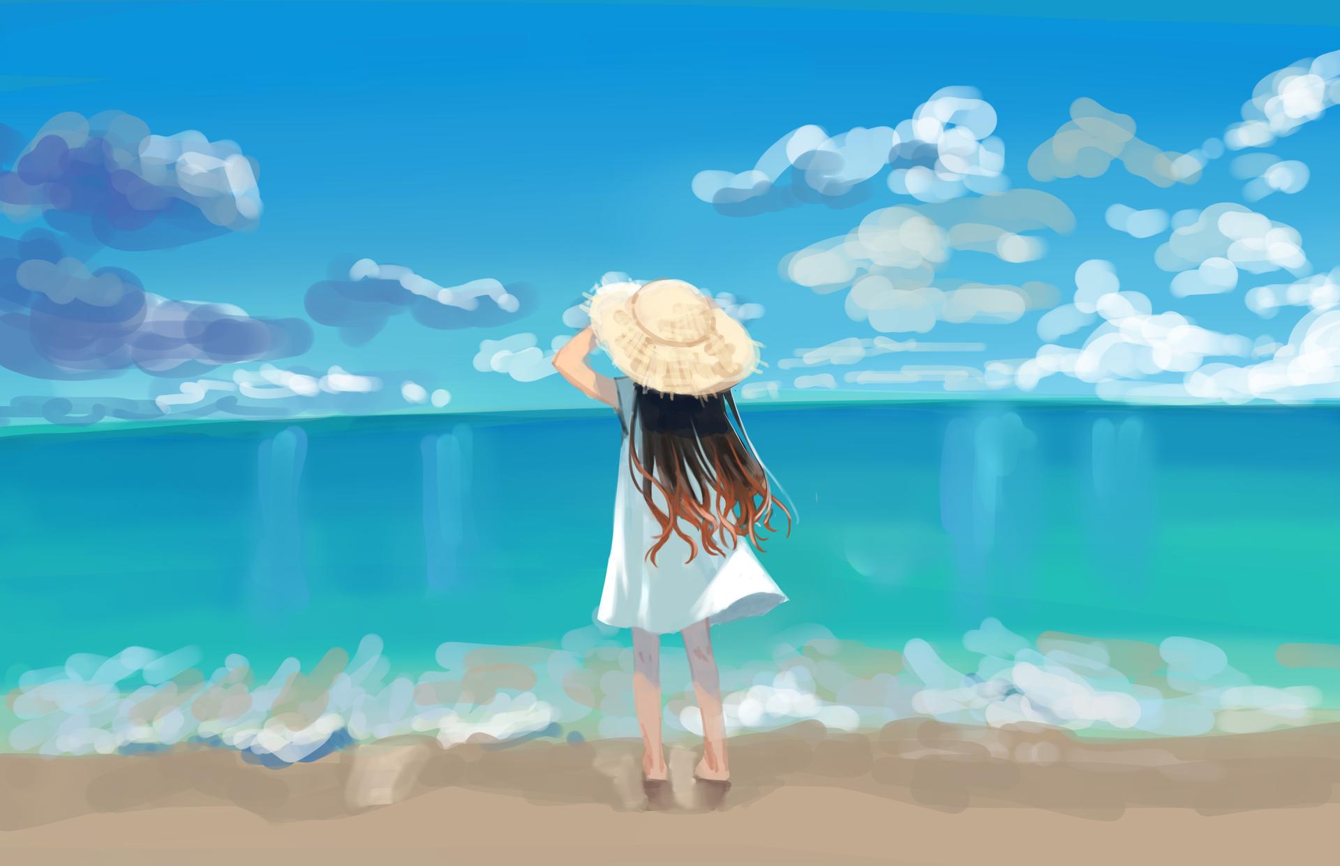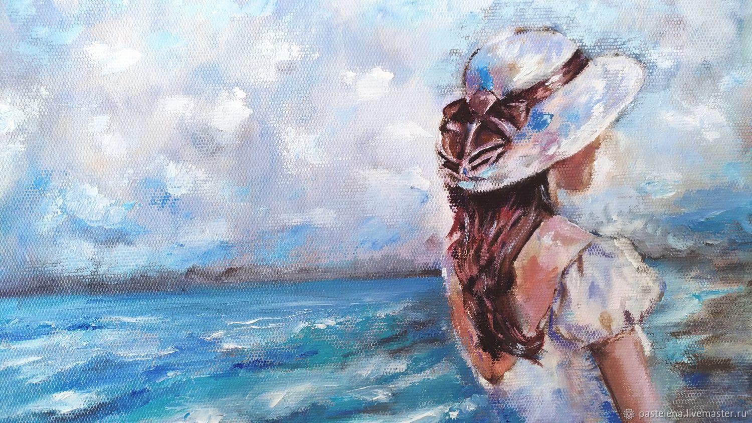 Девушка и море нарисованные