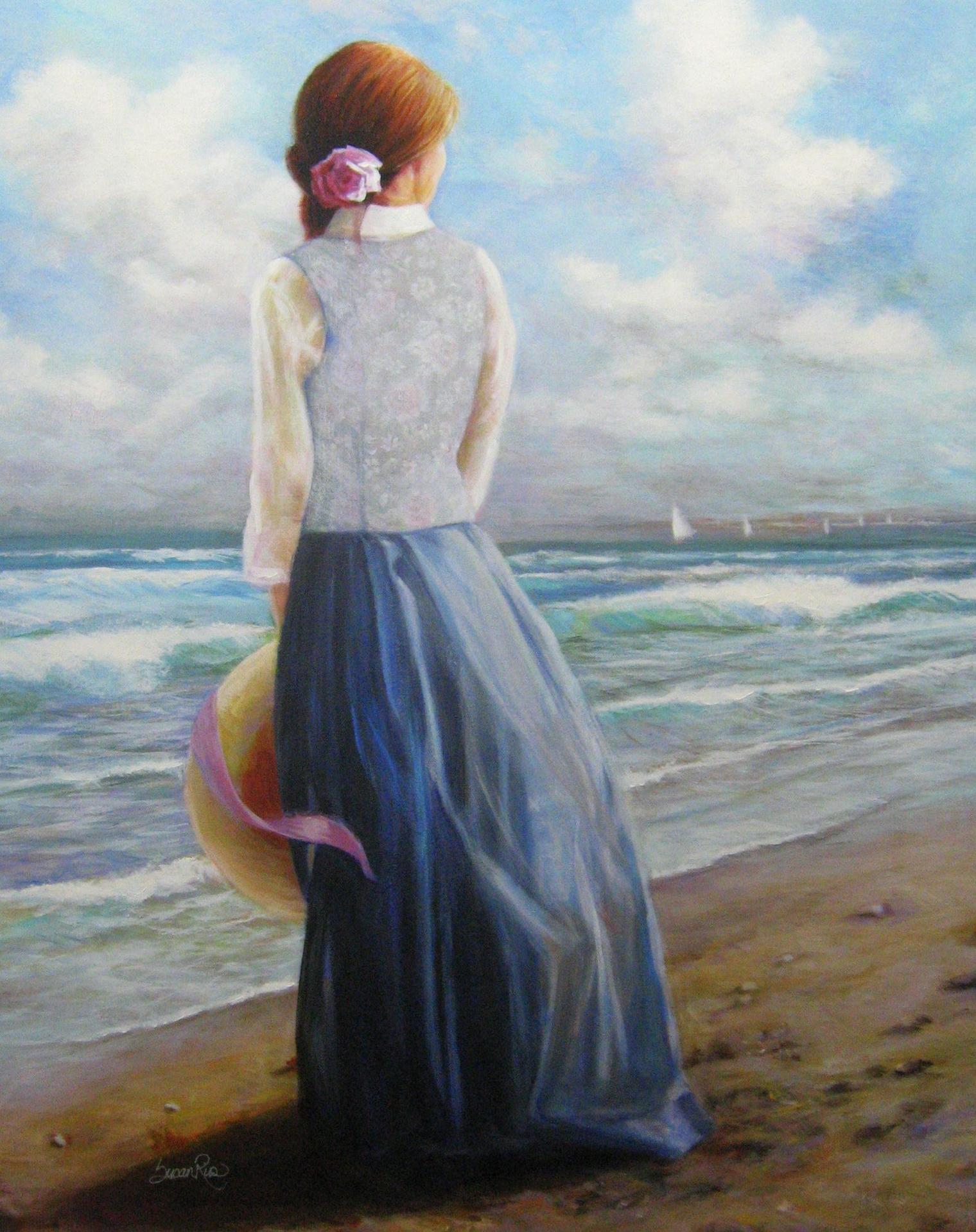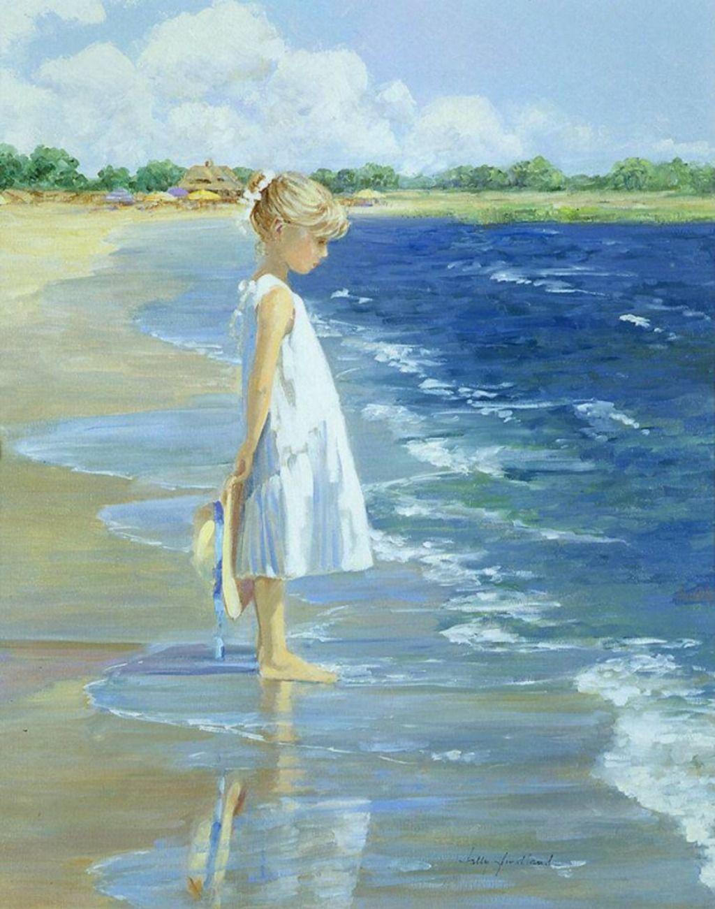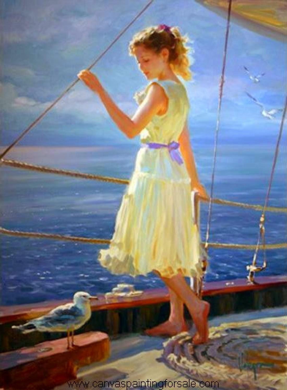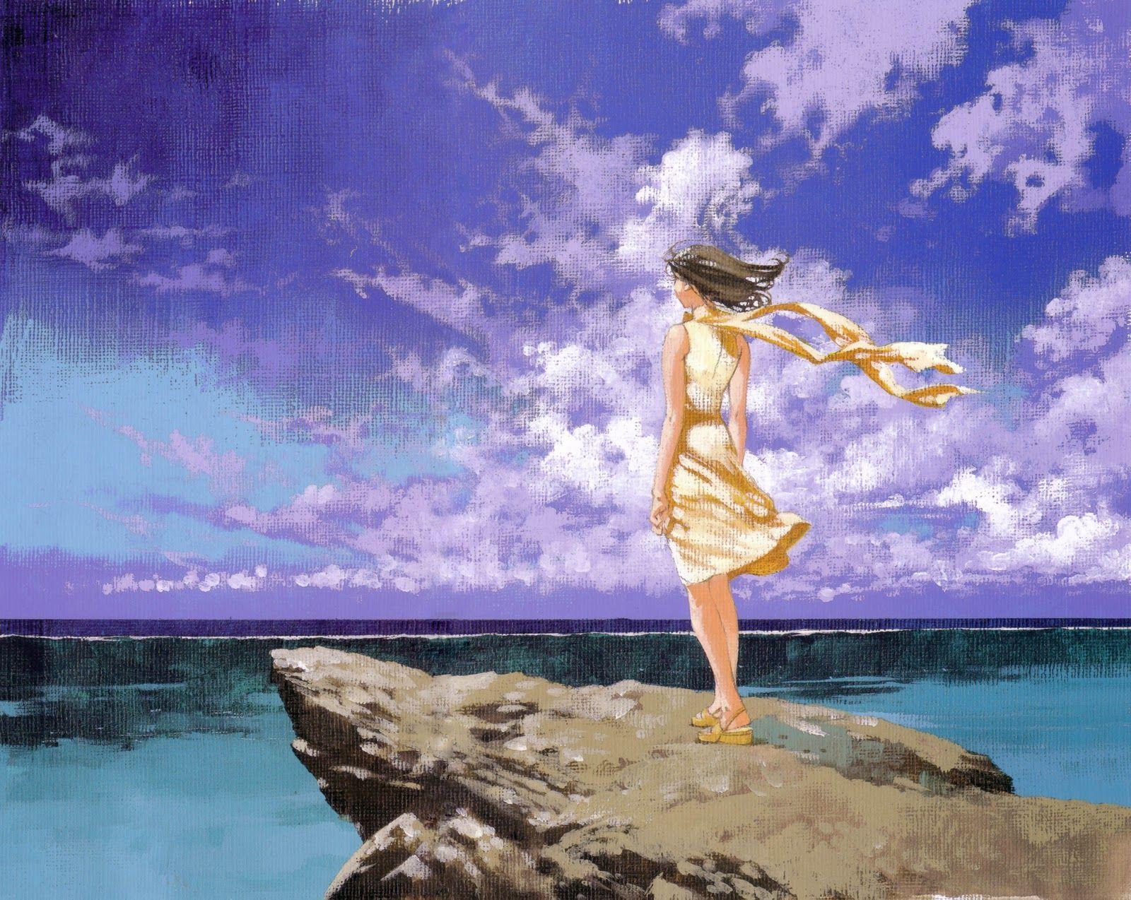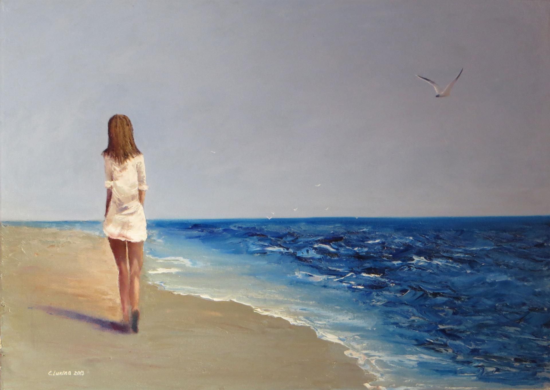 Девушка и море нарисованные