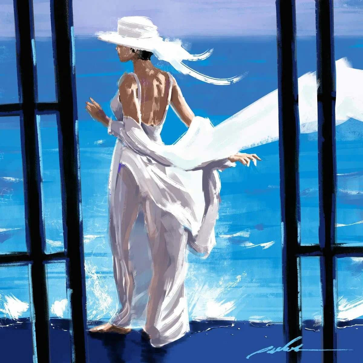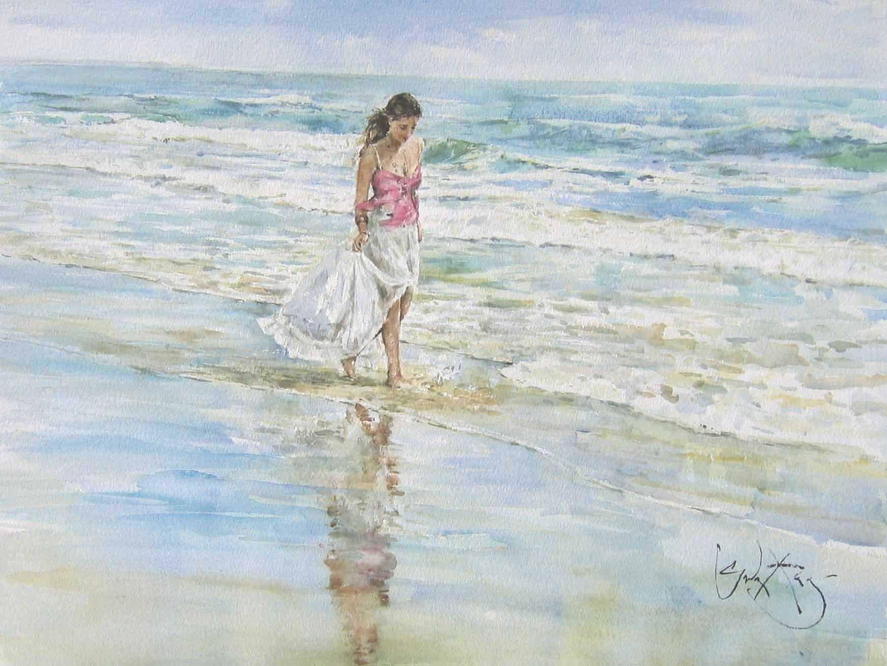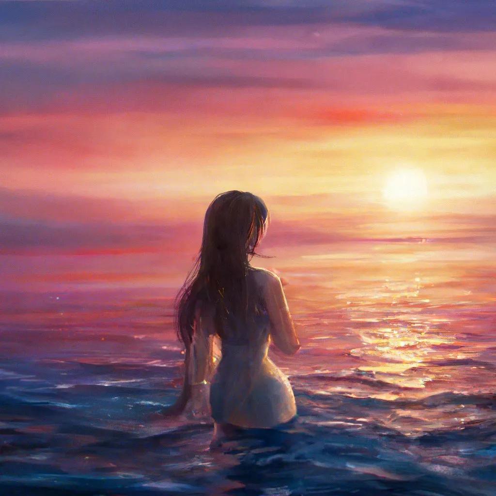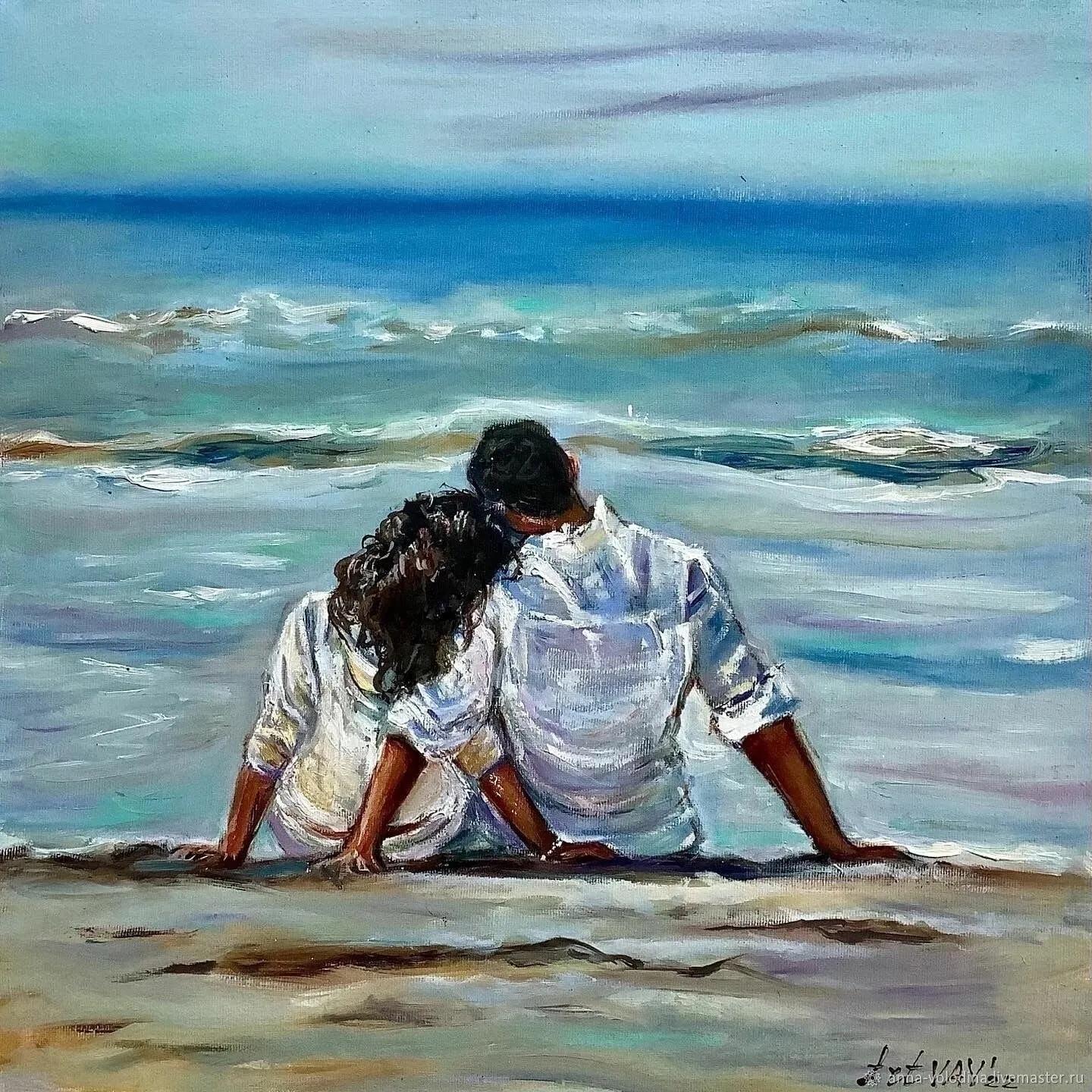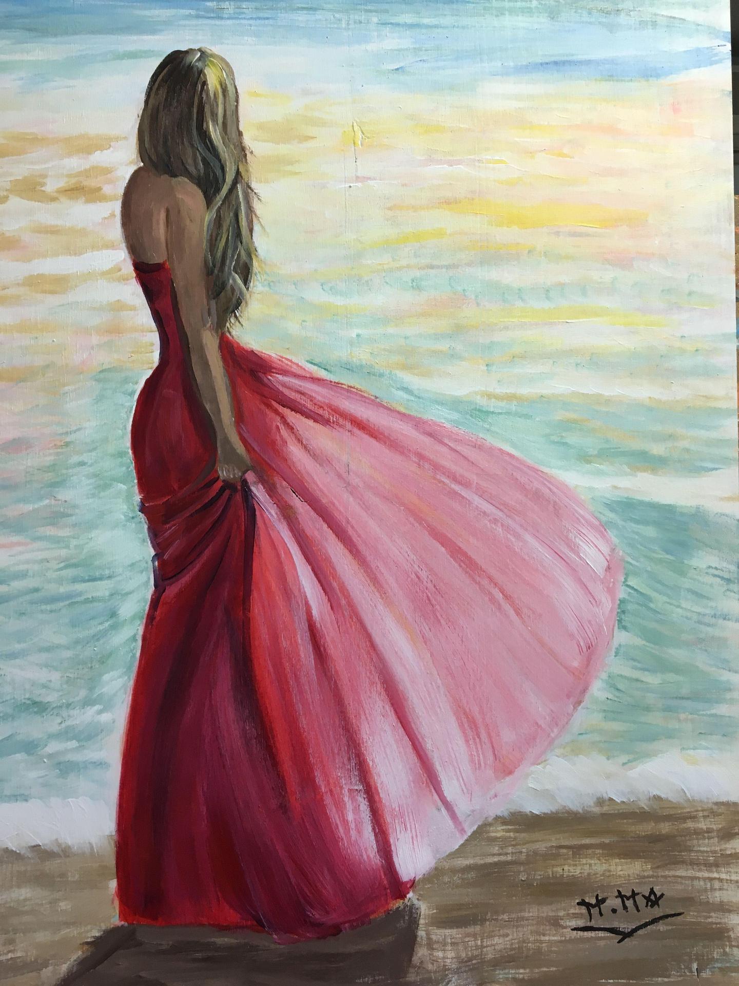 Девушка и море нарисованные
