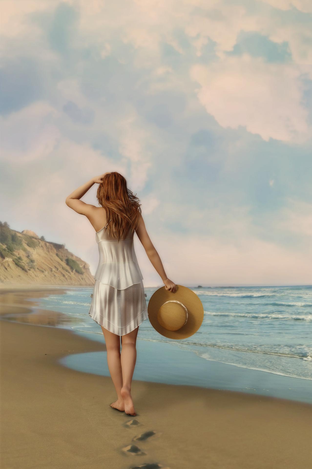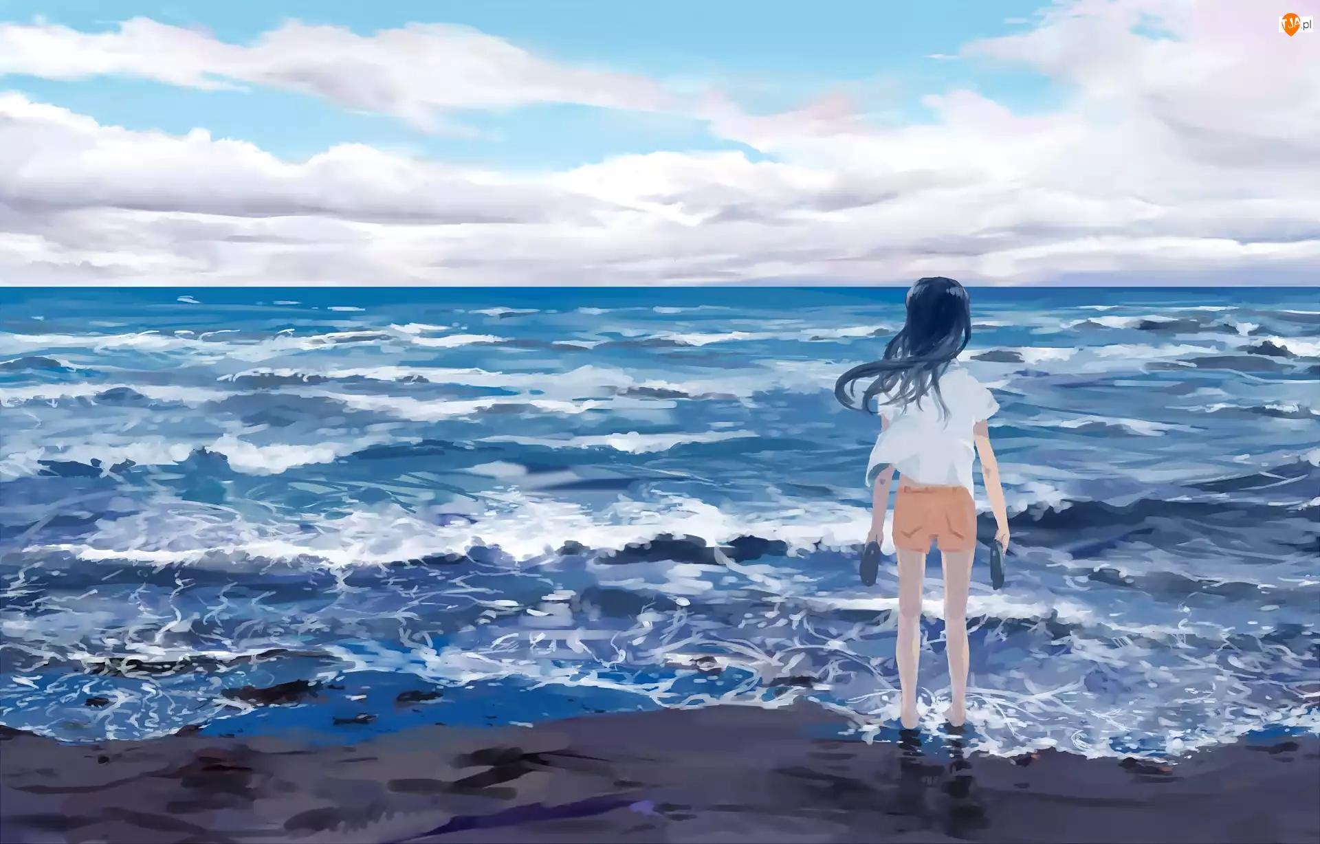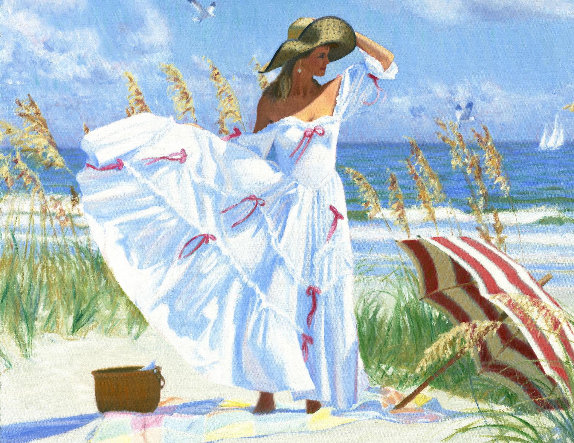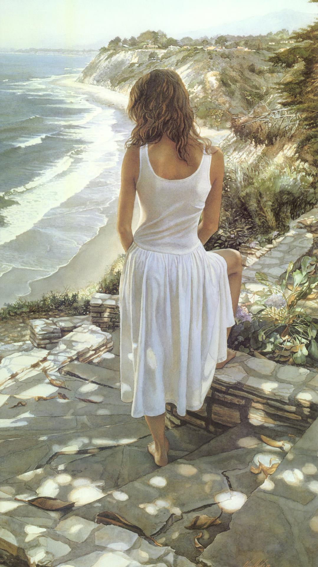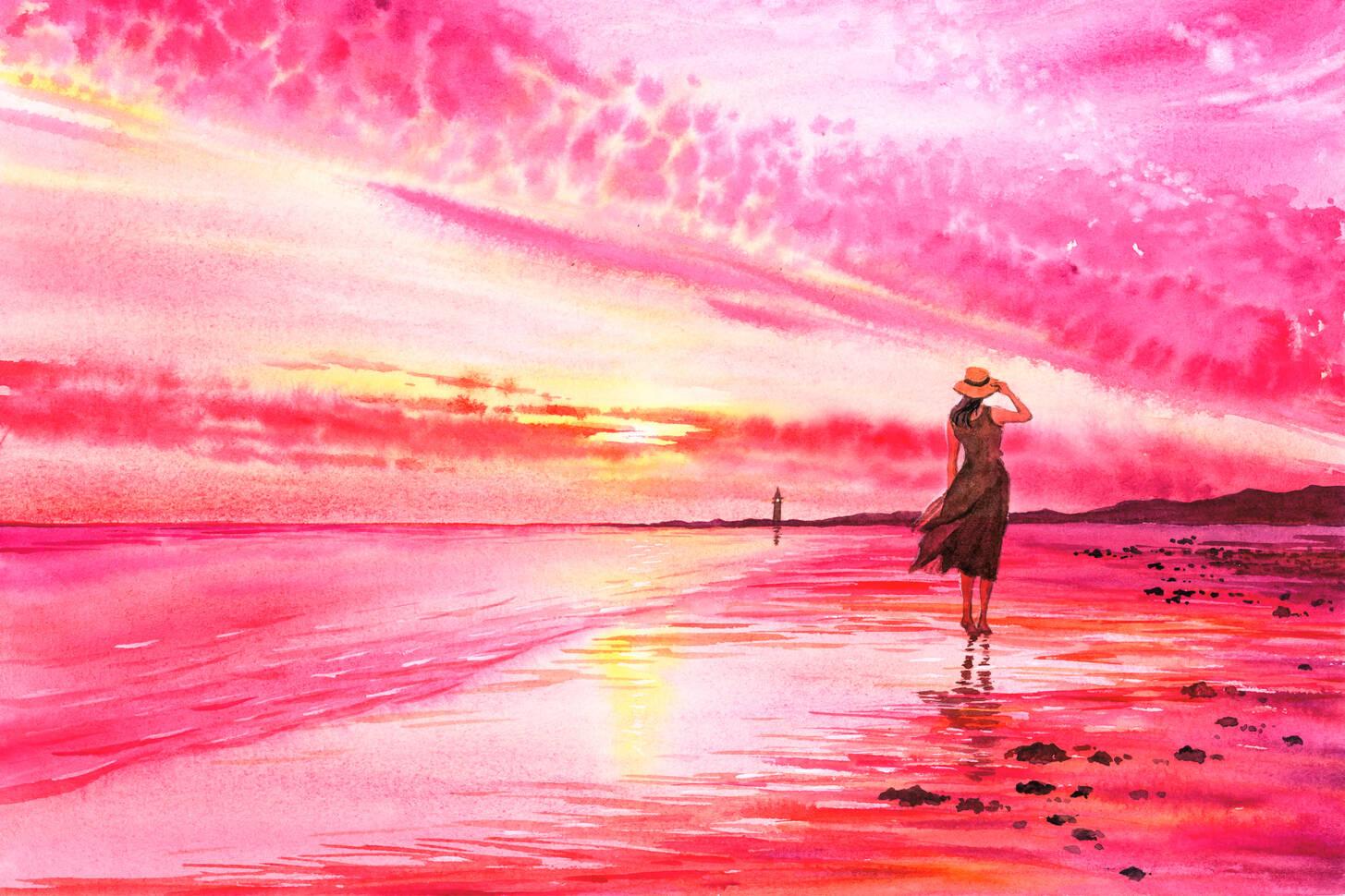 Девушка и море нарисованные