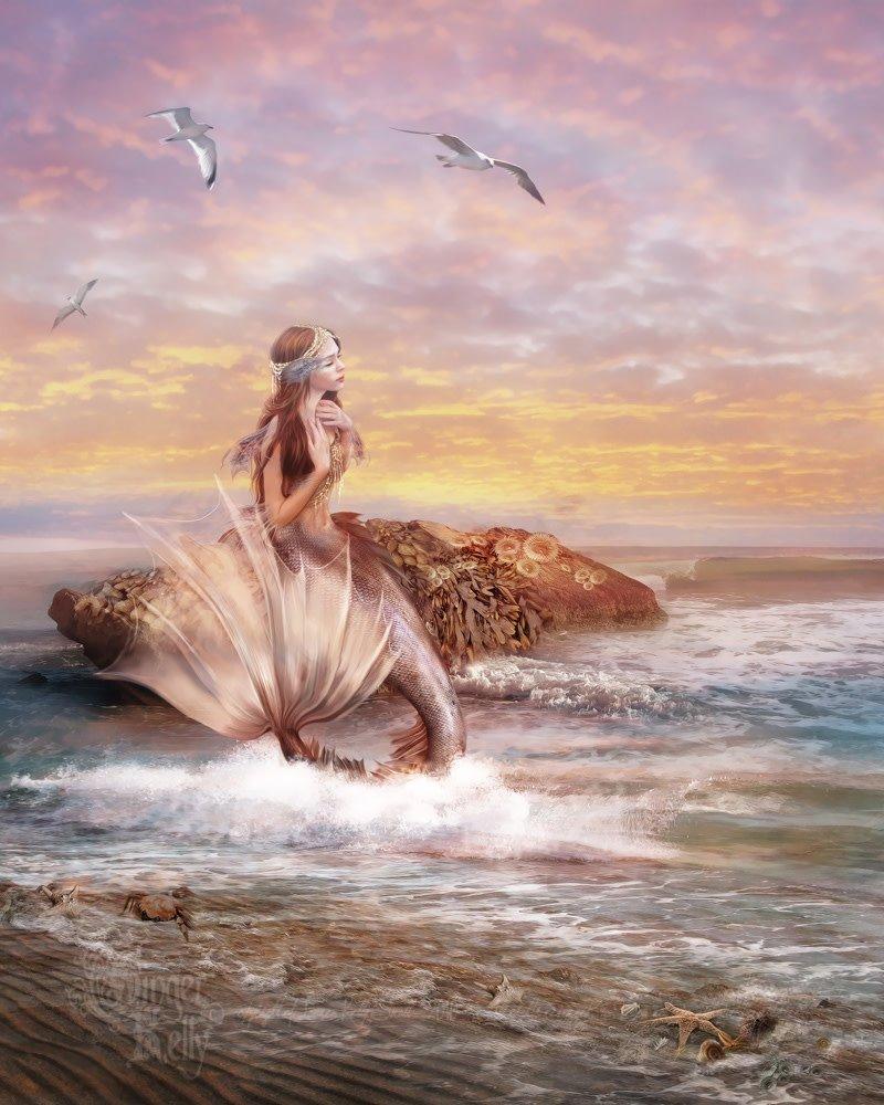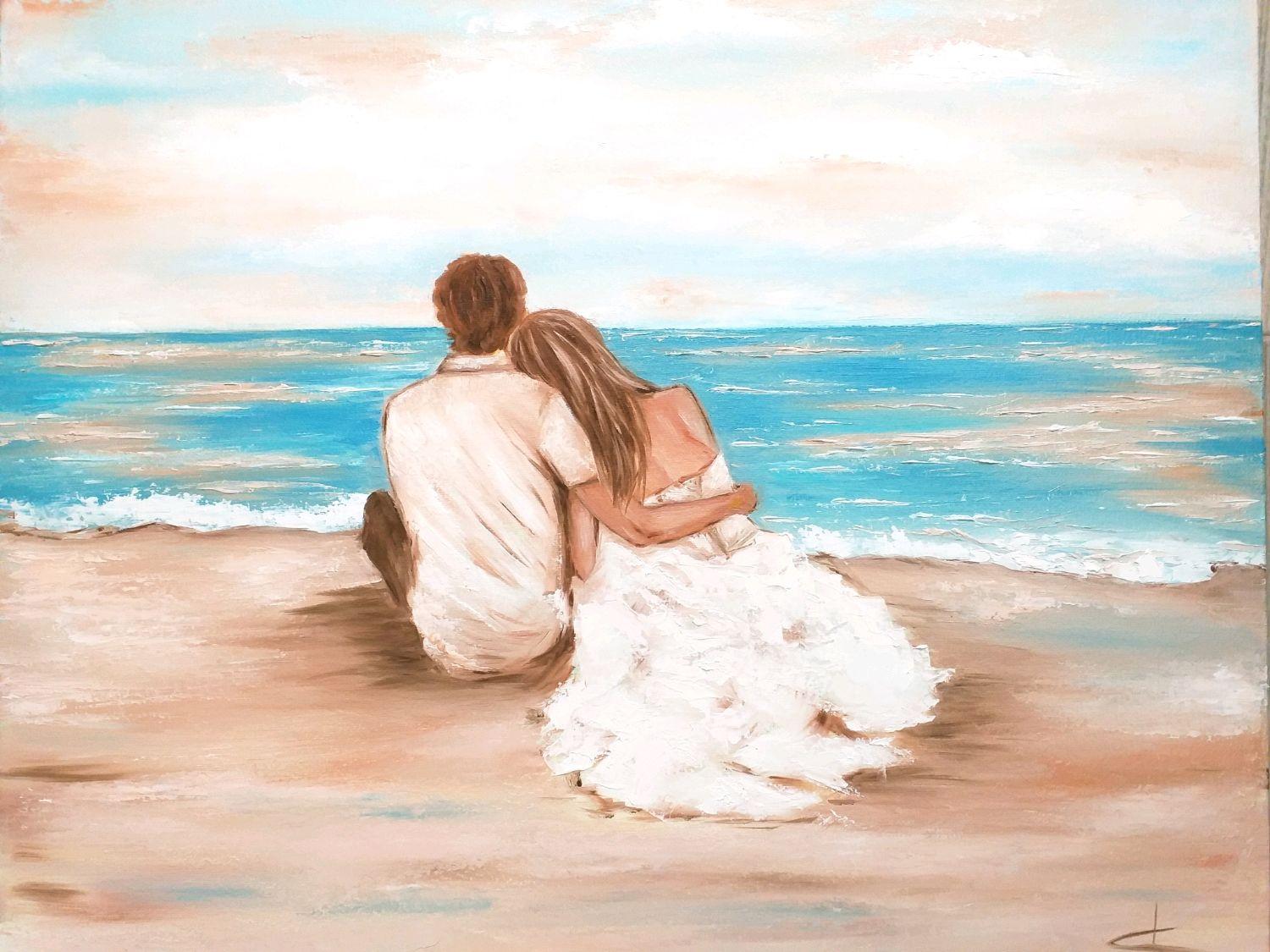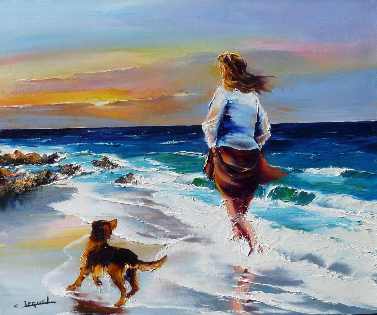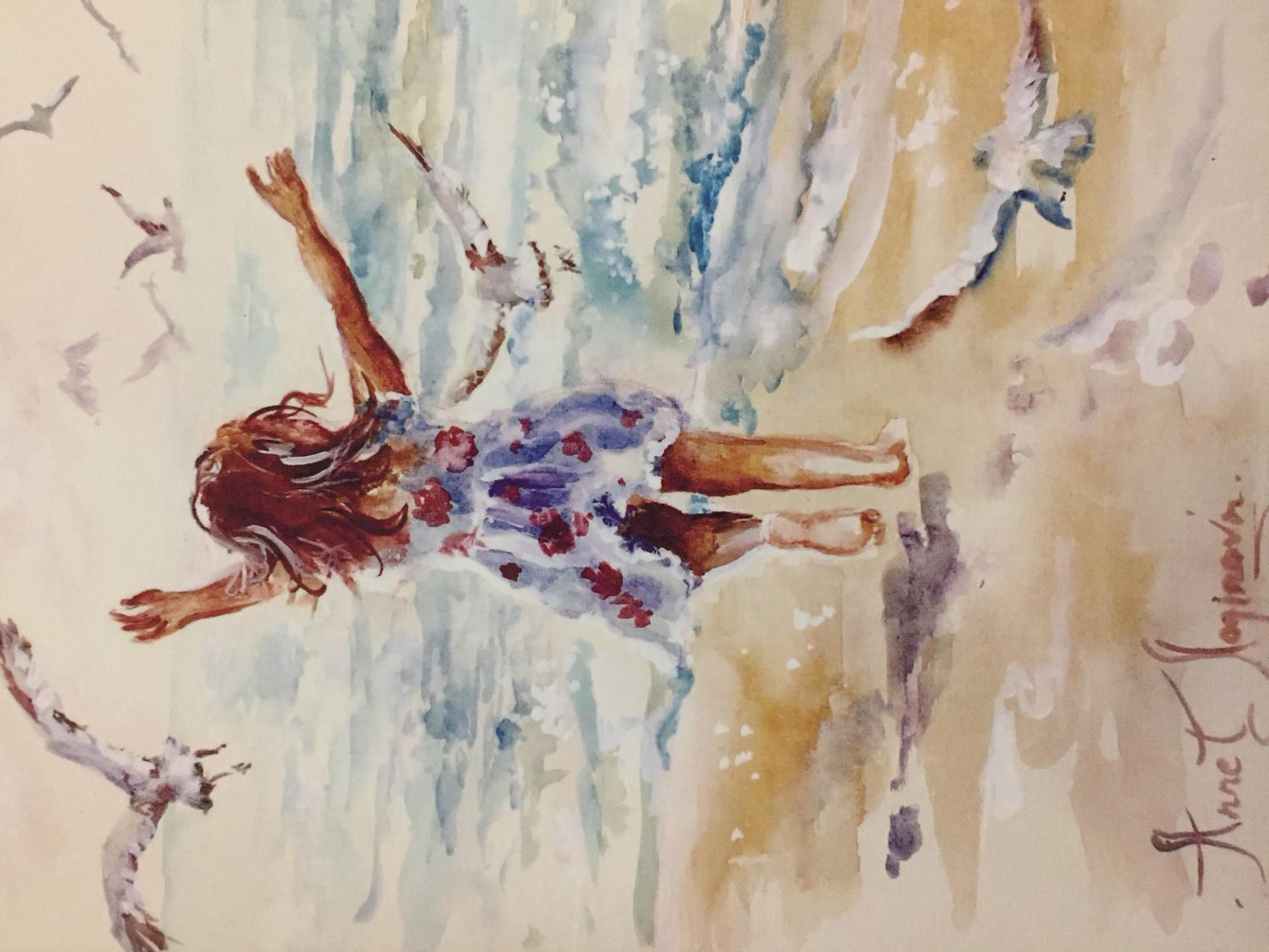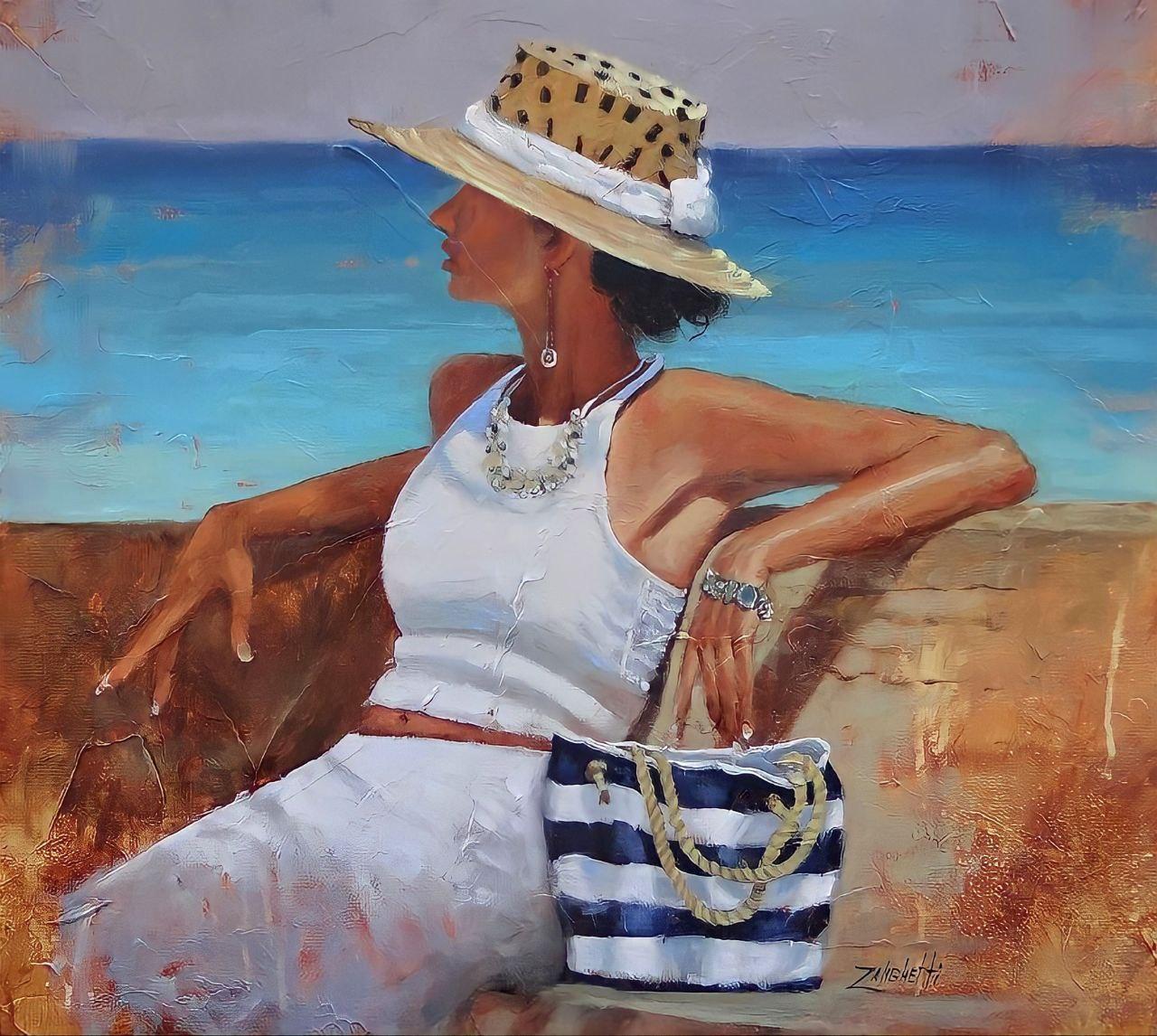 Девушка и море нарисованные