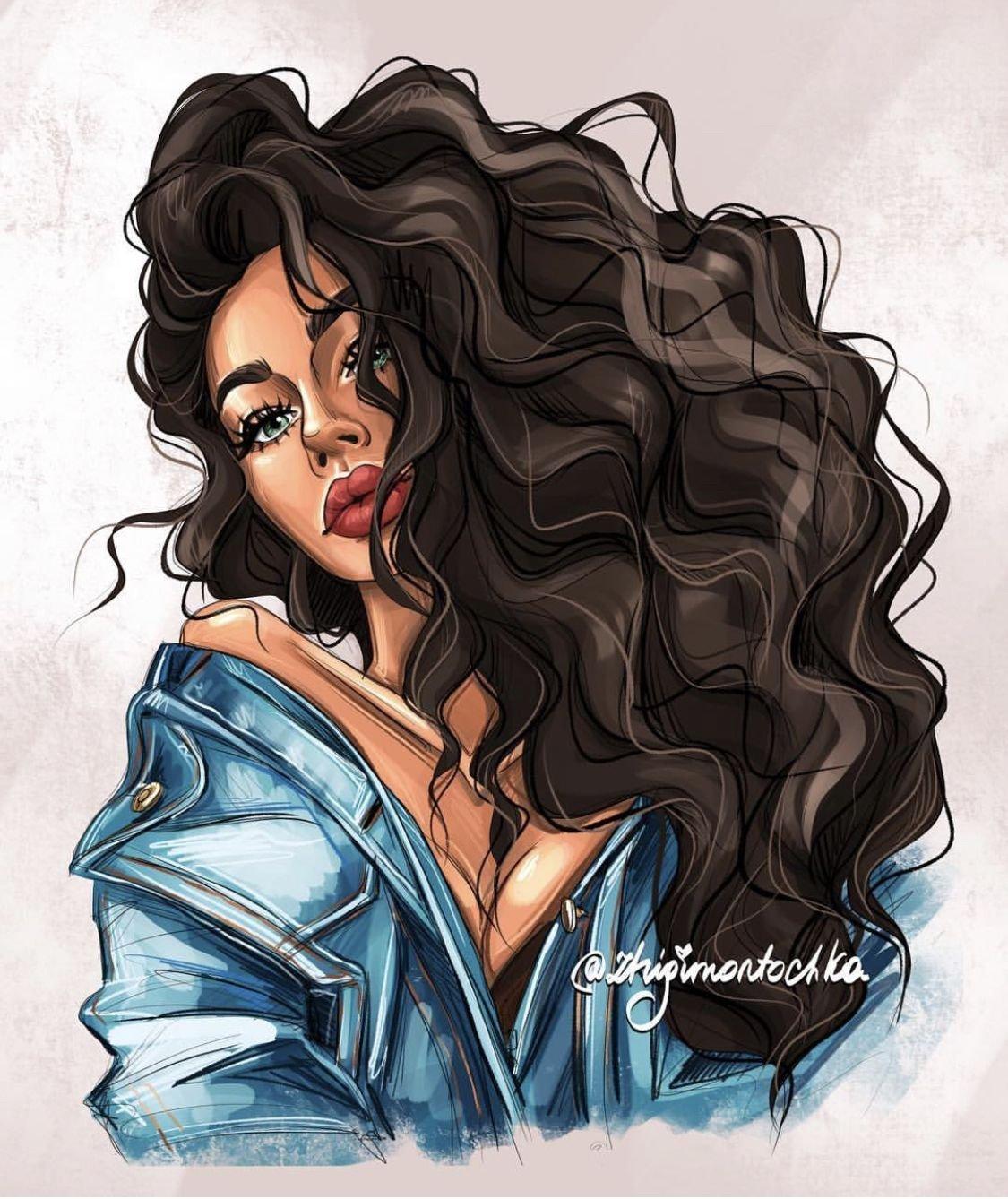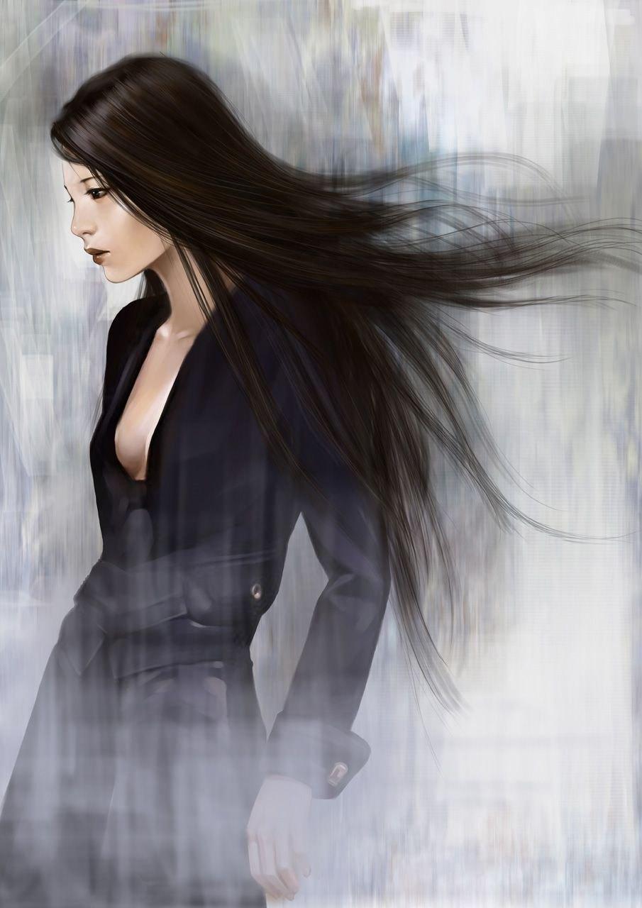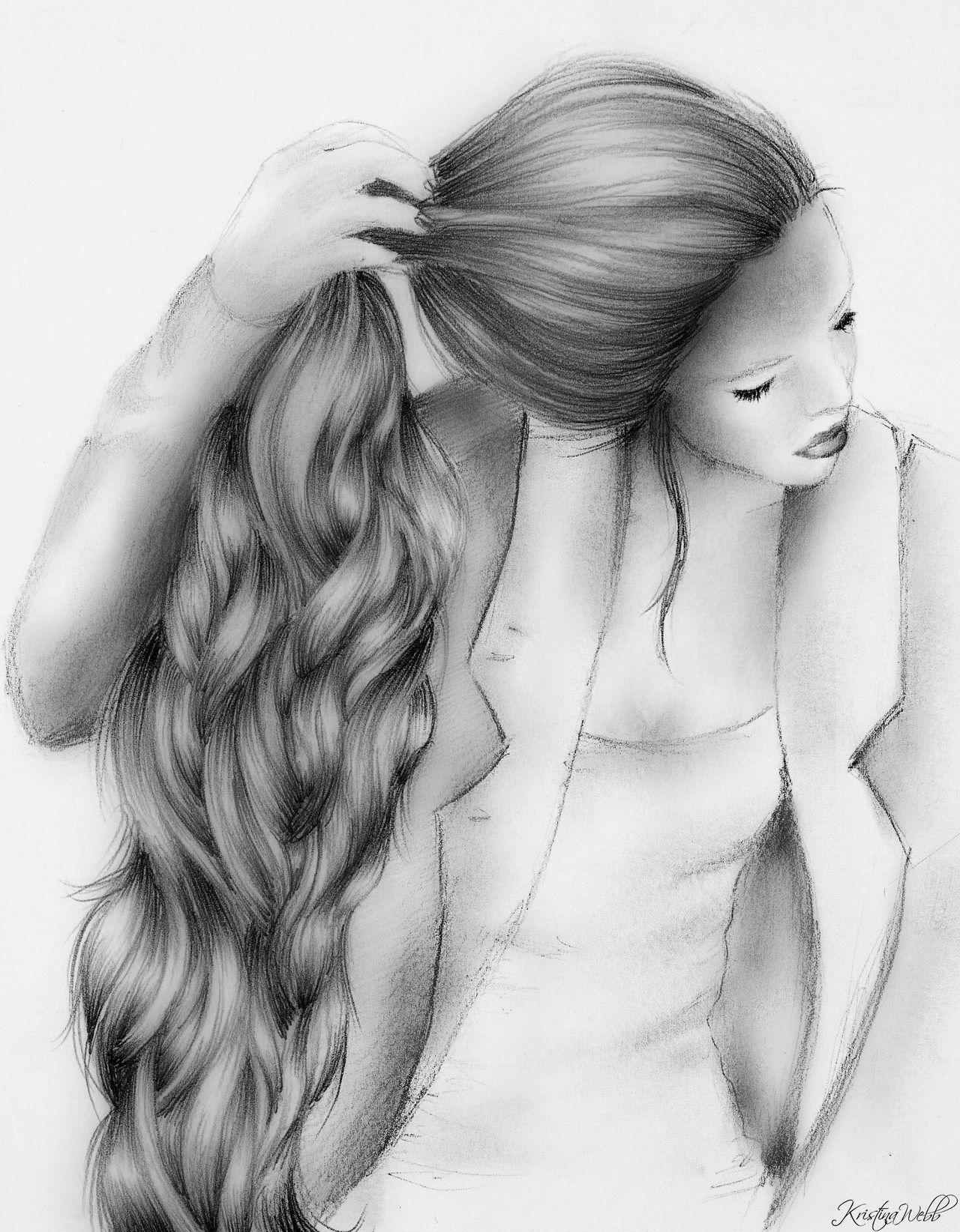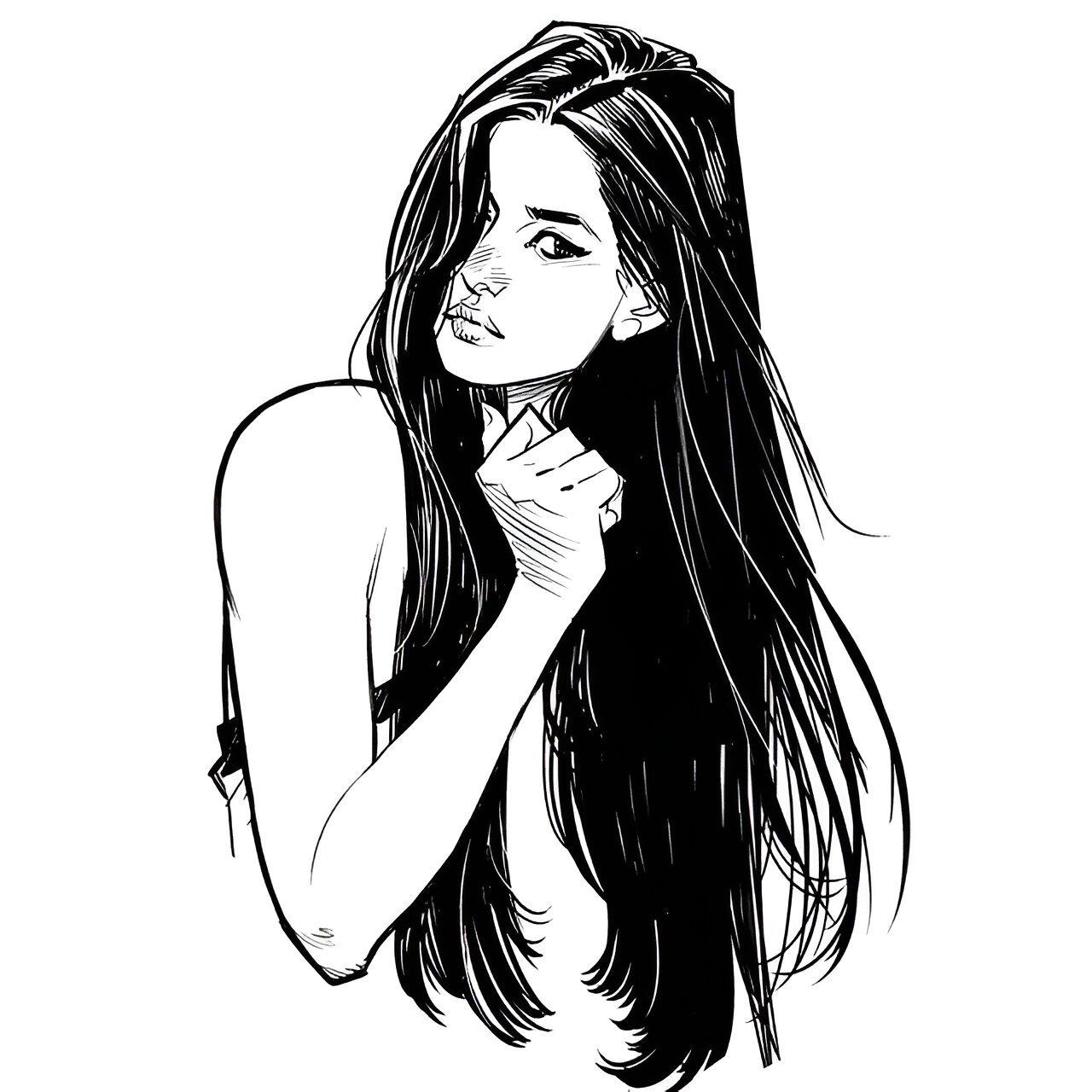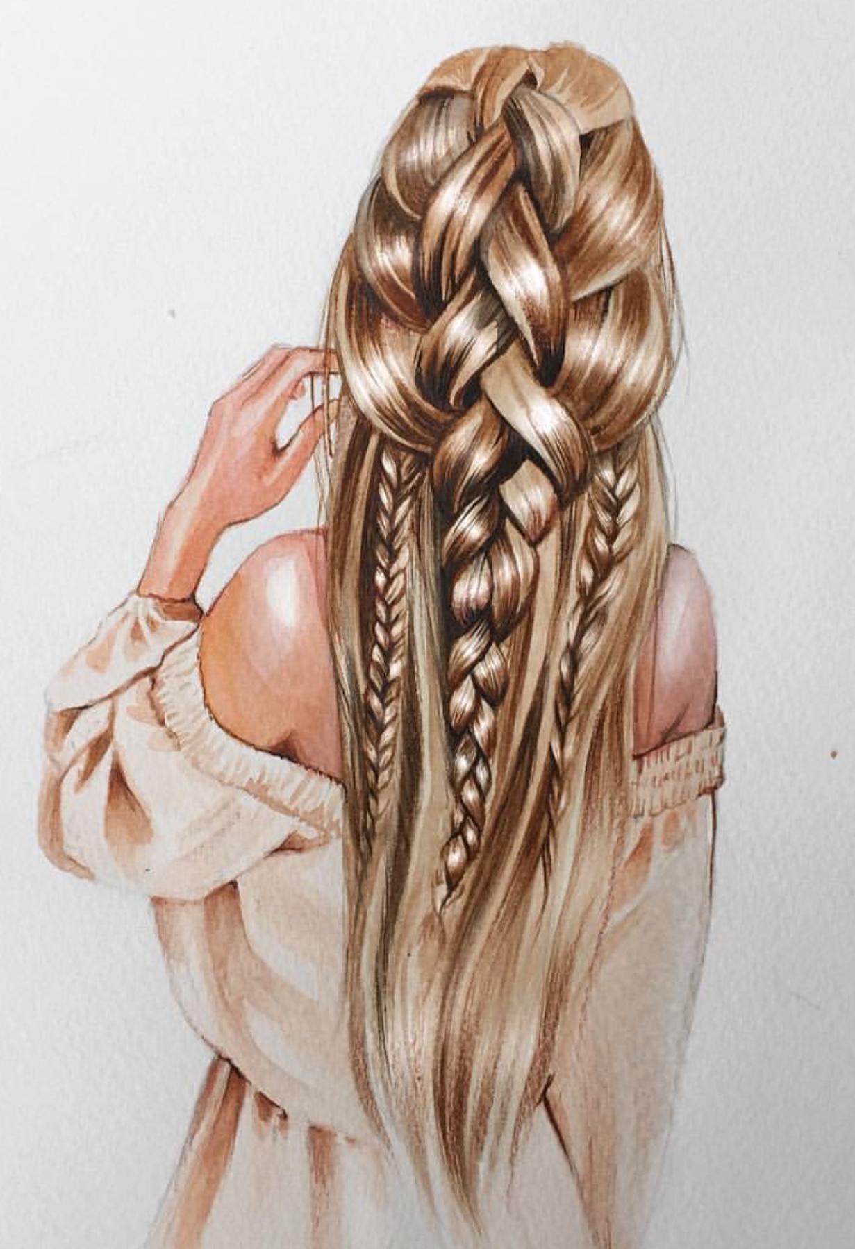 С девушками нарисованные с длинными волосами