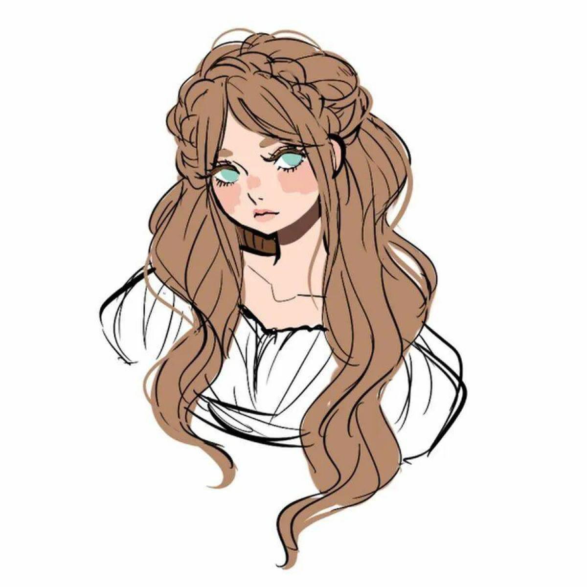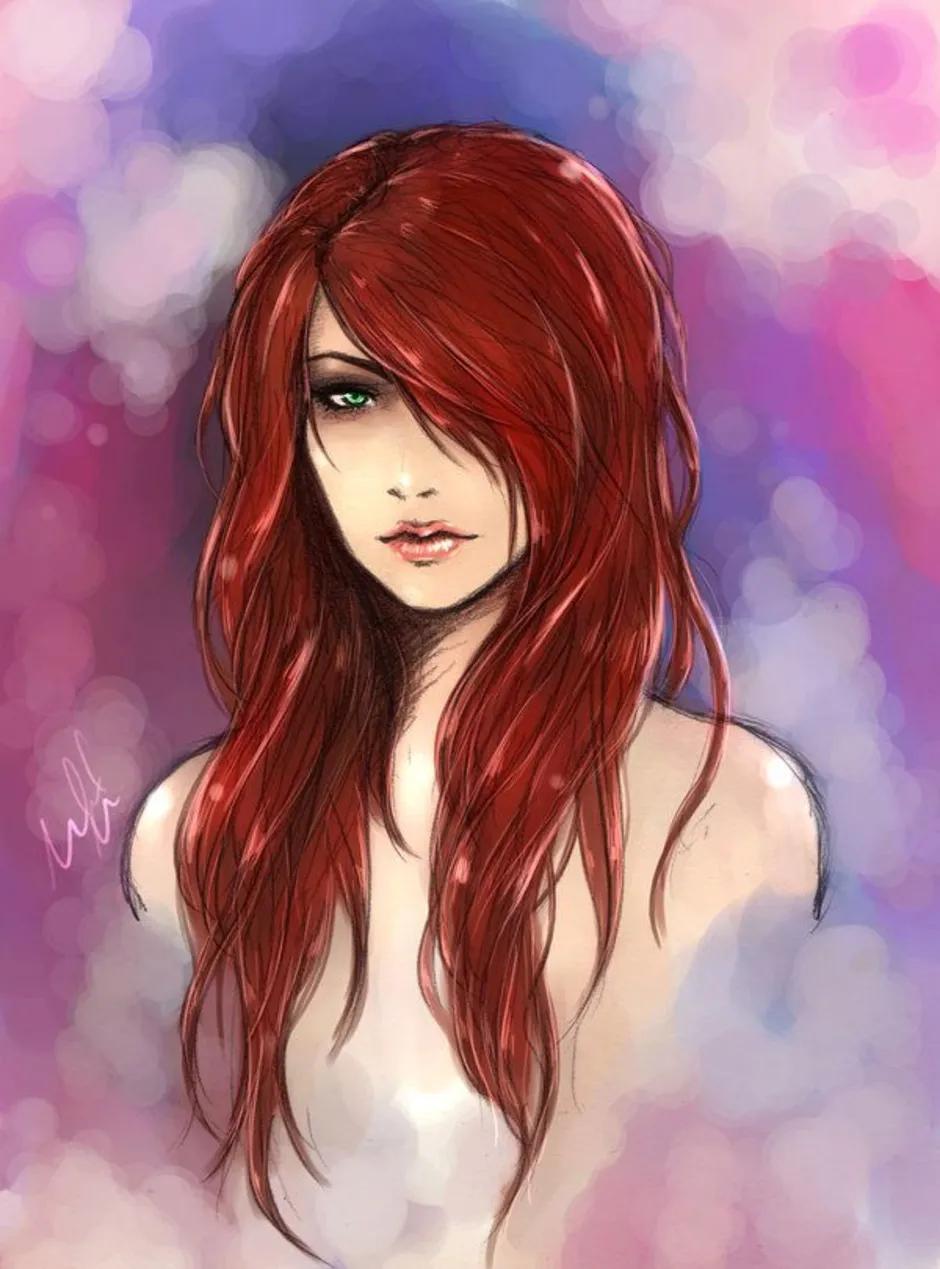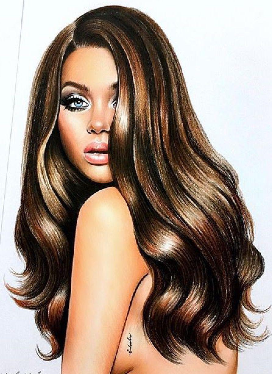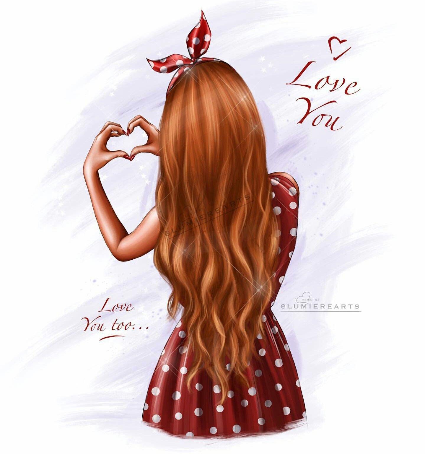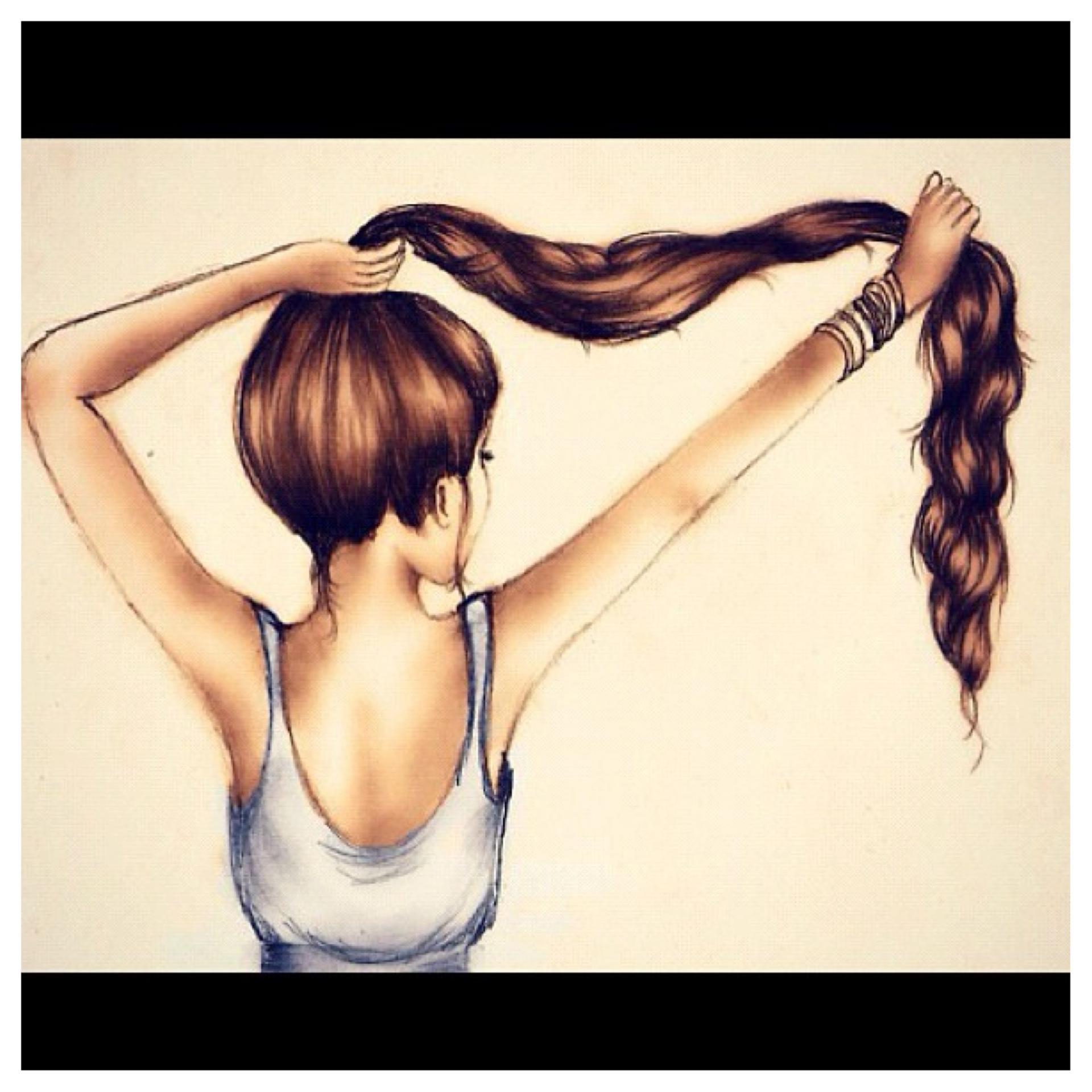 С девушками нарисованные с длинными волосами