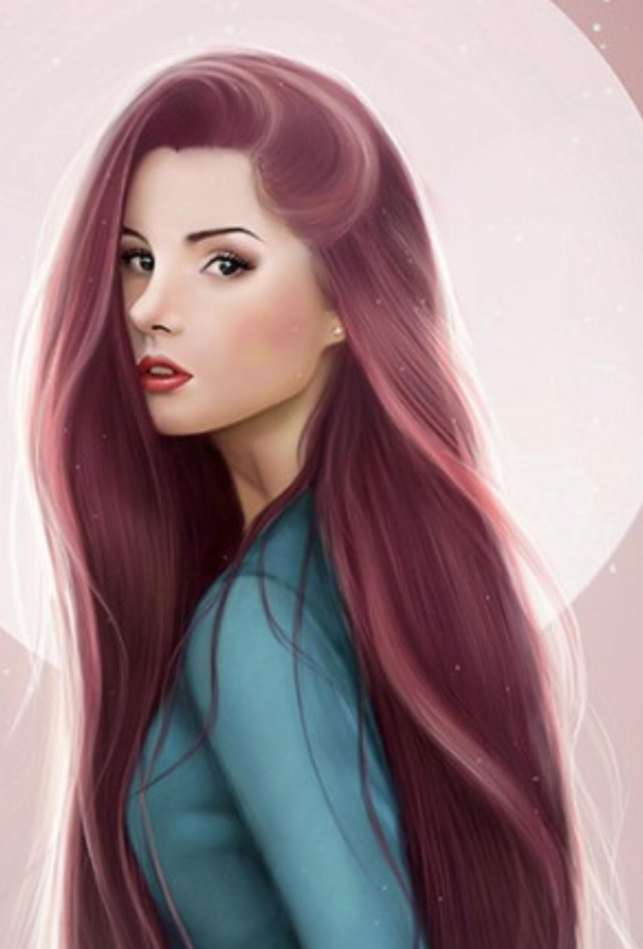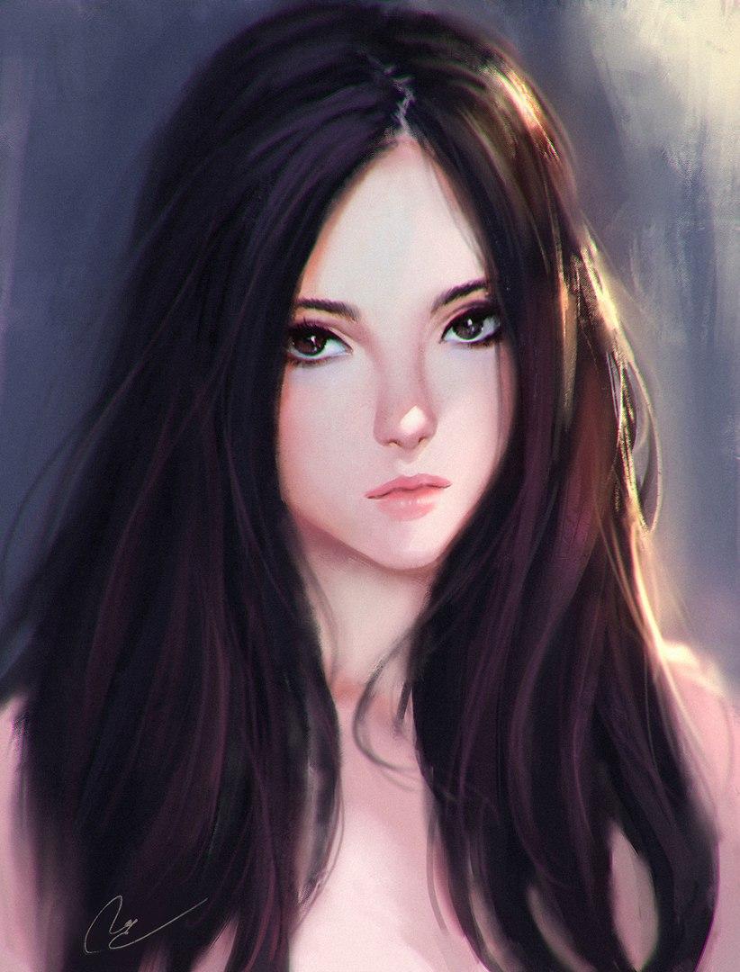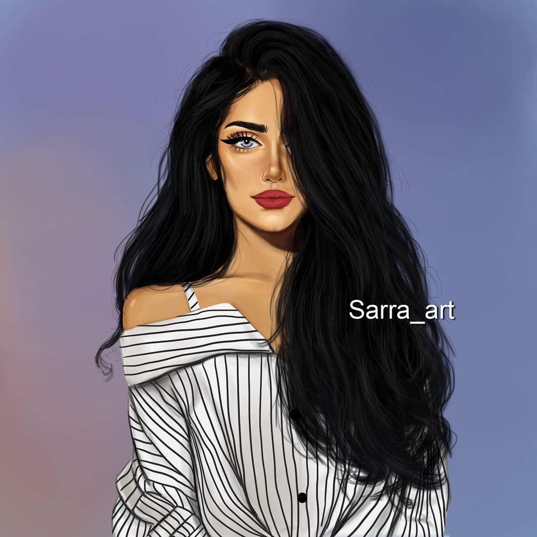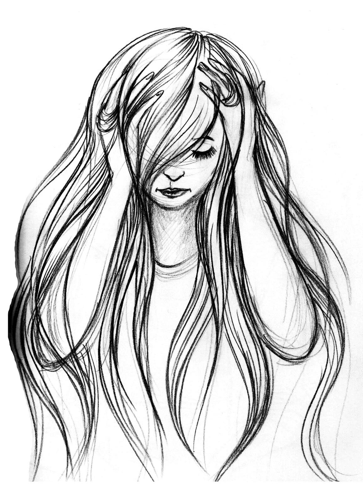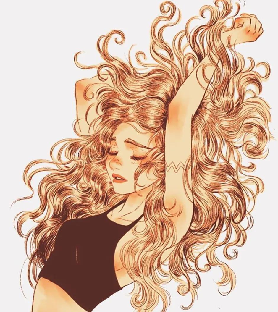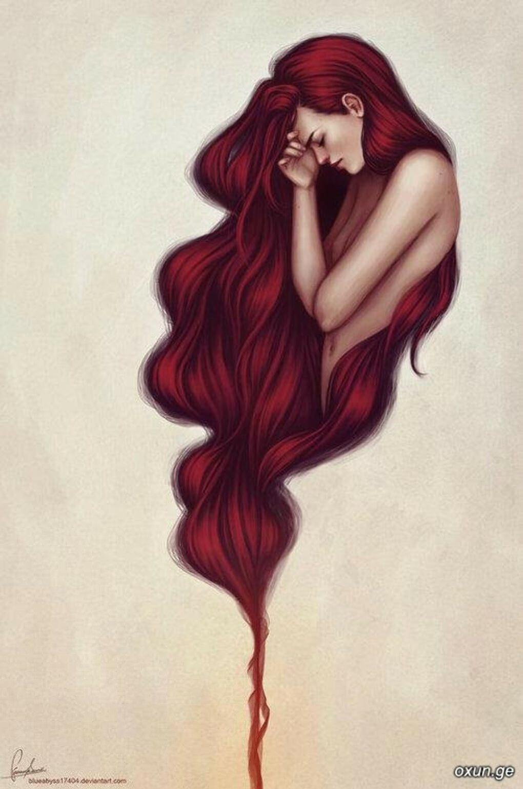 С девушками нарисованные с длинными волосами