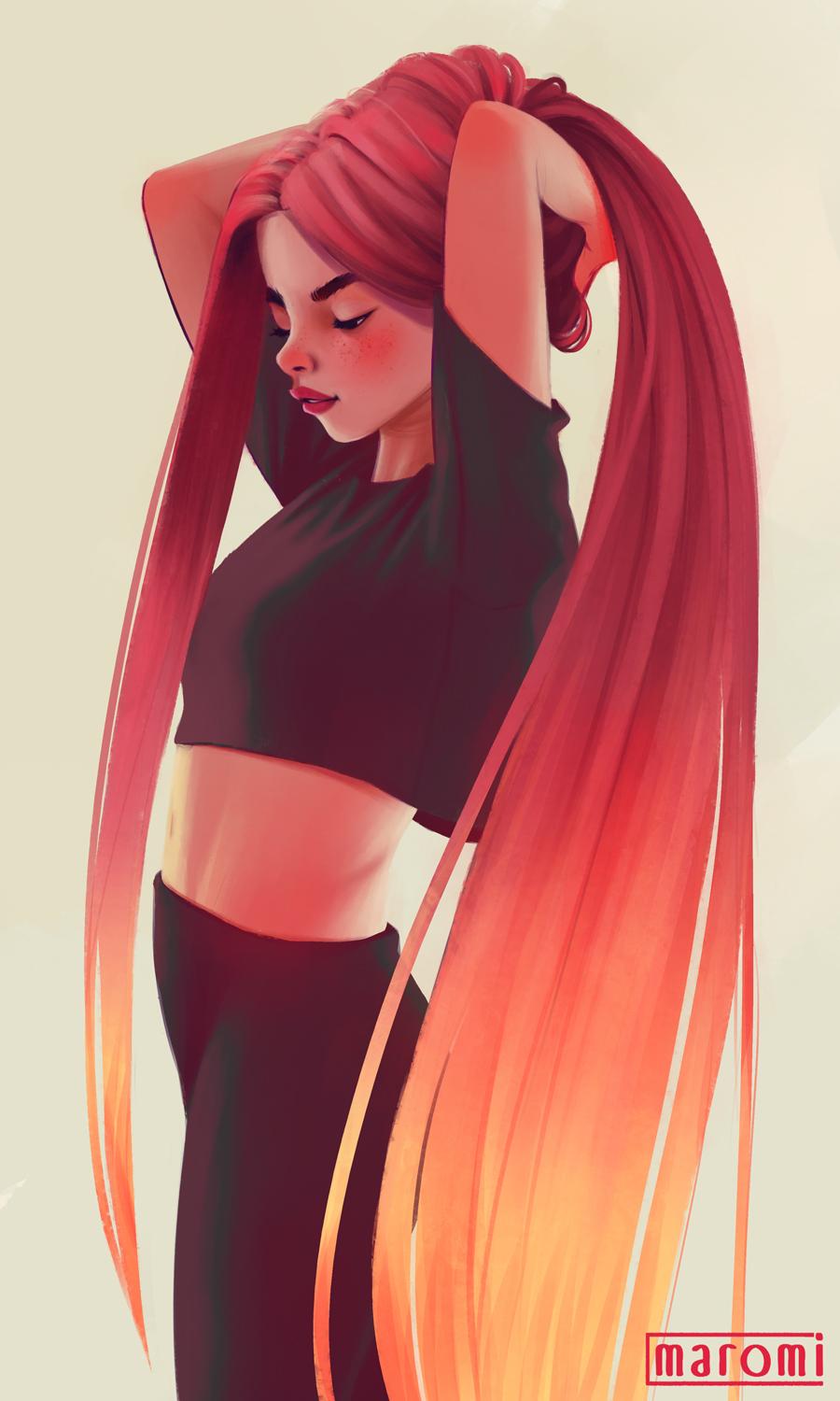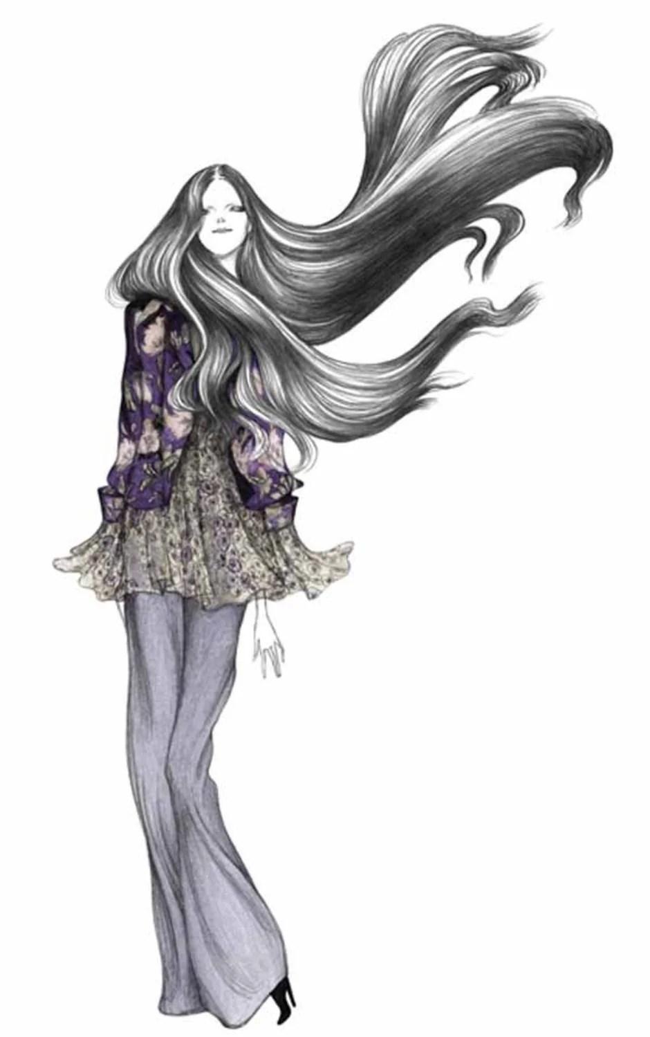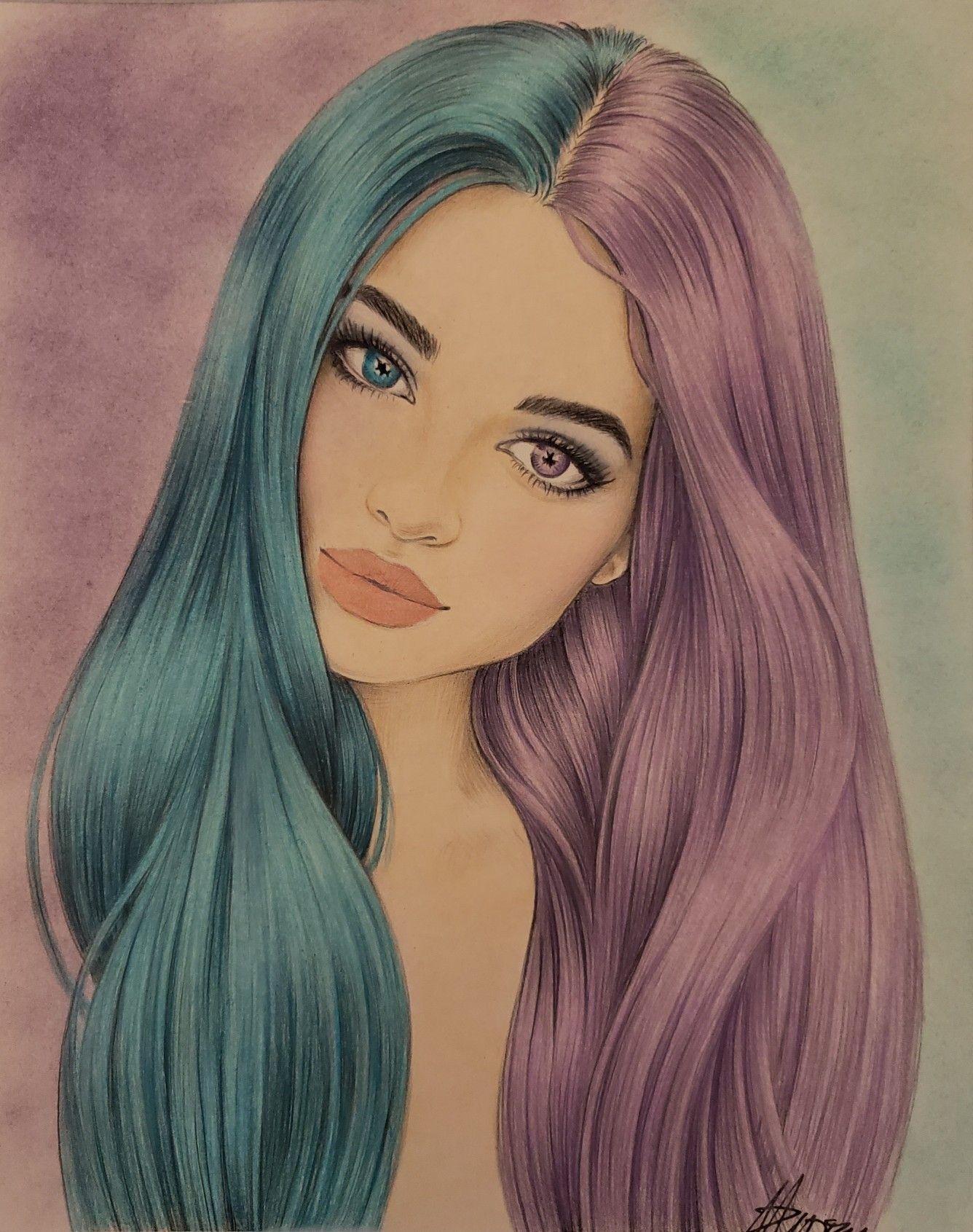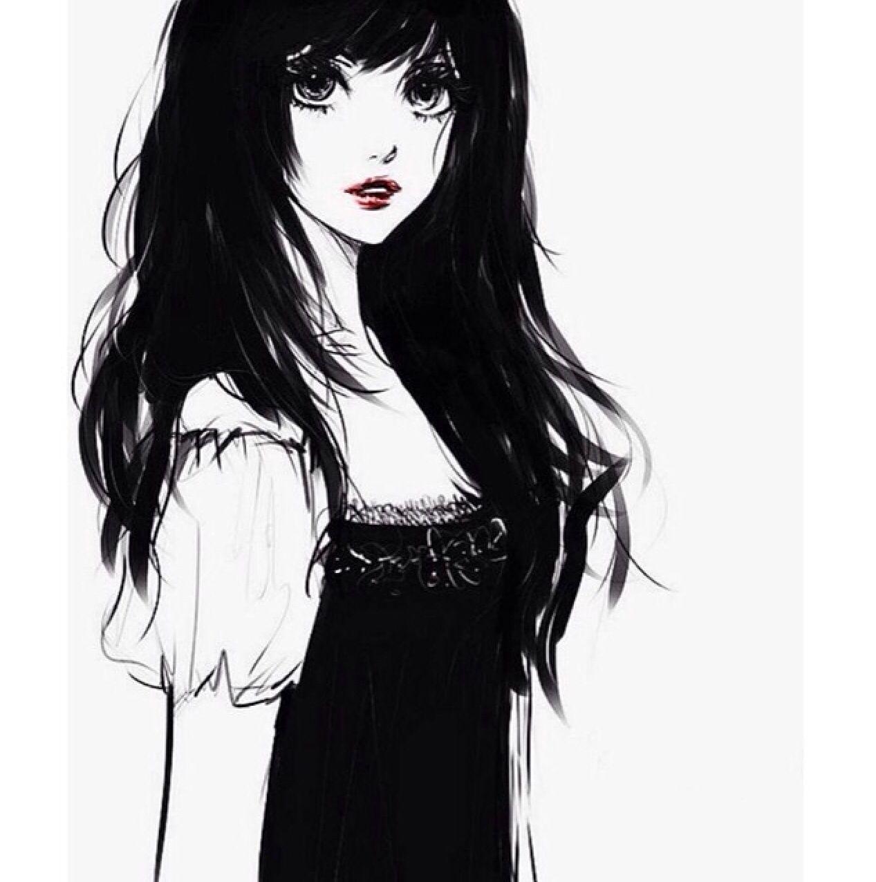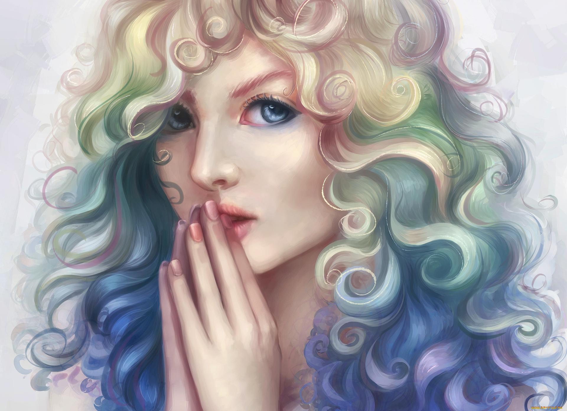 С девушками нарисованные с длинными волосами