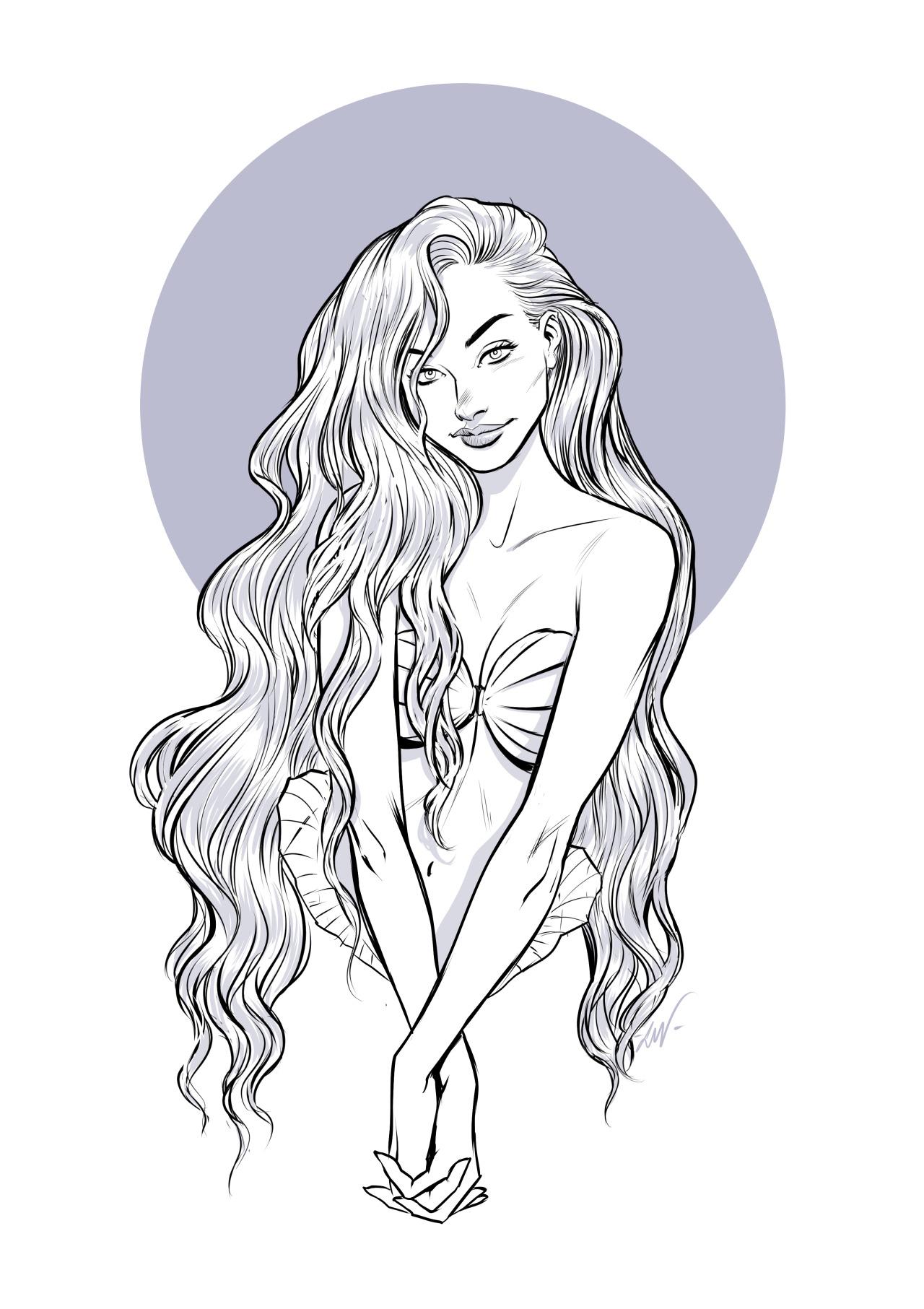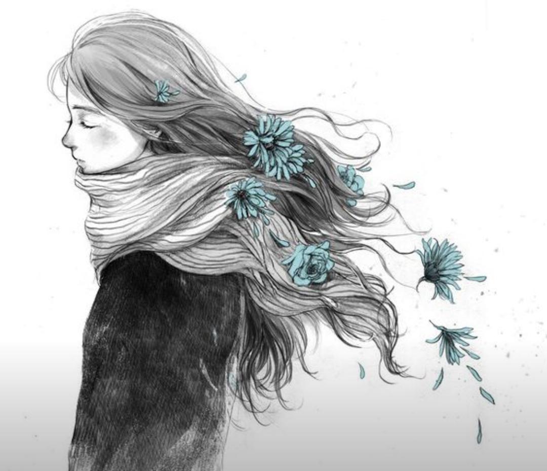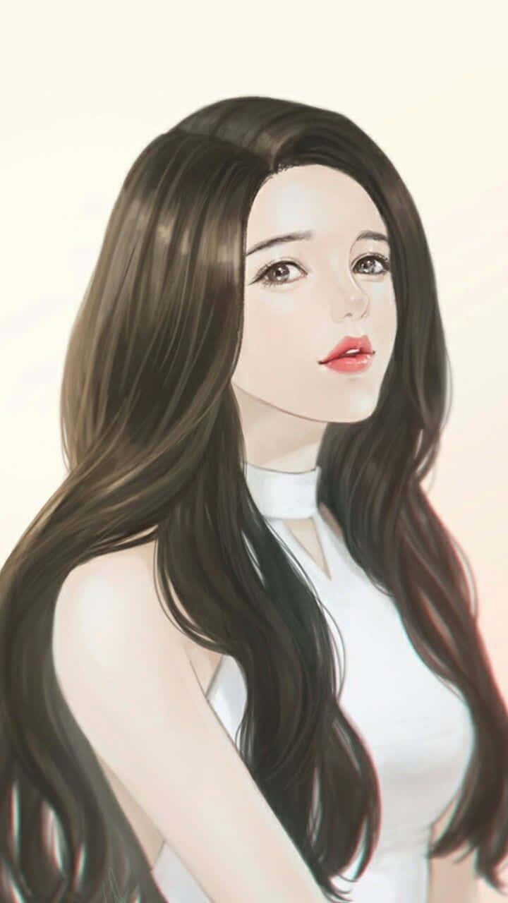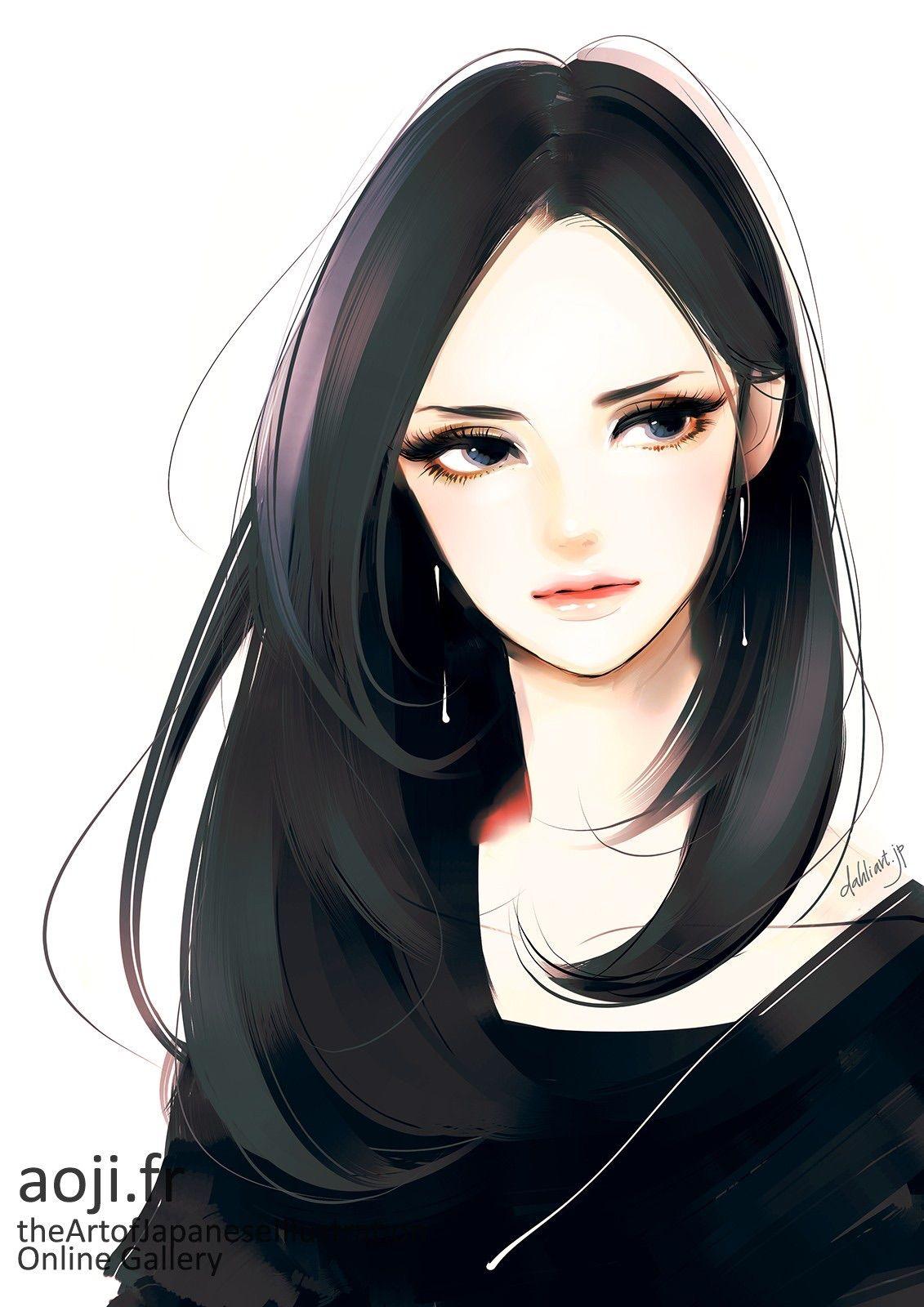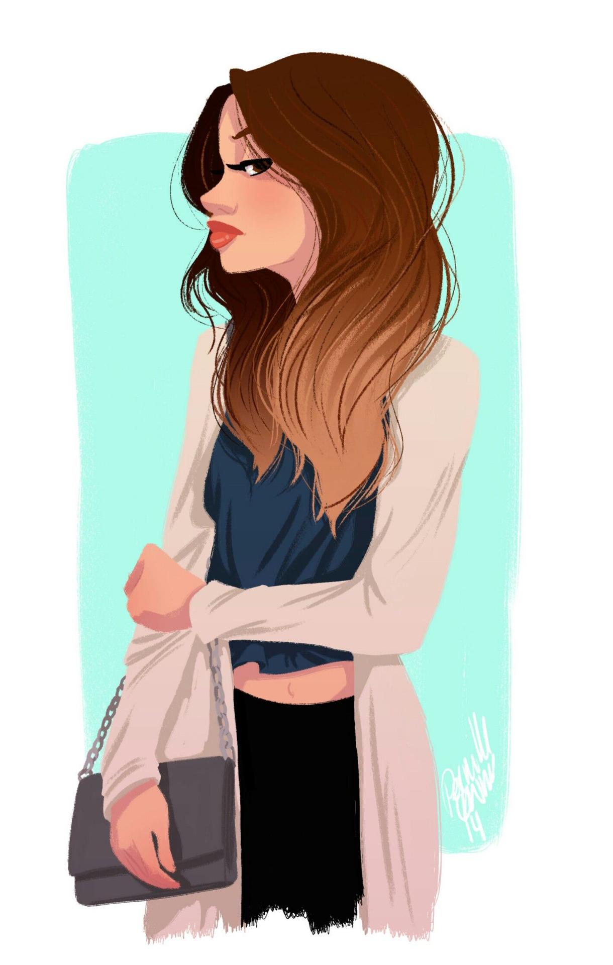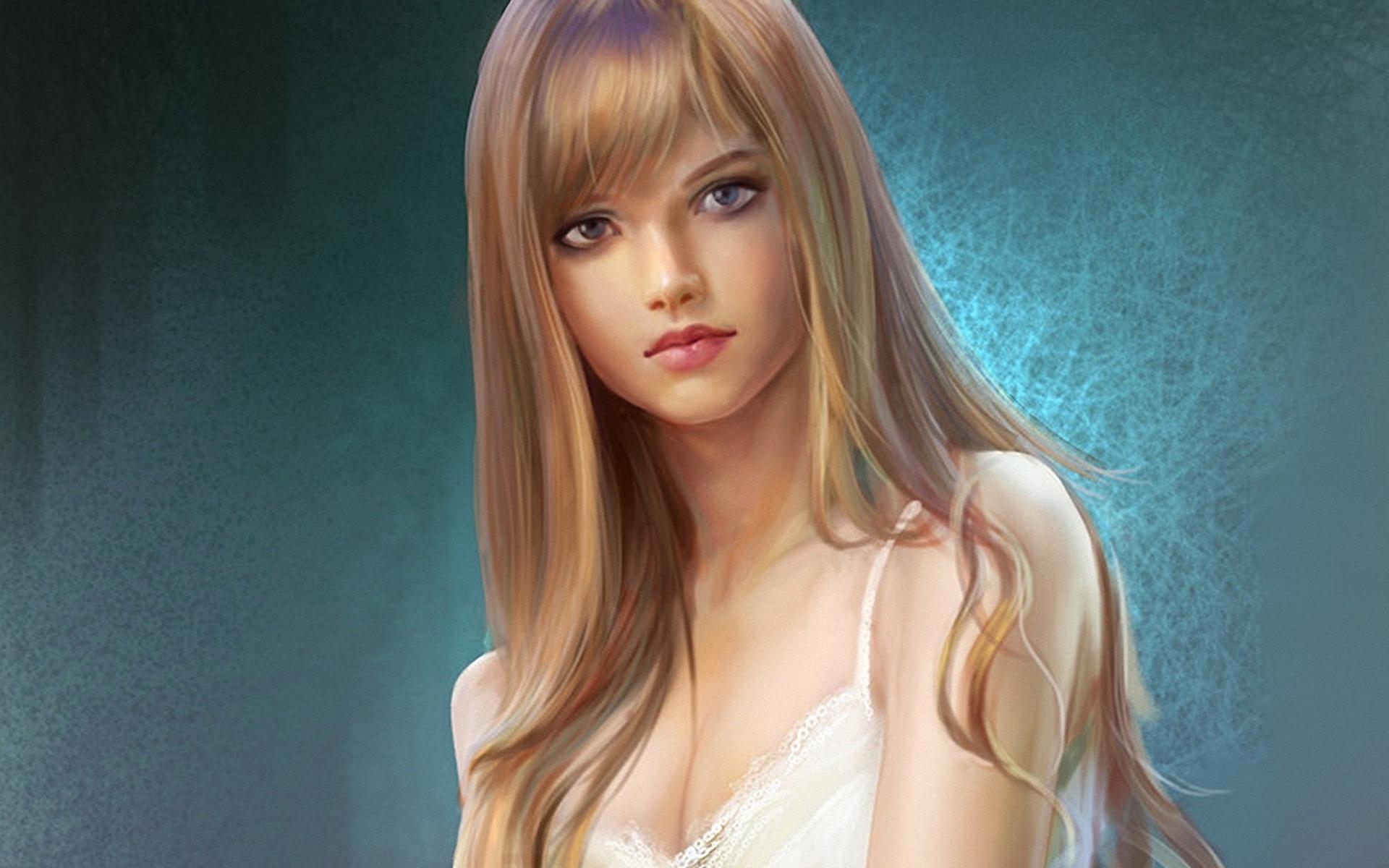 С девушками нарисованные с длинными волосами