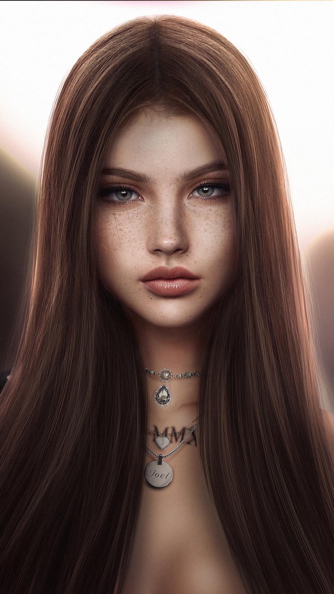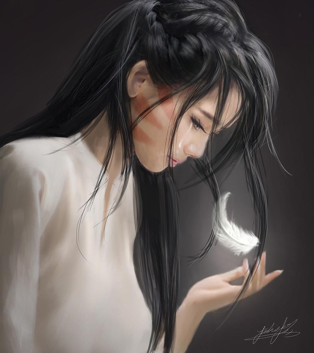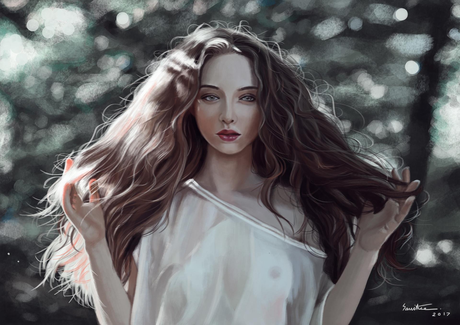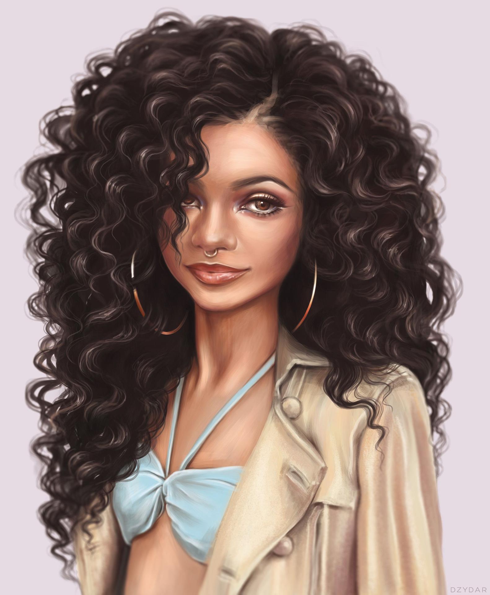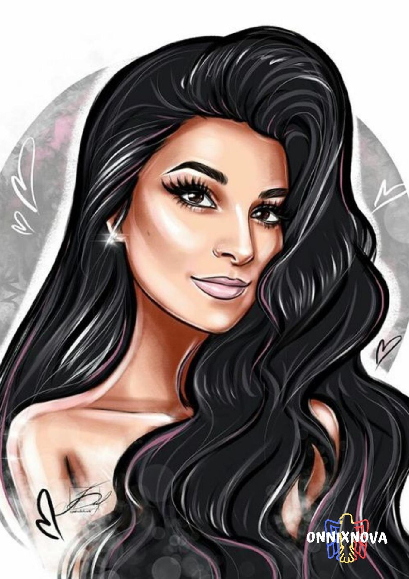 С девушками нарисованные с длинными волосами