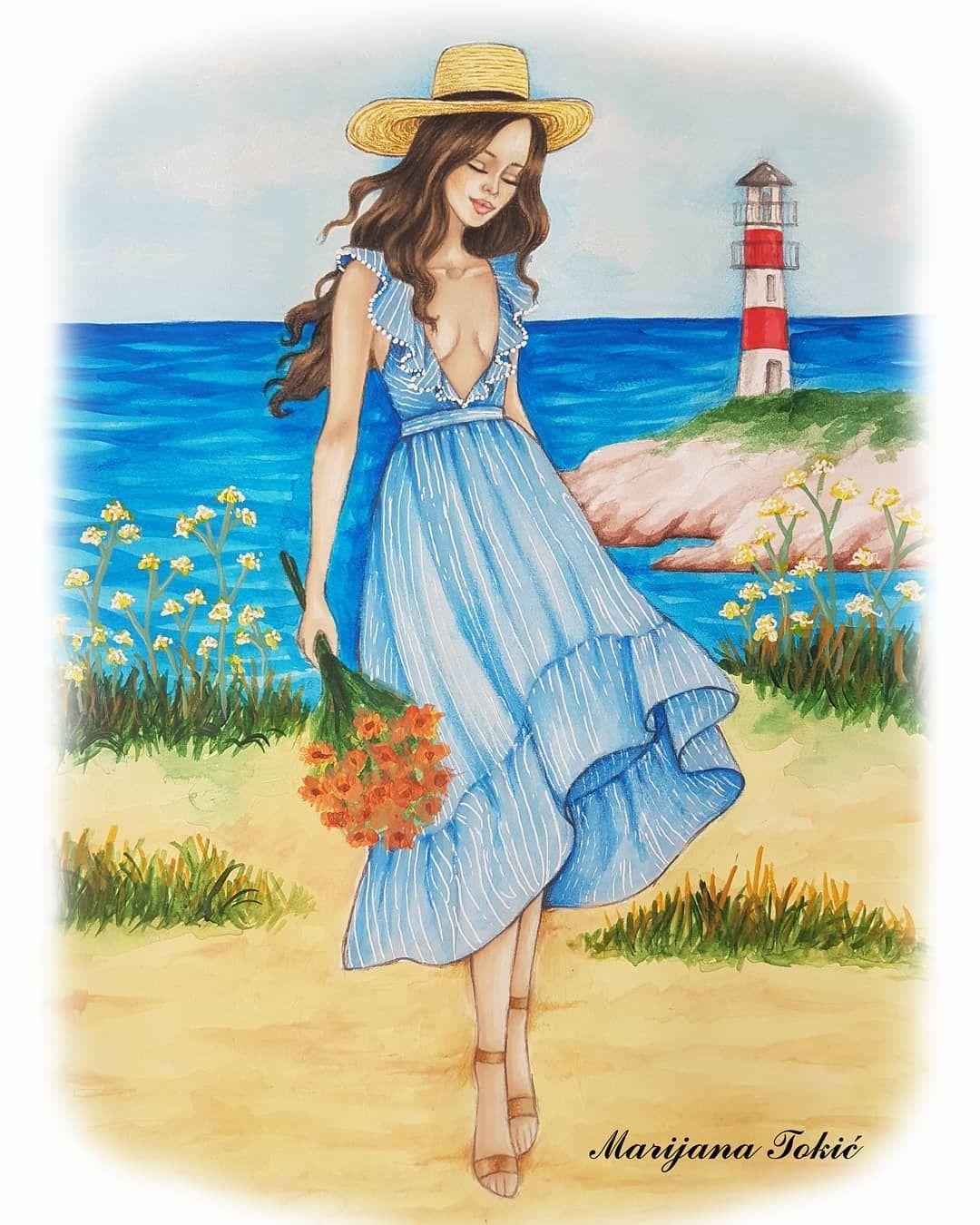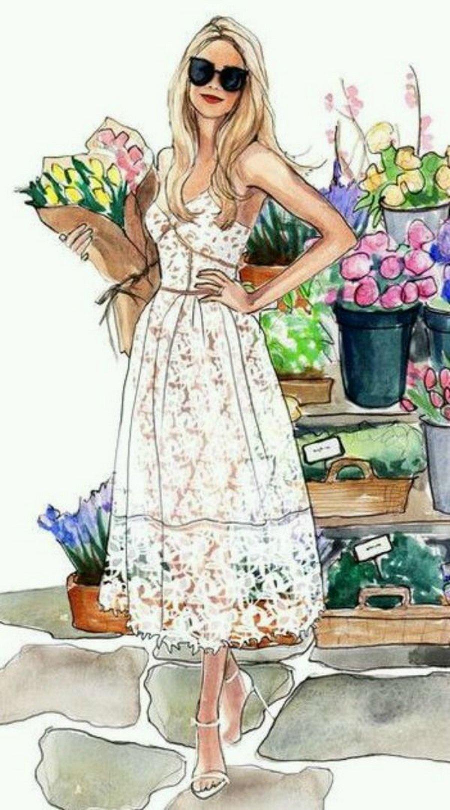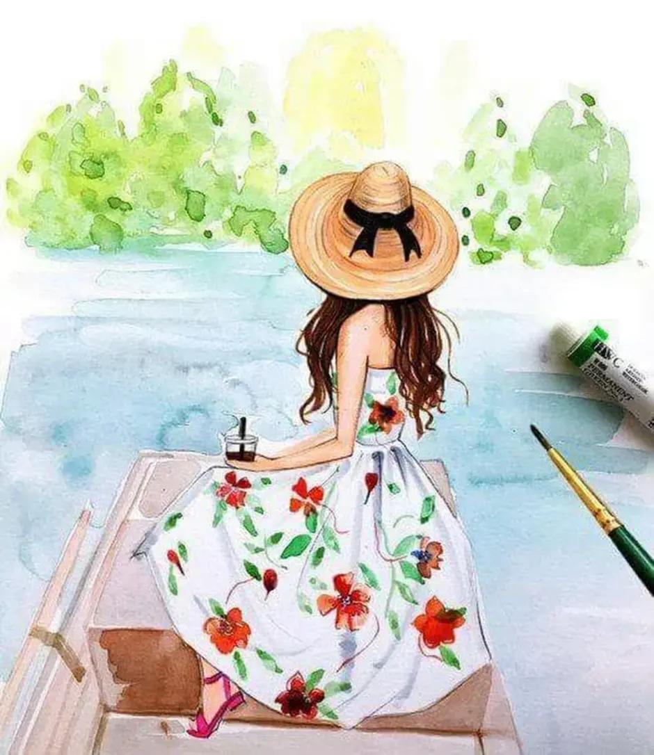 Девушка лето нарисованные