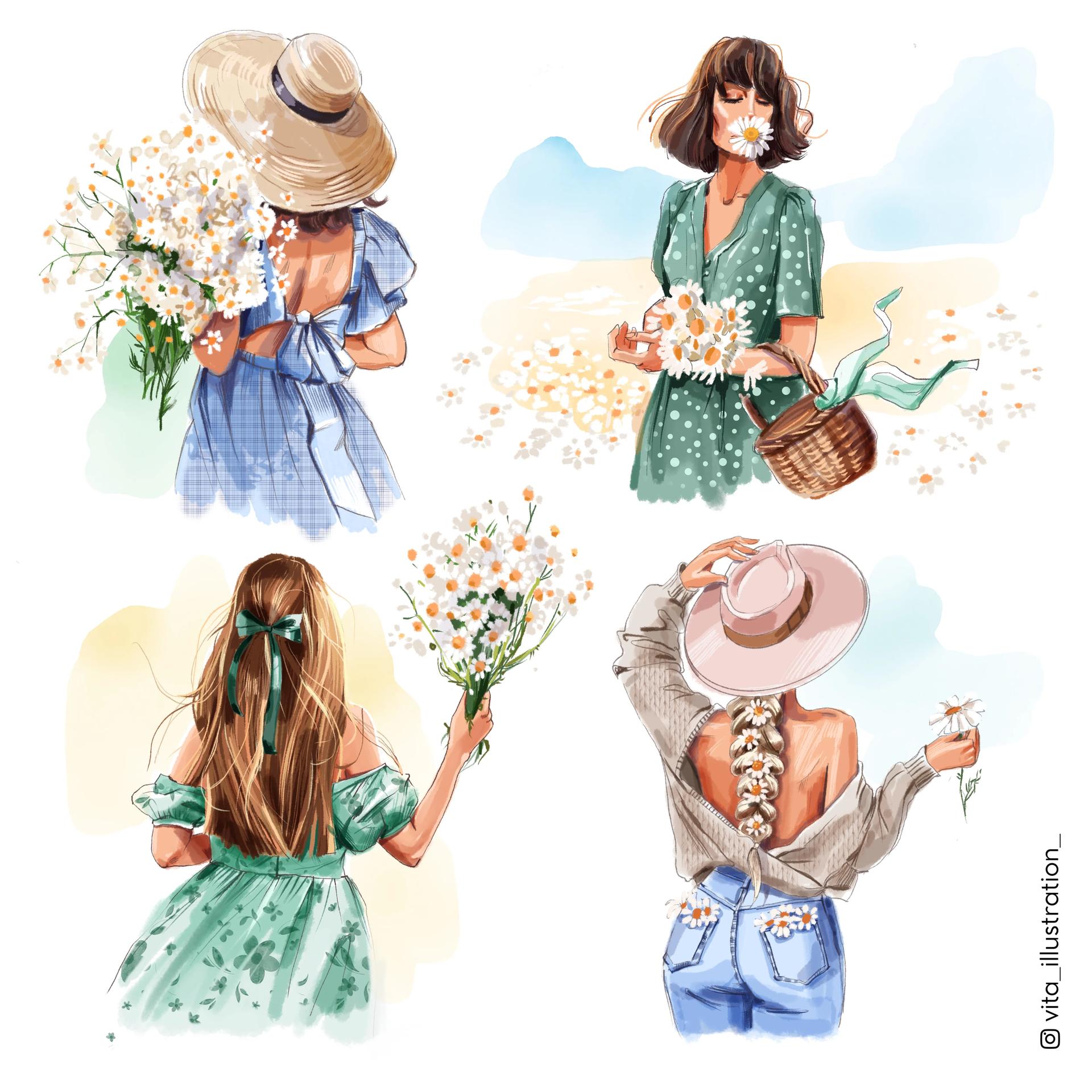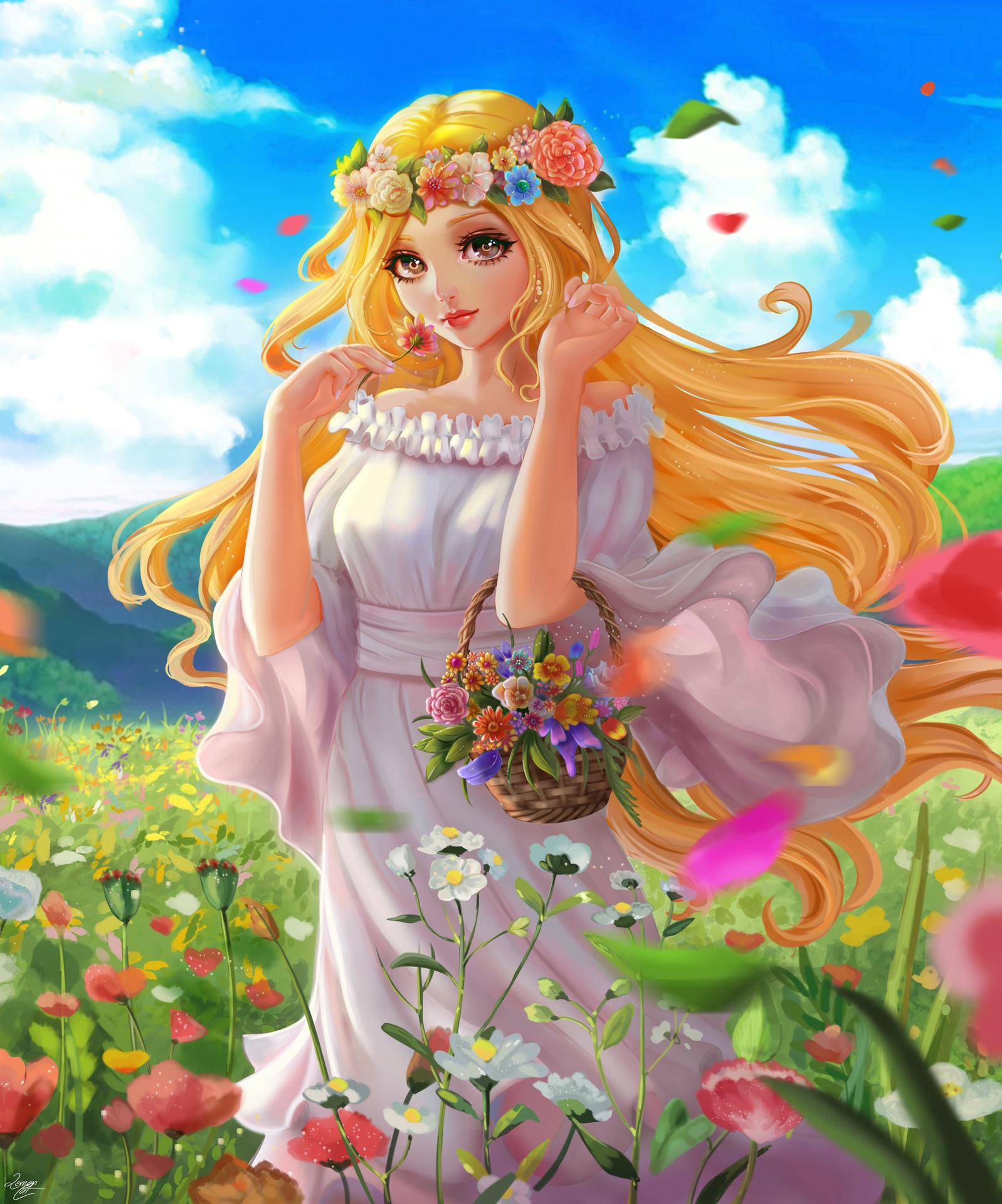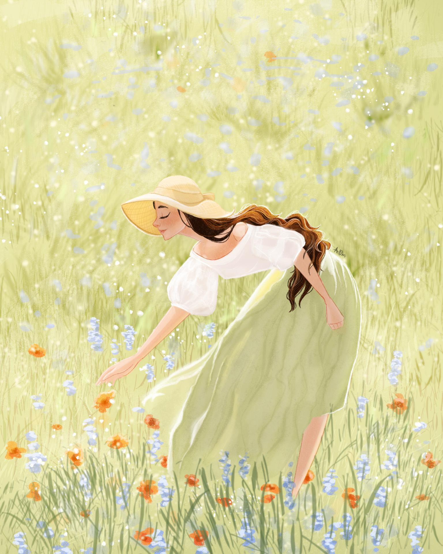 Девушка лето нарисованные