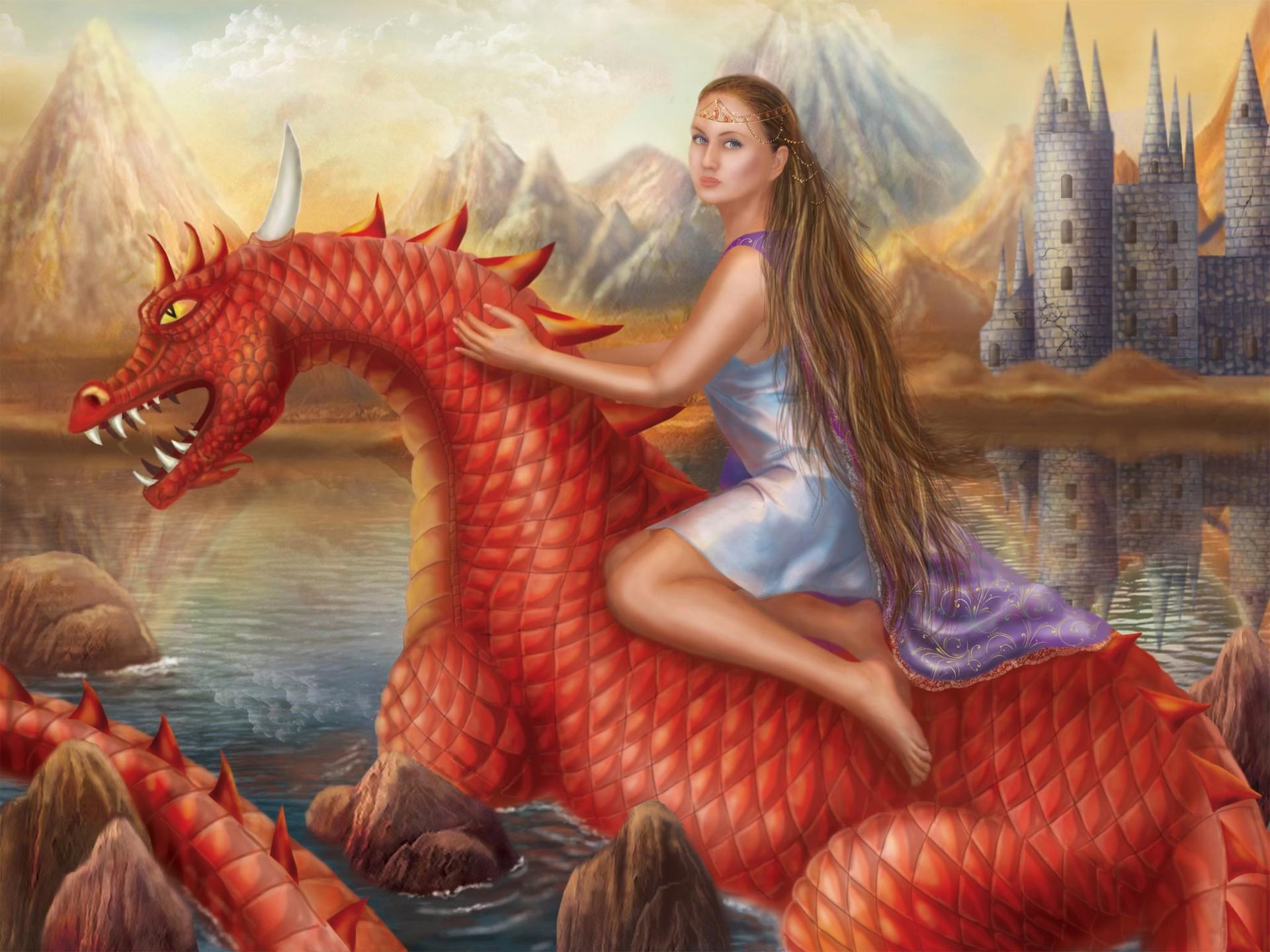 Красивые картинки Девушка на драконе с надписями