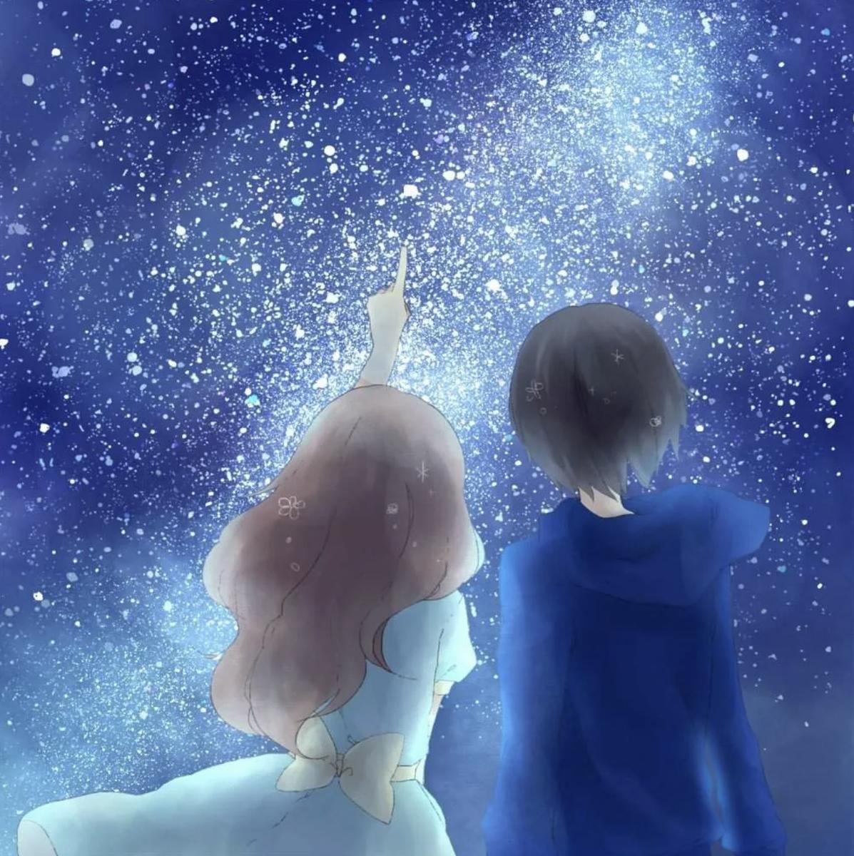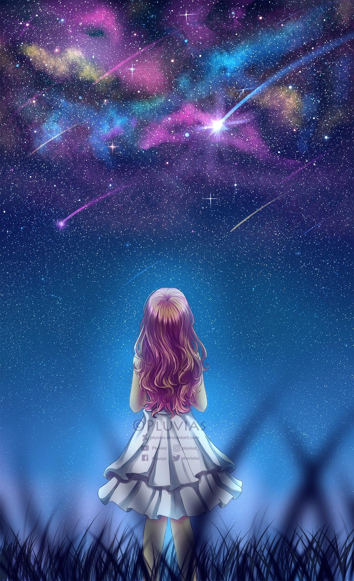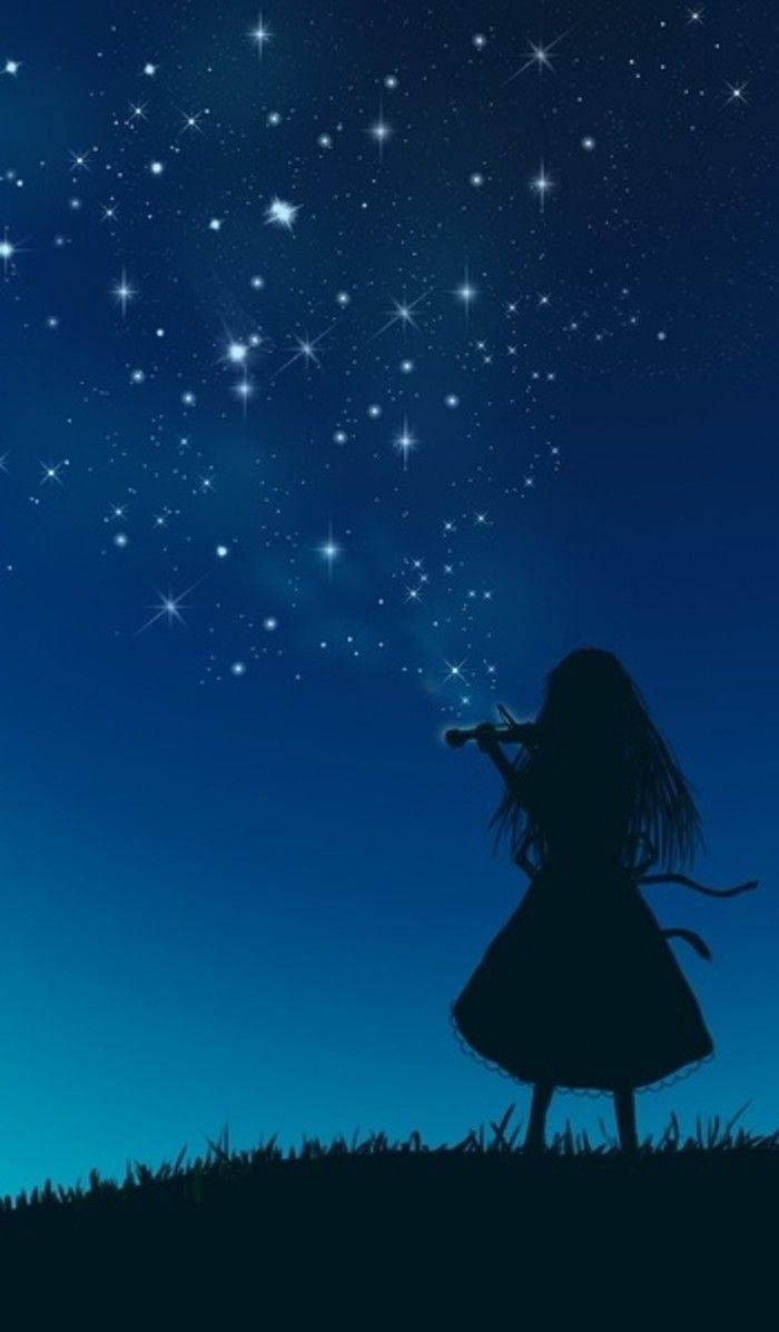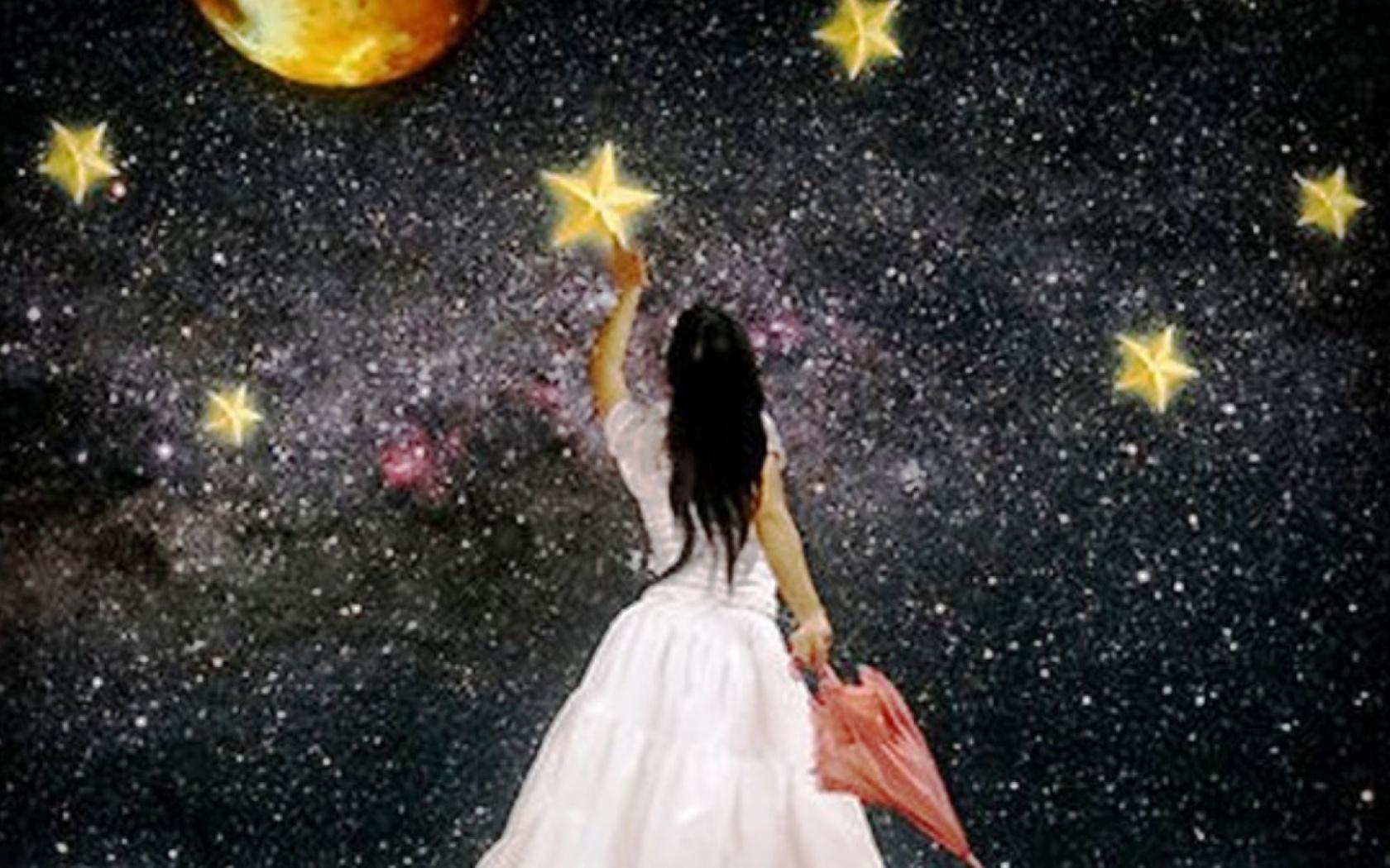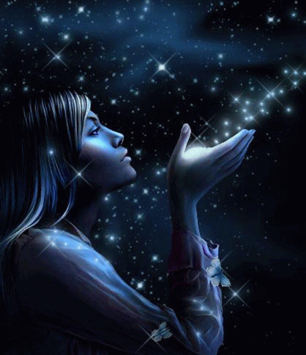 Красивые картинки Звездное небо и девушка с надписями