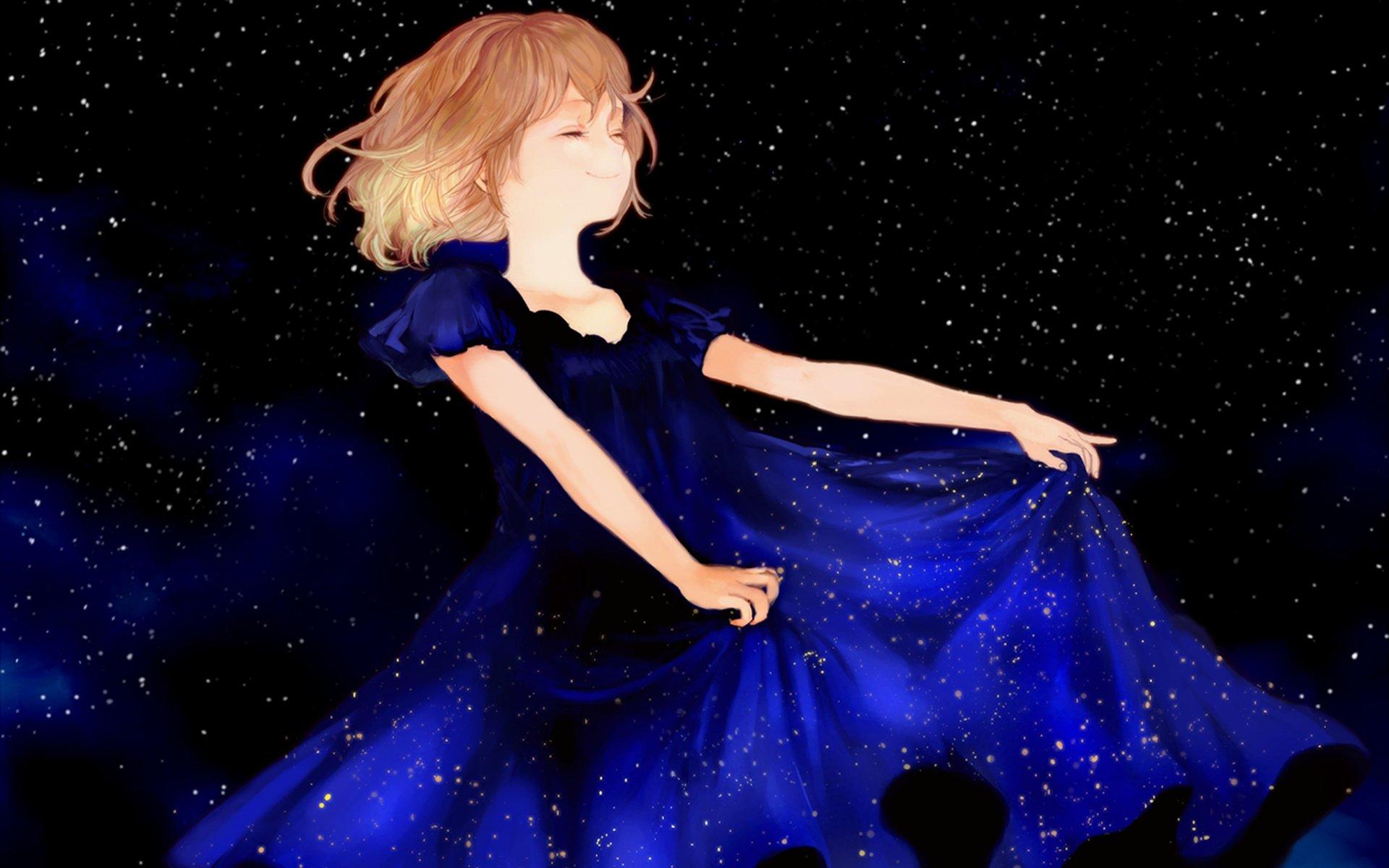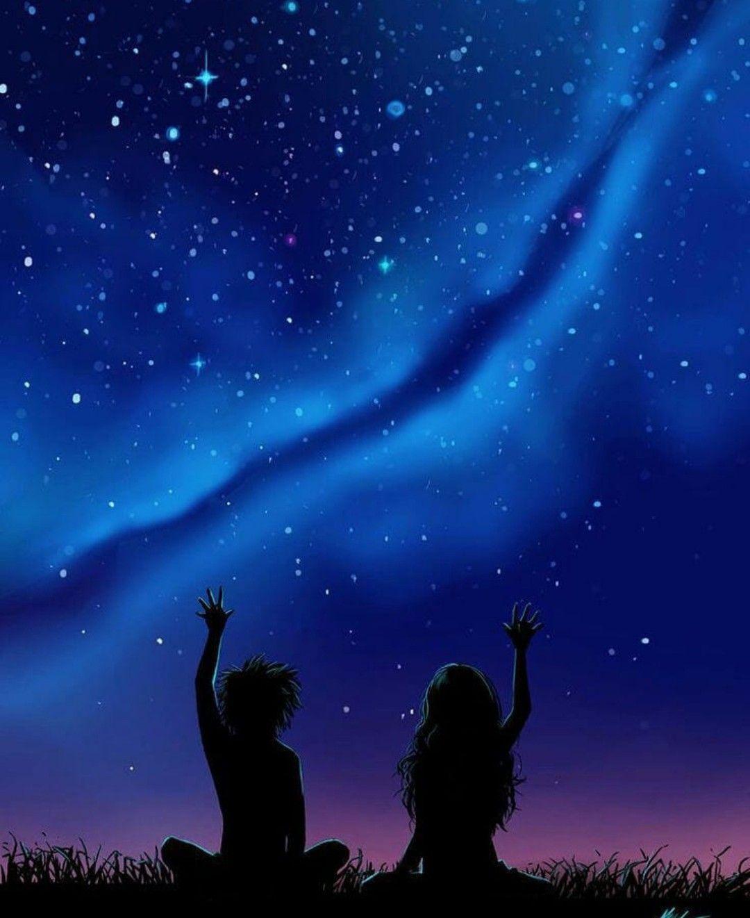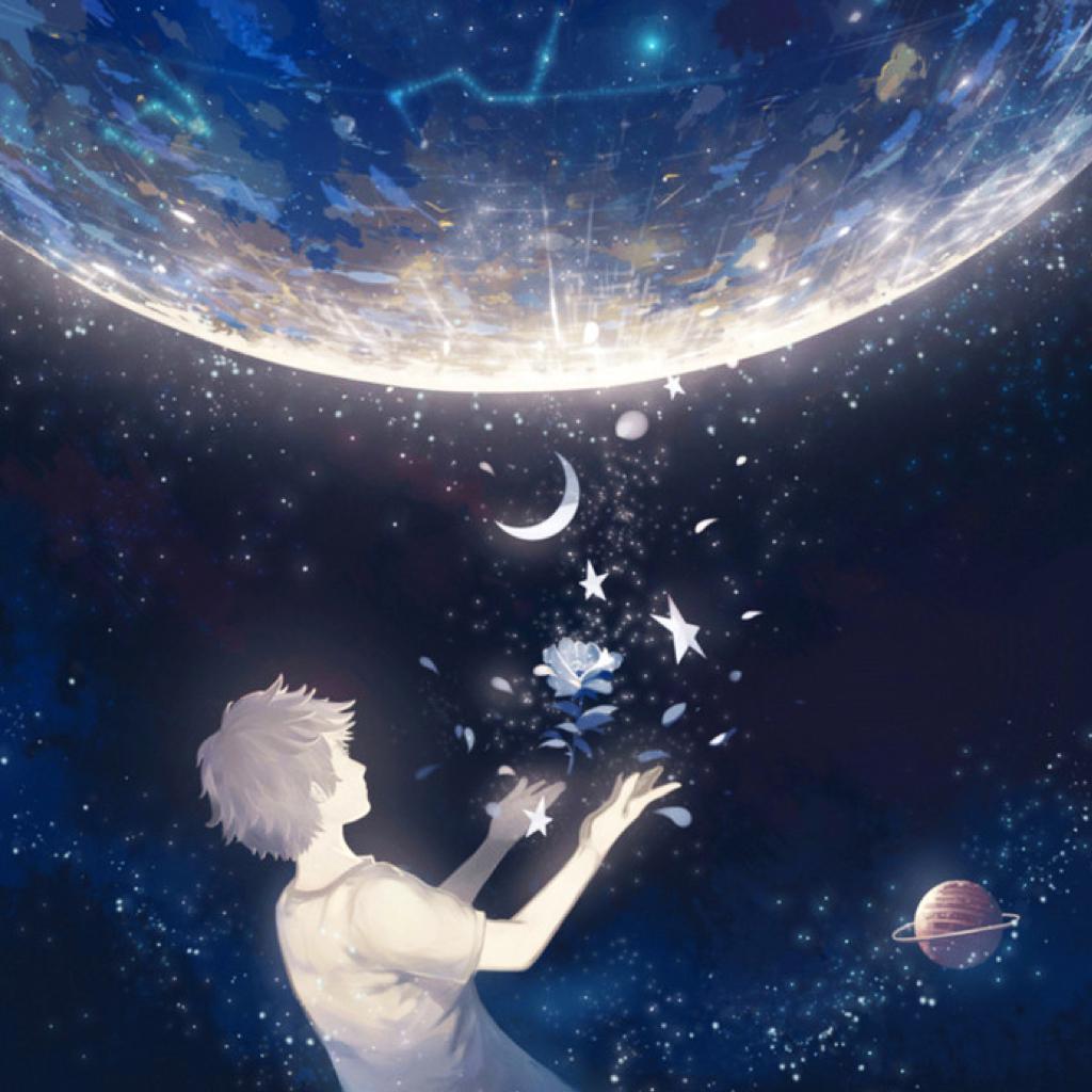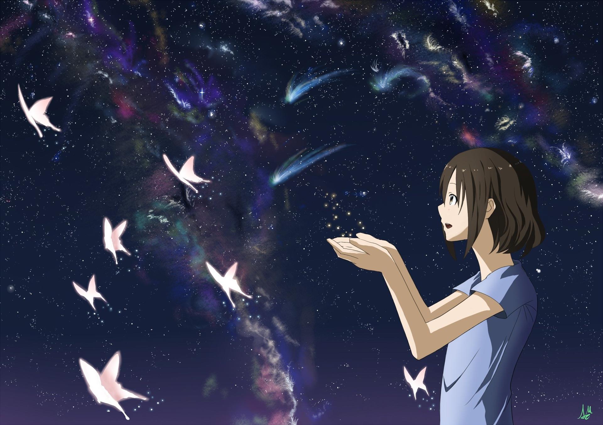 Красивые картинки Звездное небо и девушка с надписями