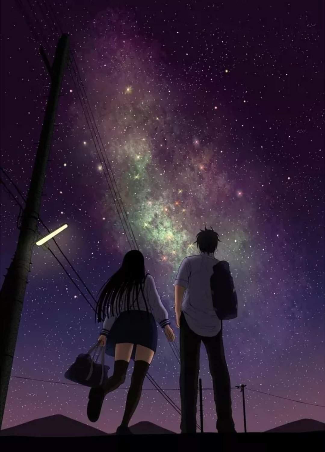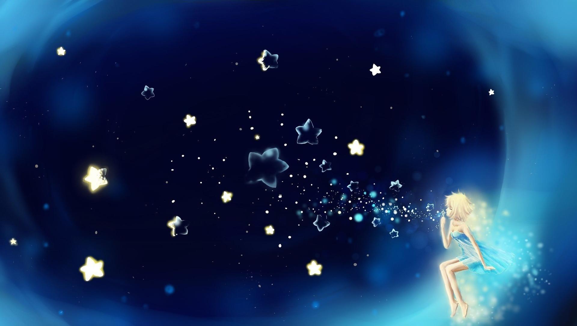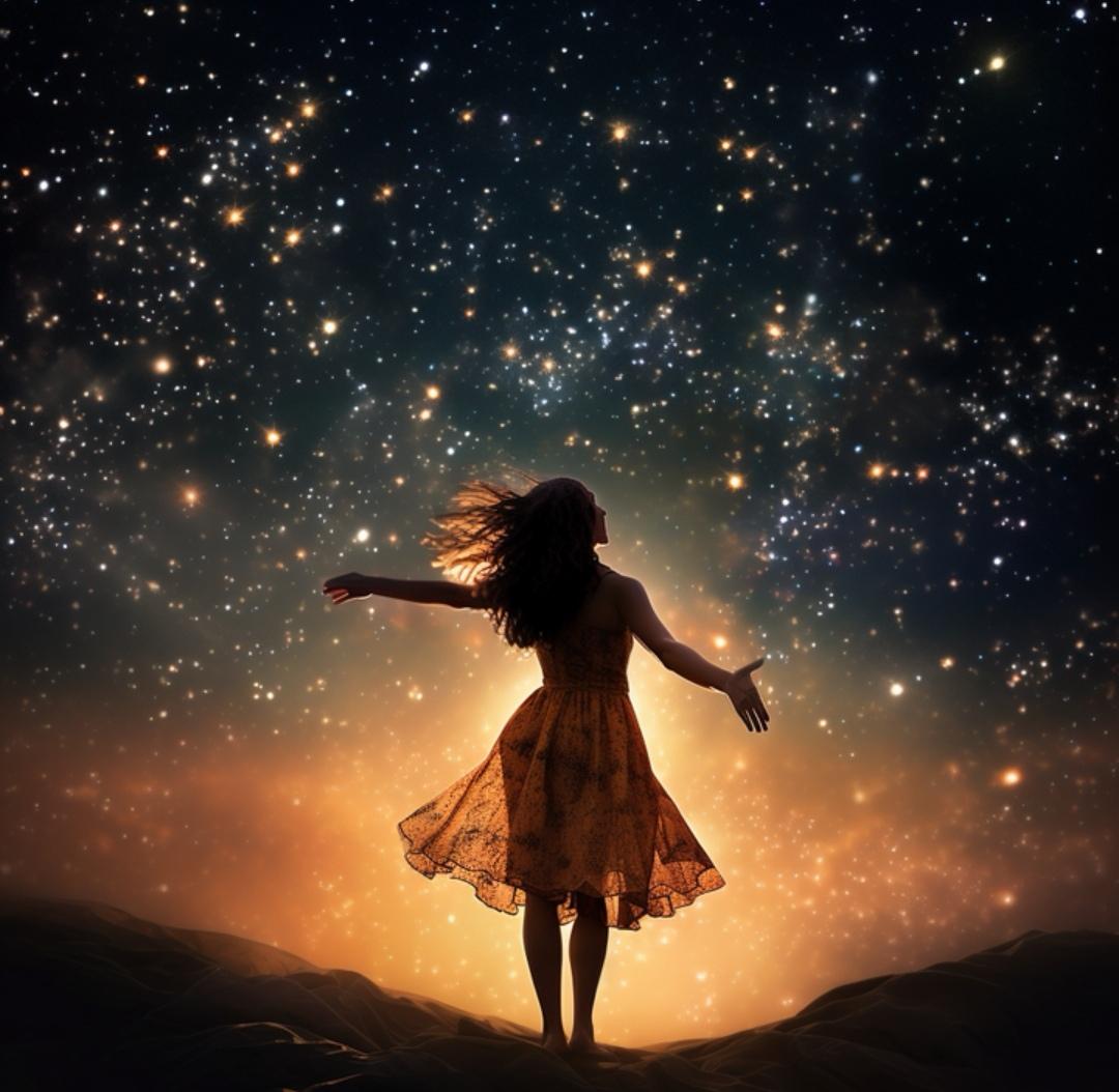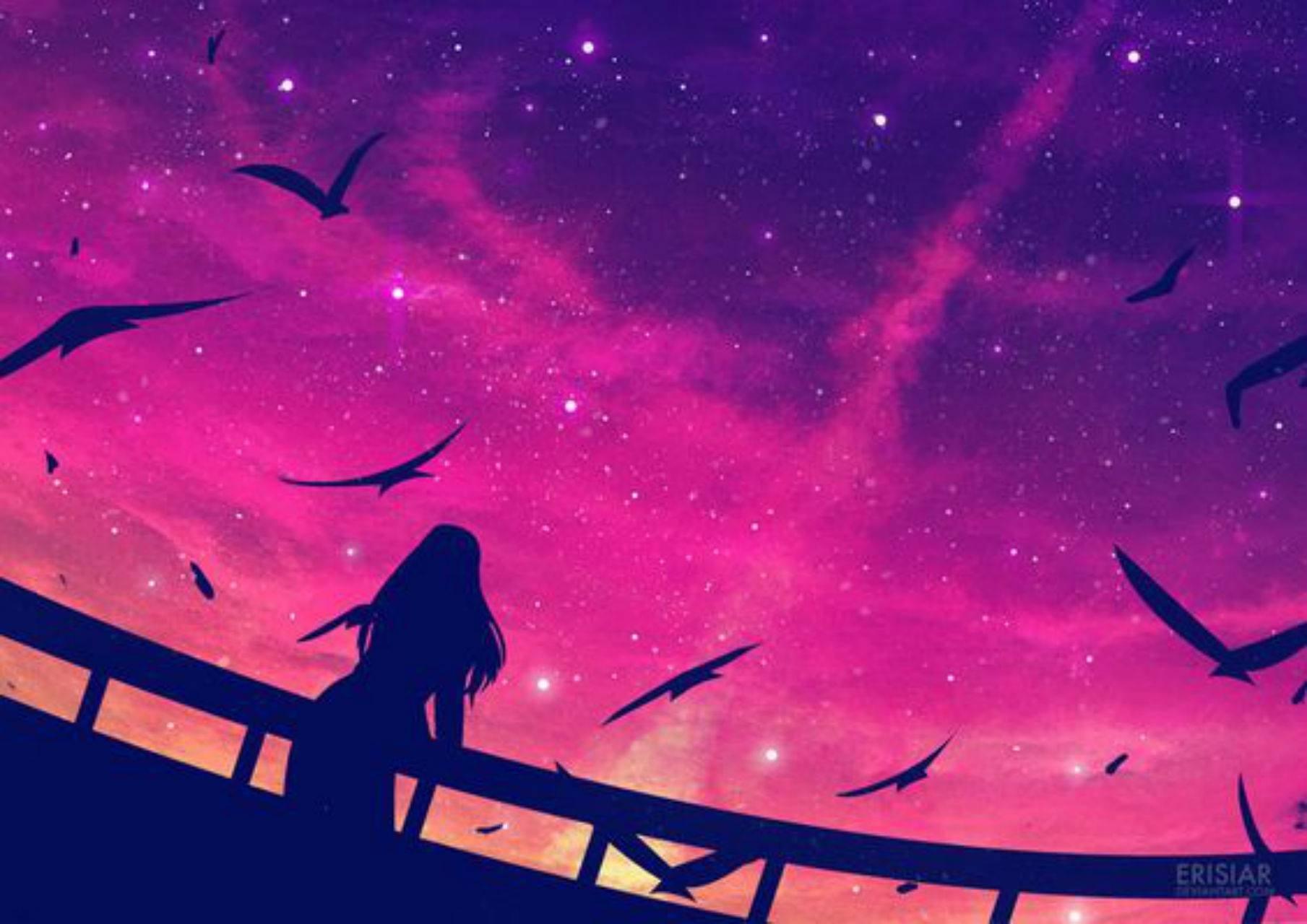 Красивые картинки Звездное небо и девушка с надписями