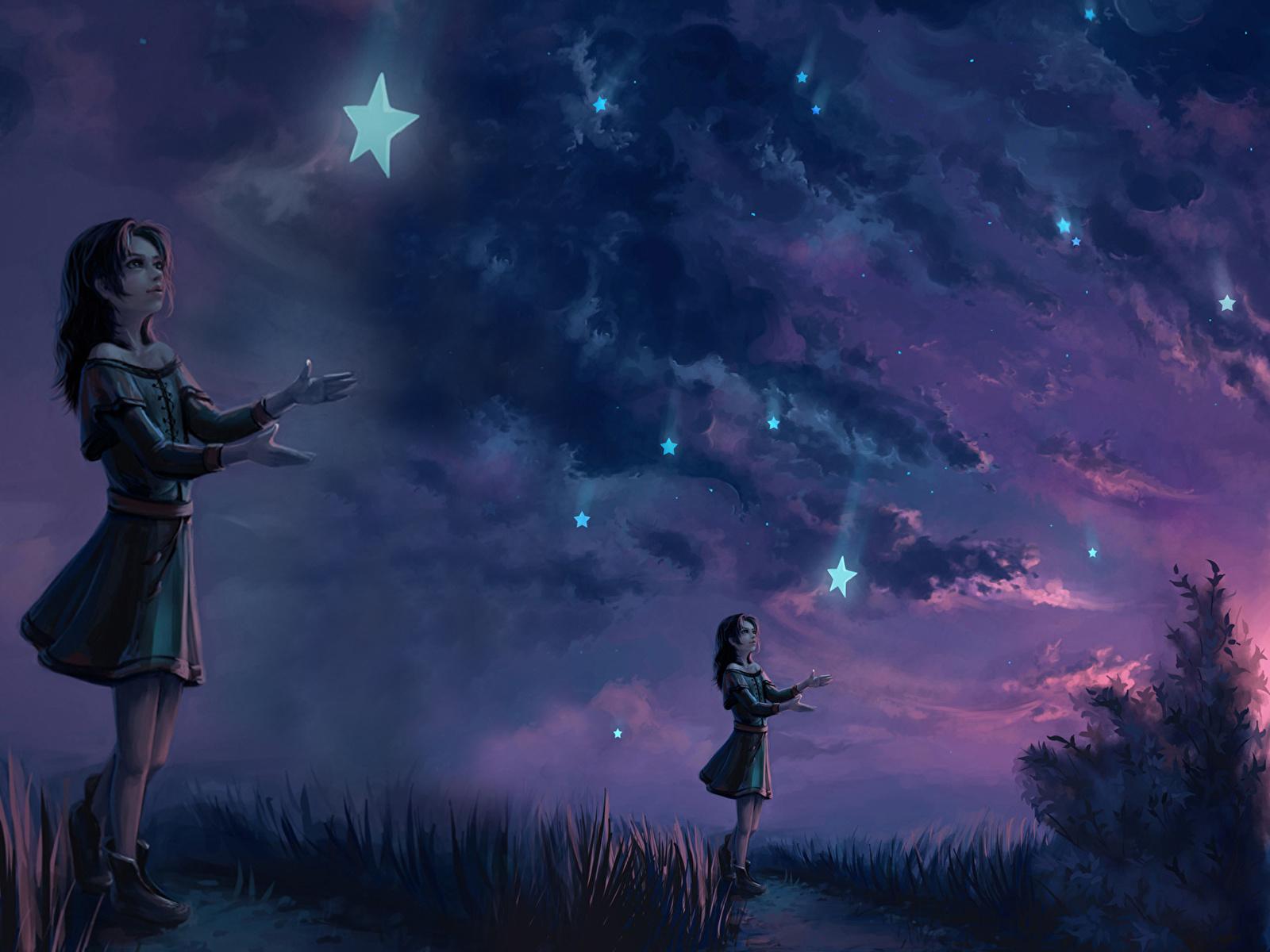 Звездное небо и девушка