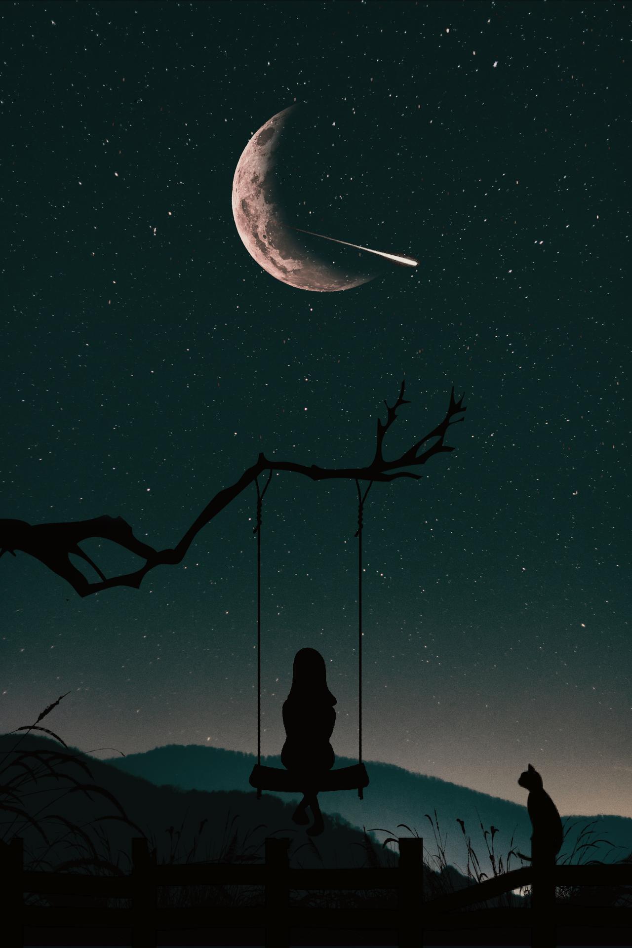 Красивые картинки Девушка ночь с надписями