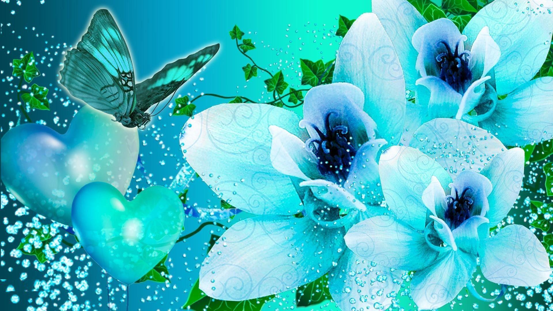 цветы на голубом фоне