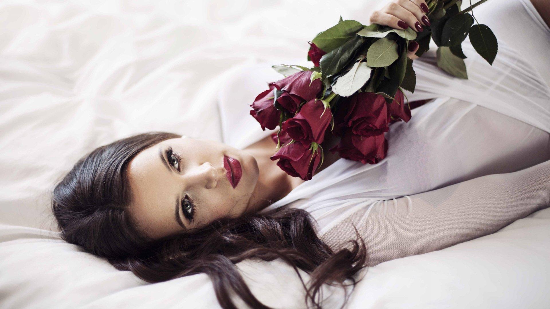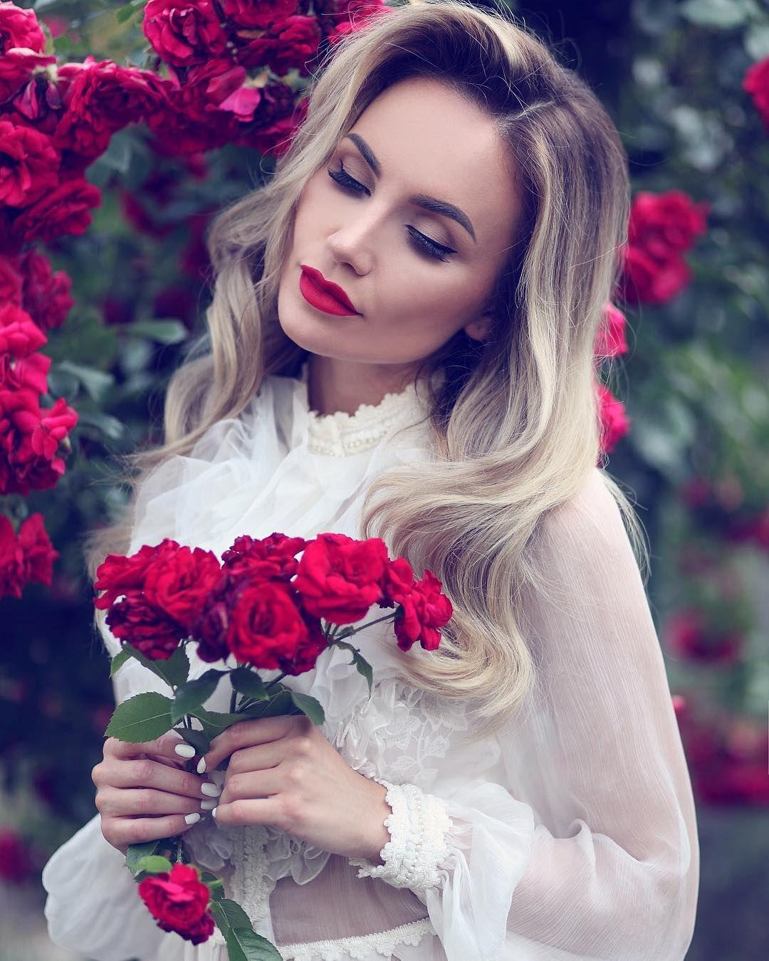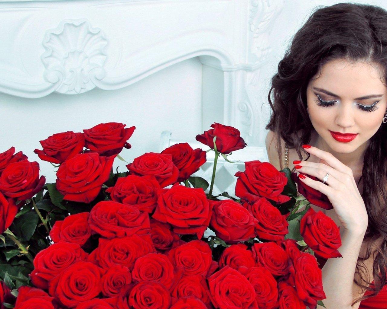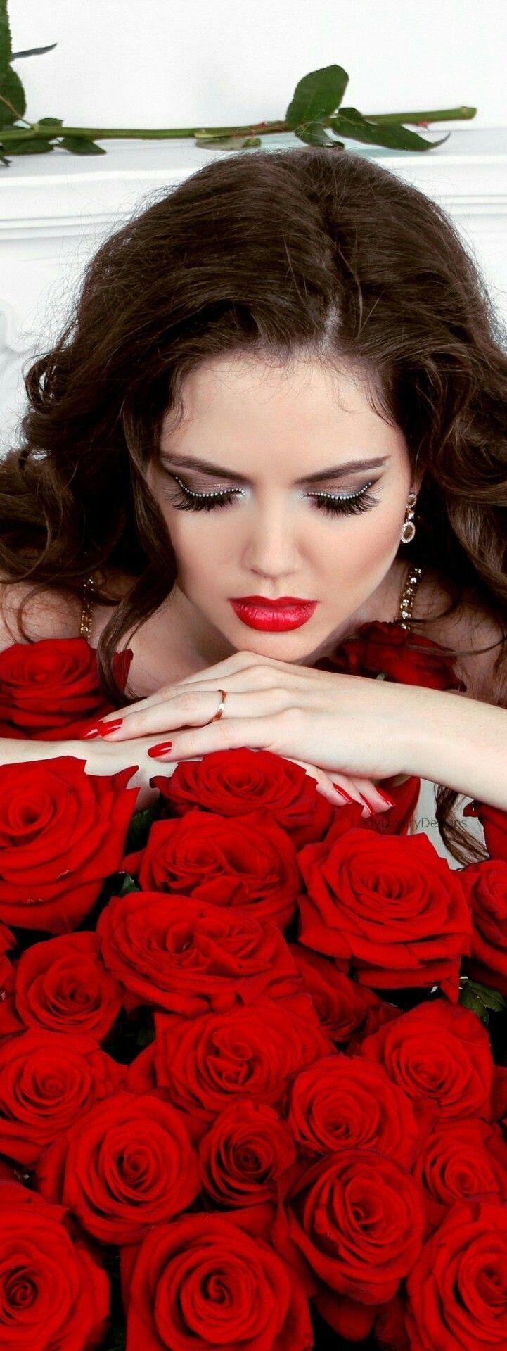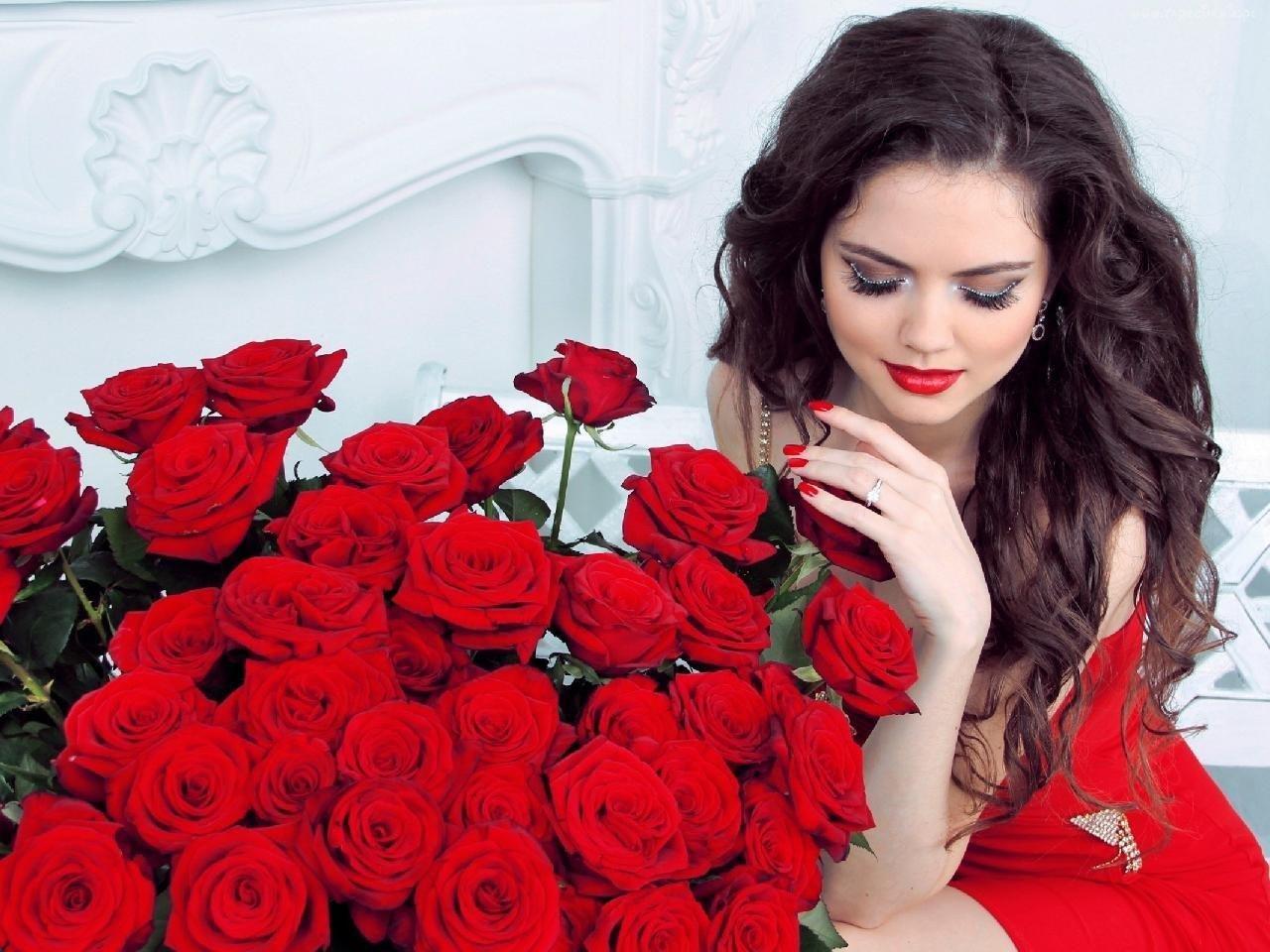 Красивые картинки Девушка и розы с надписями