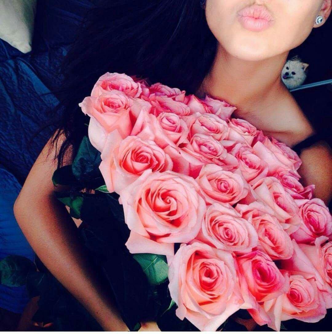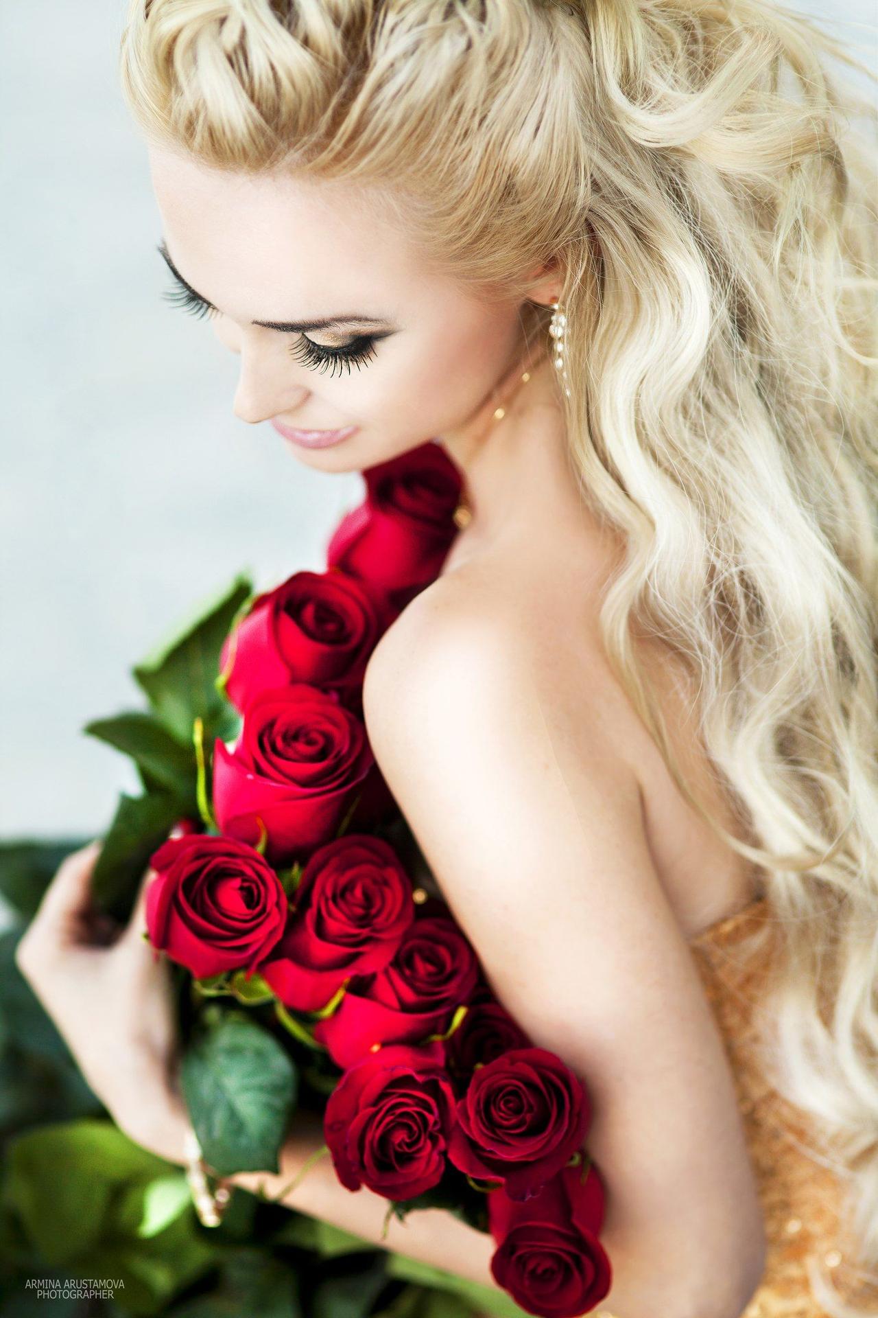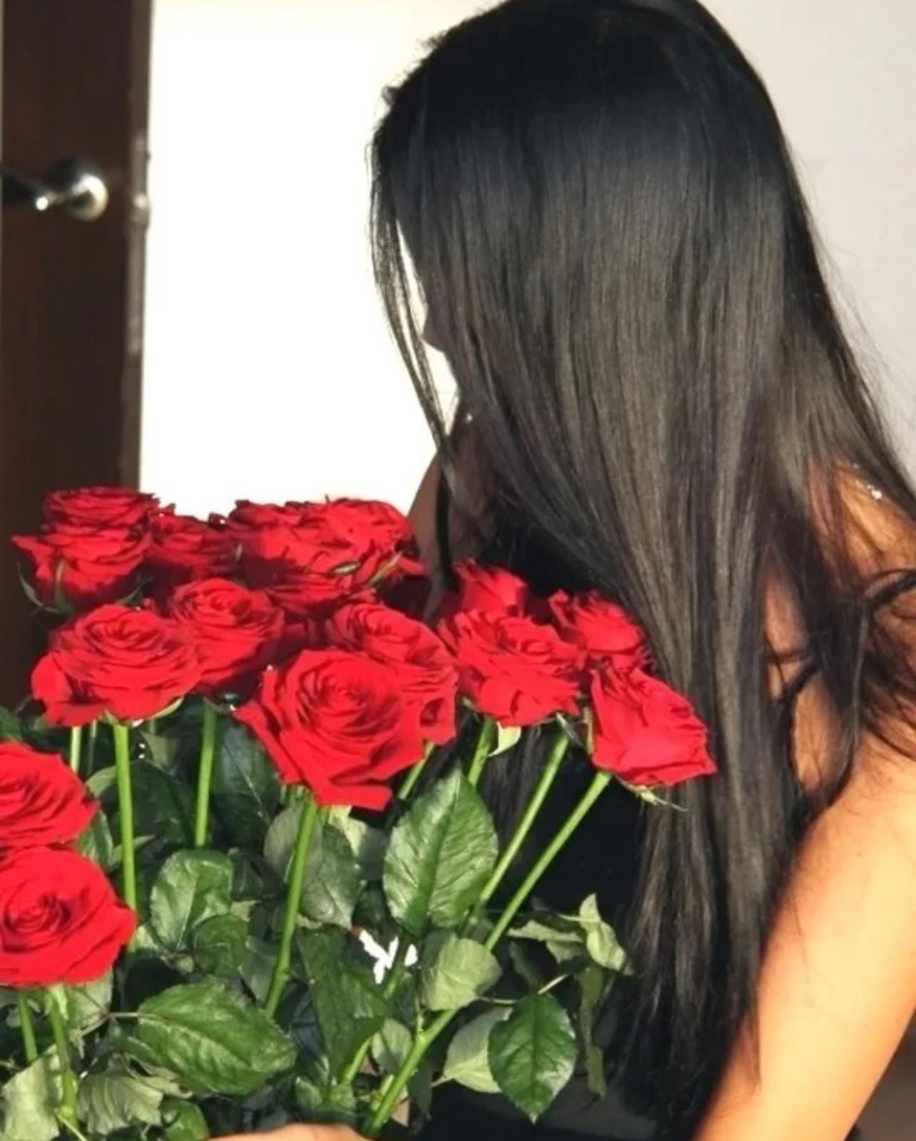 брюнетка с букетом роз