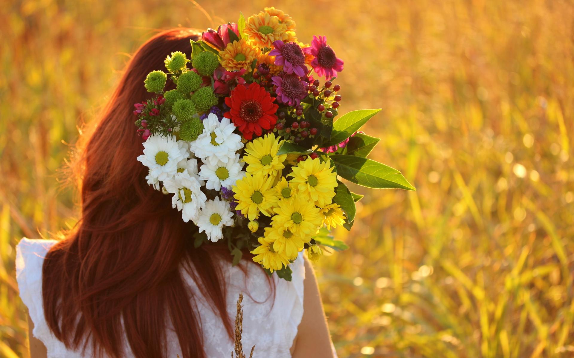 цветы девушка