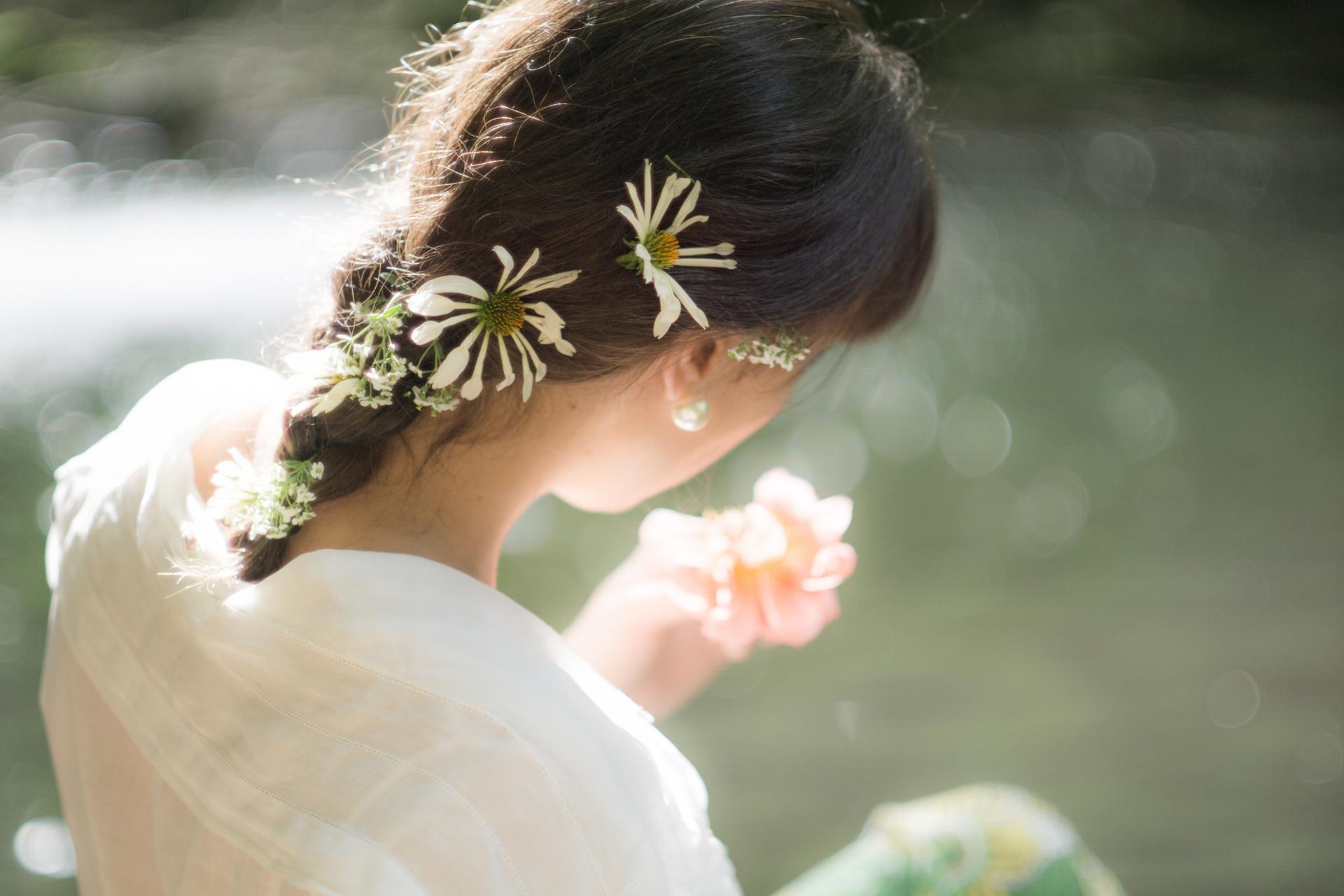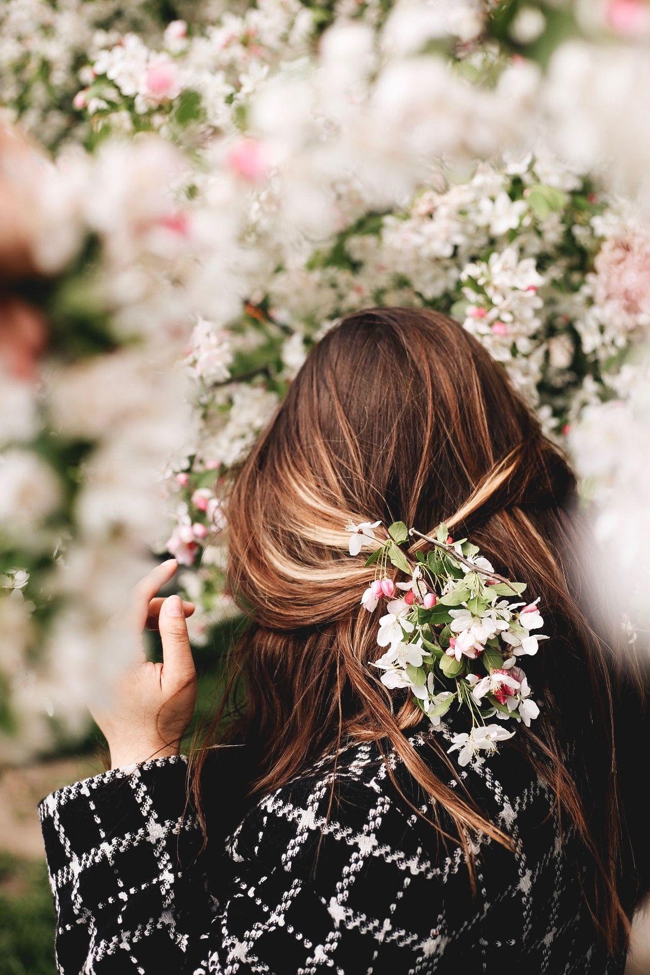 брюнетка с цветами