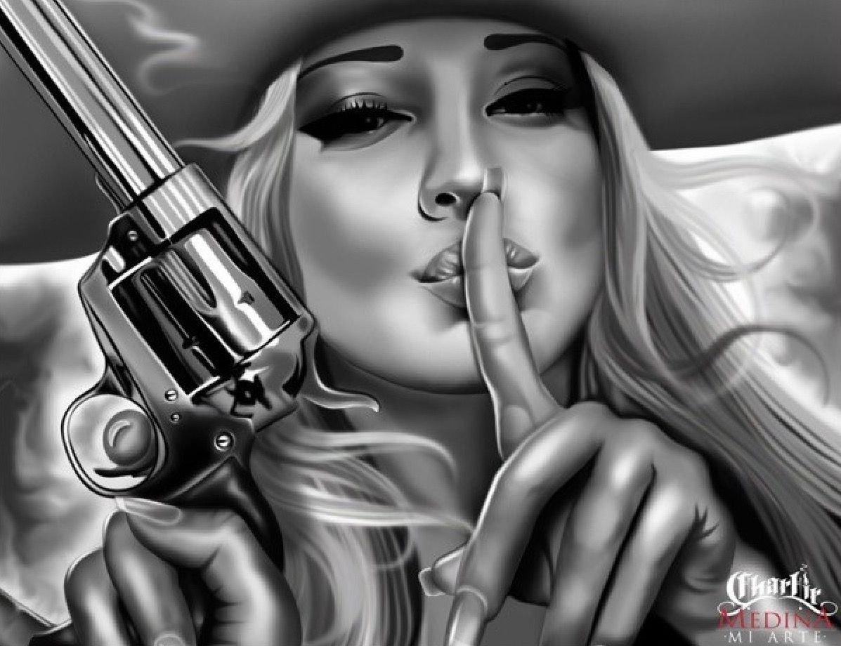 Красивые картинки Девушка с пистолетом с надписями