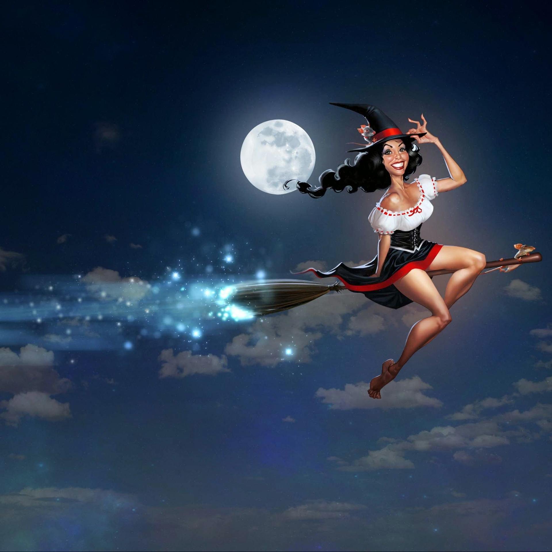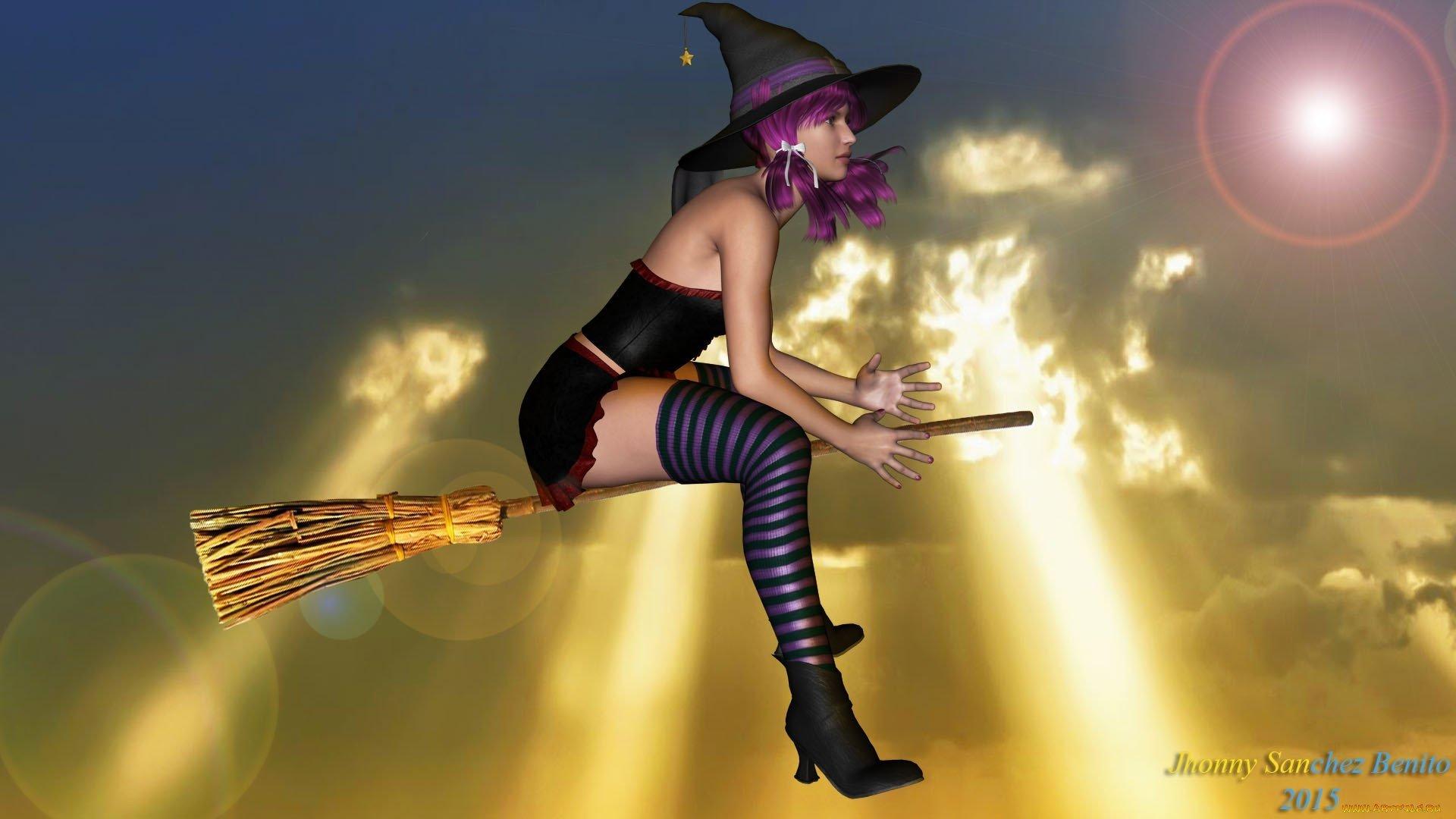 Красивые картинки Девушка на метле с надписями