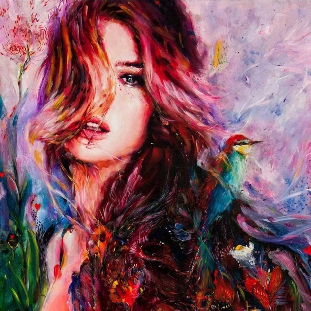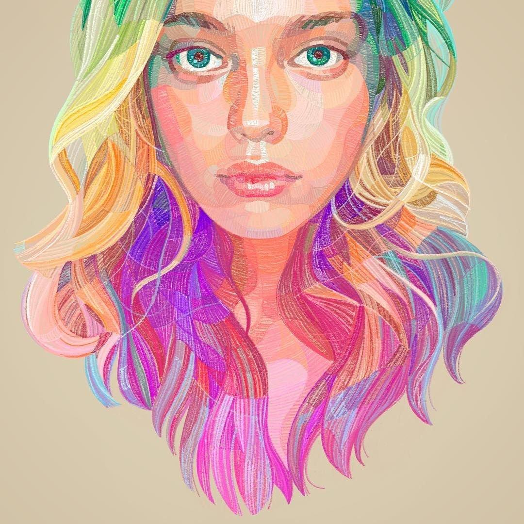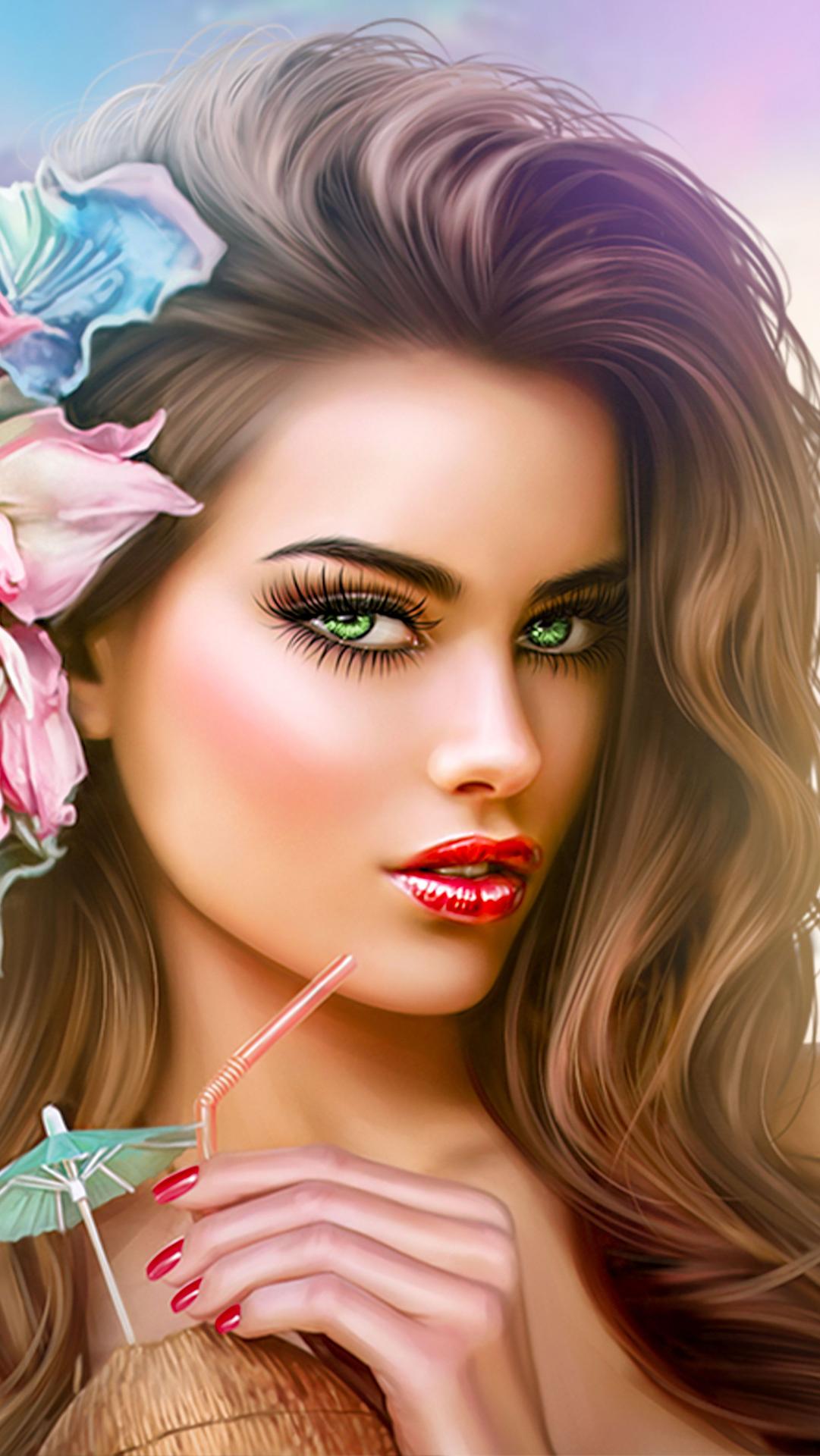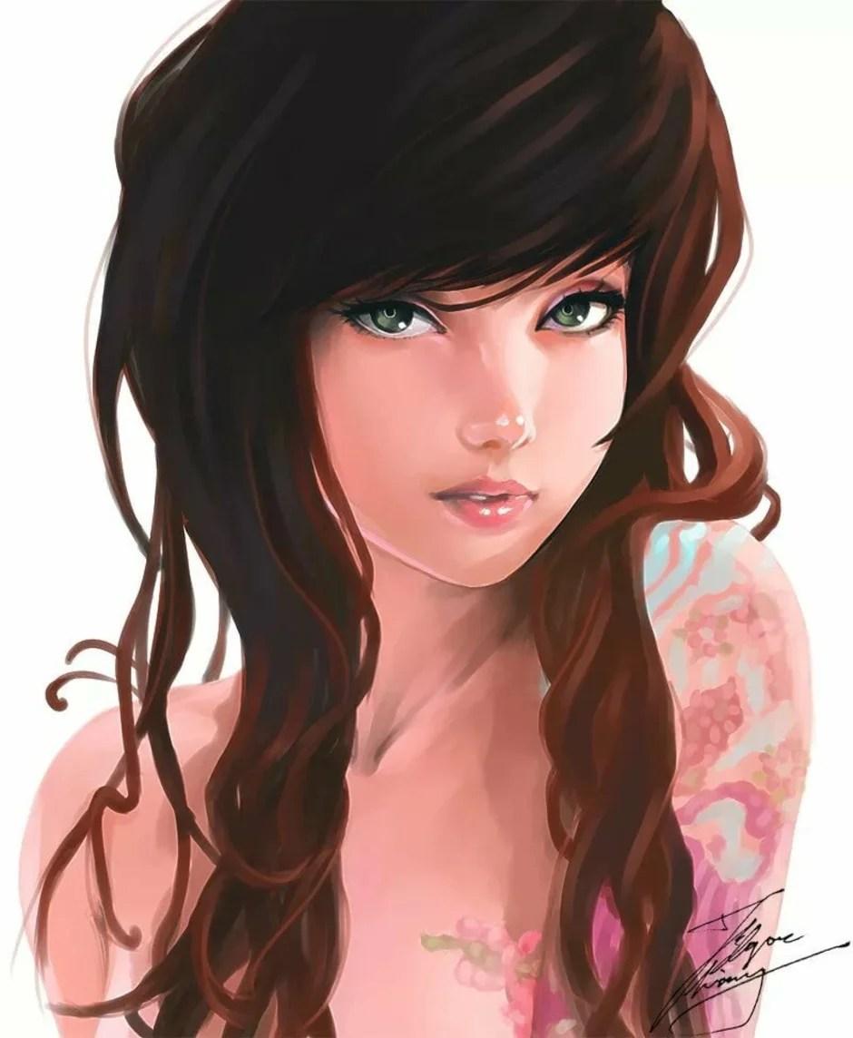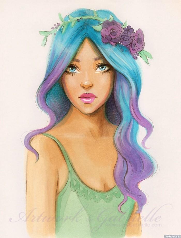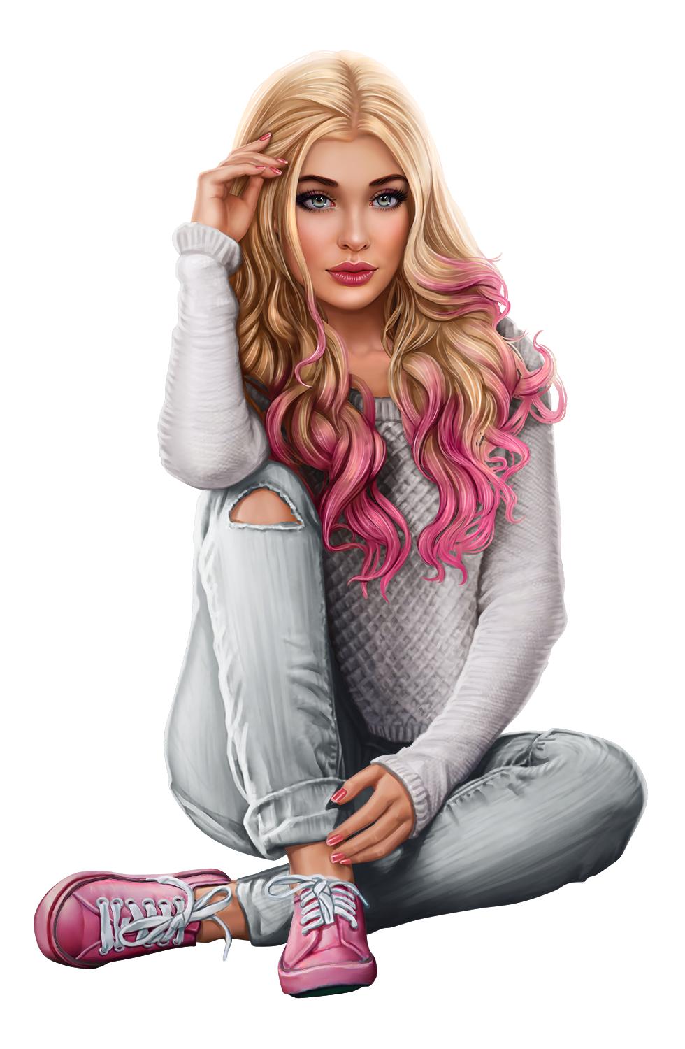 С девушками нарисованные цветные