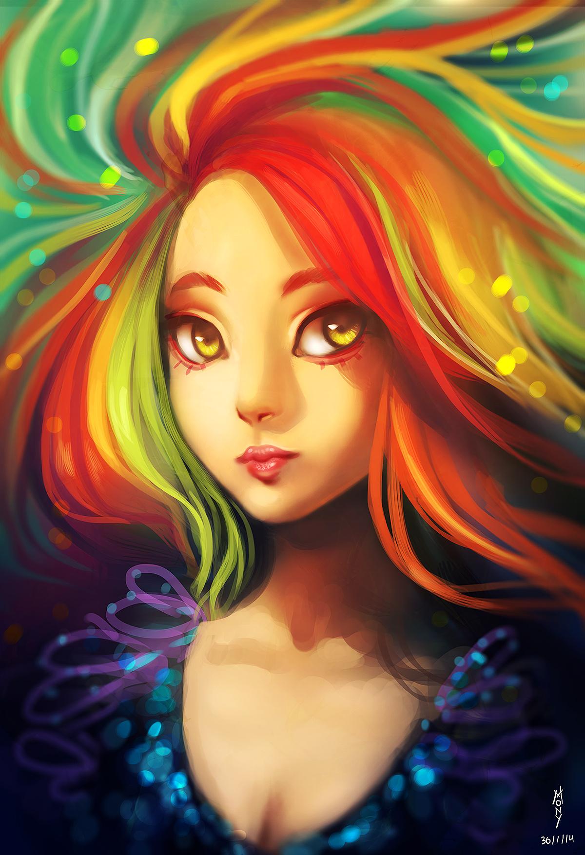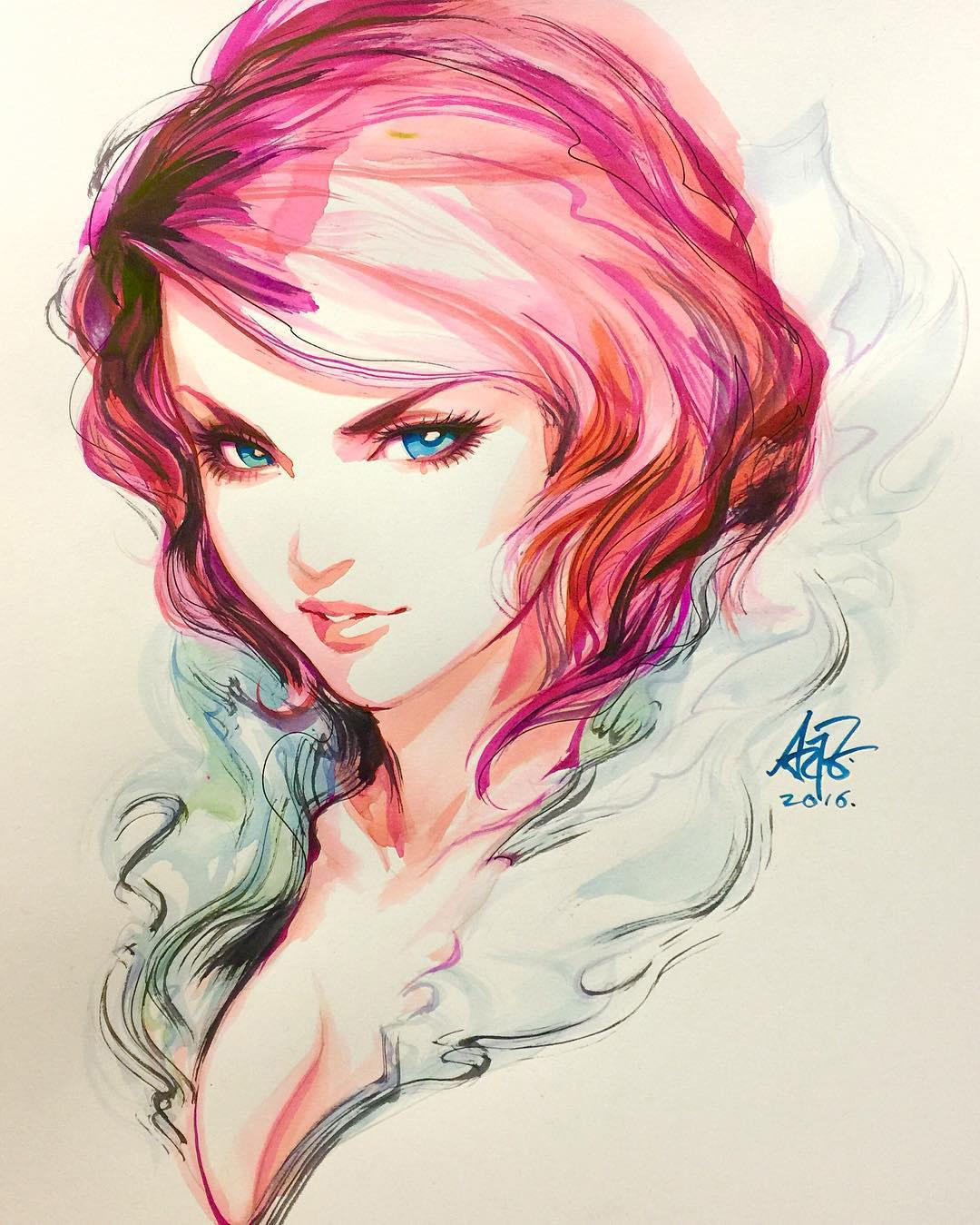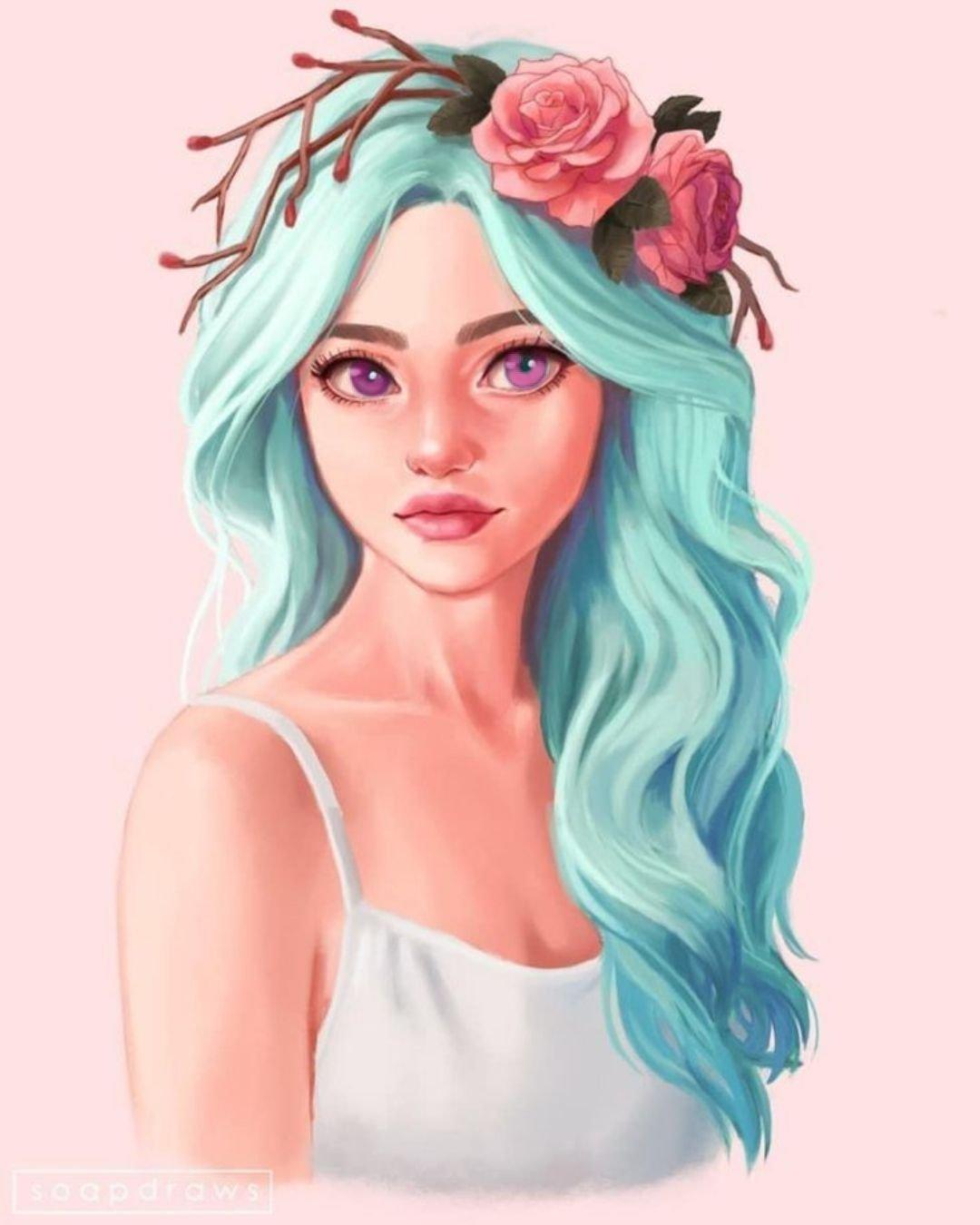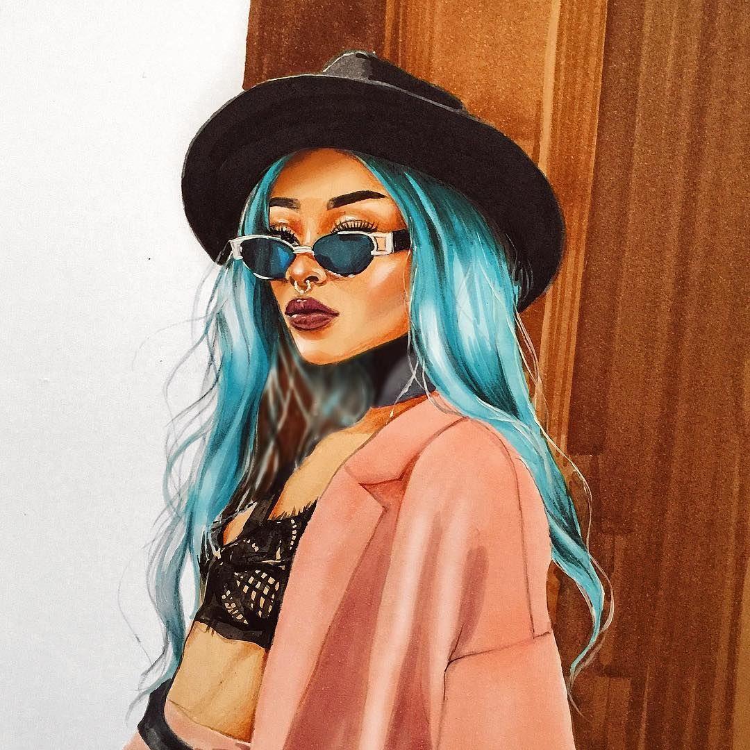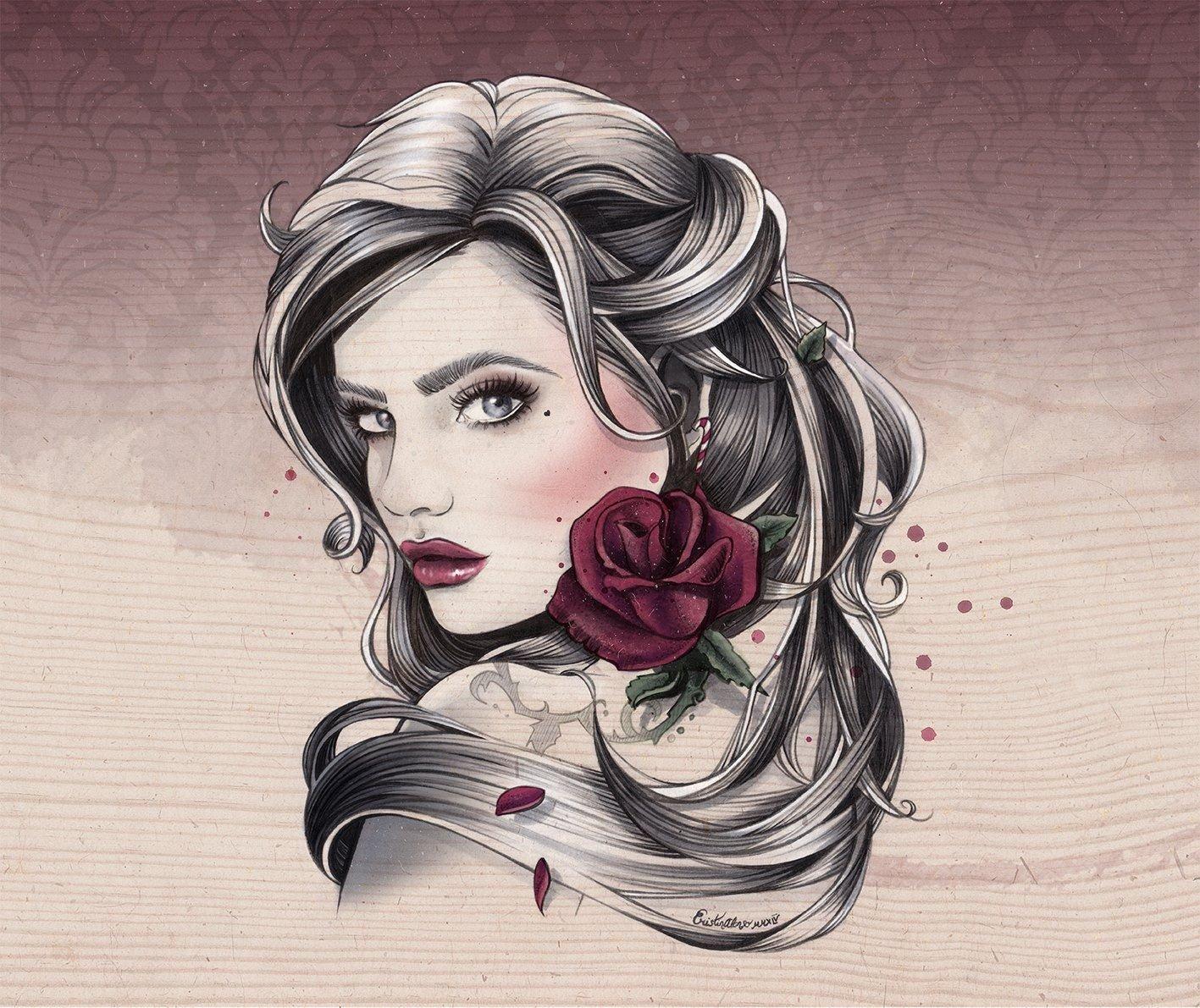 С девушками нарисованные цветные