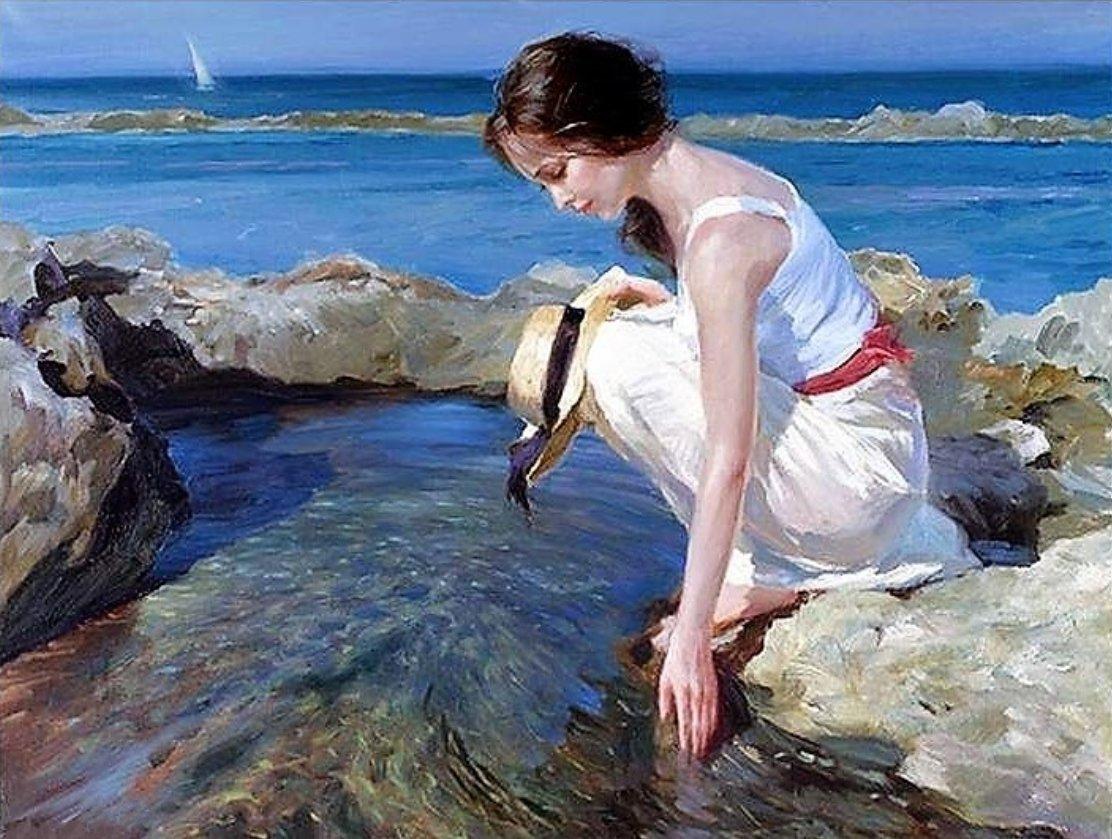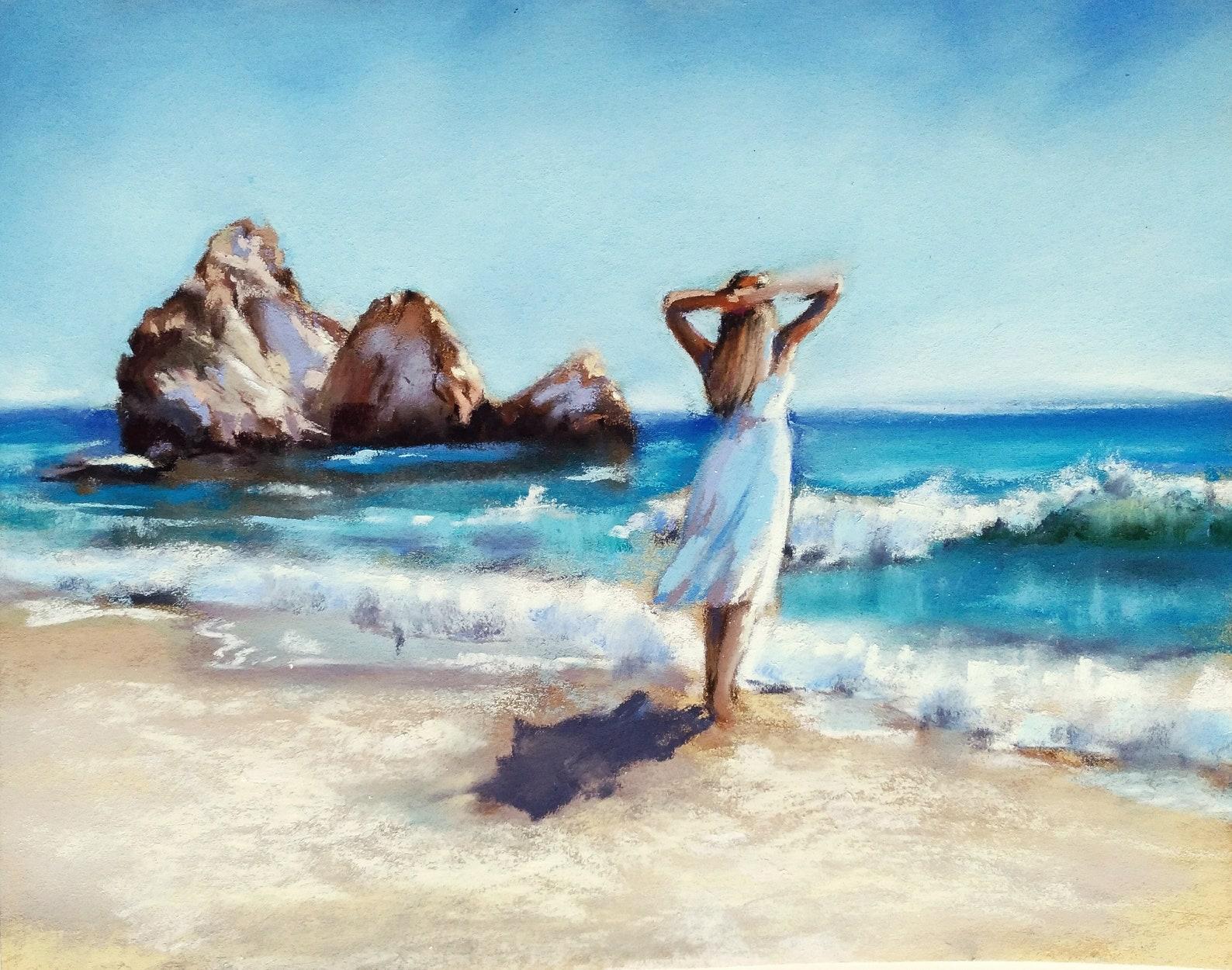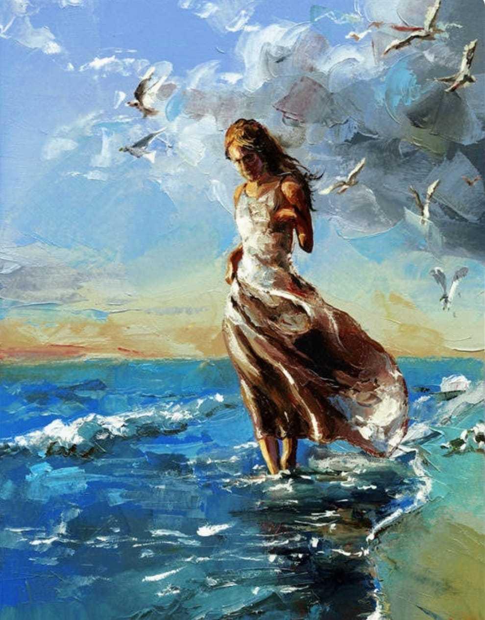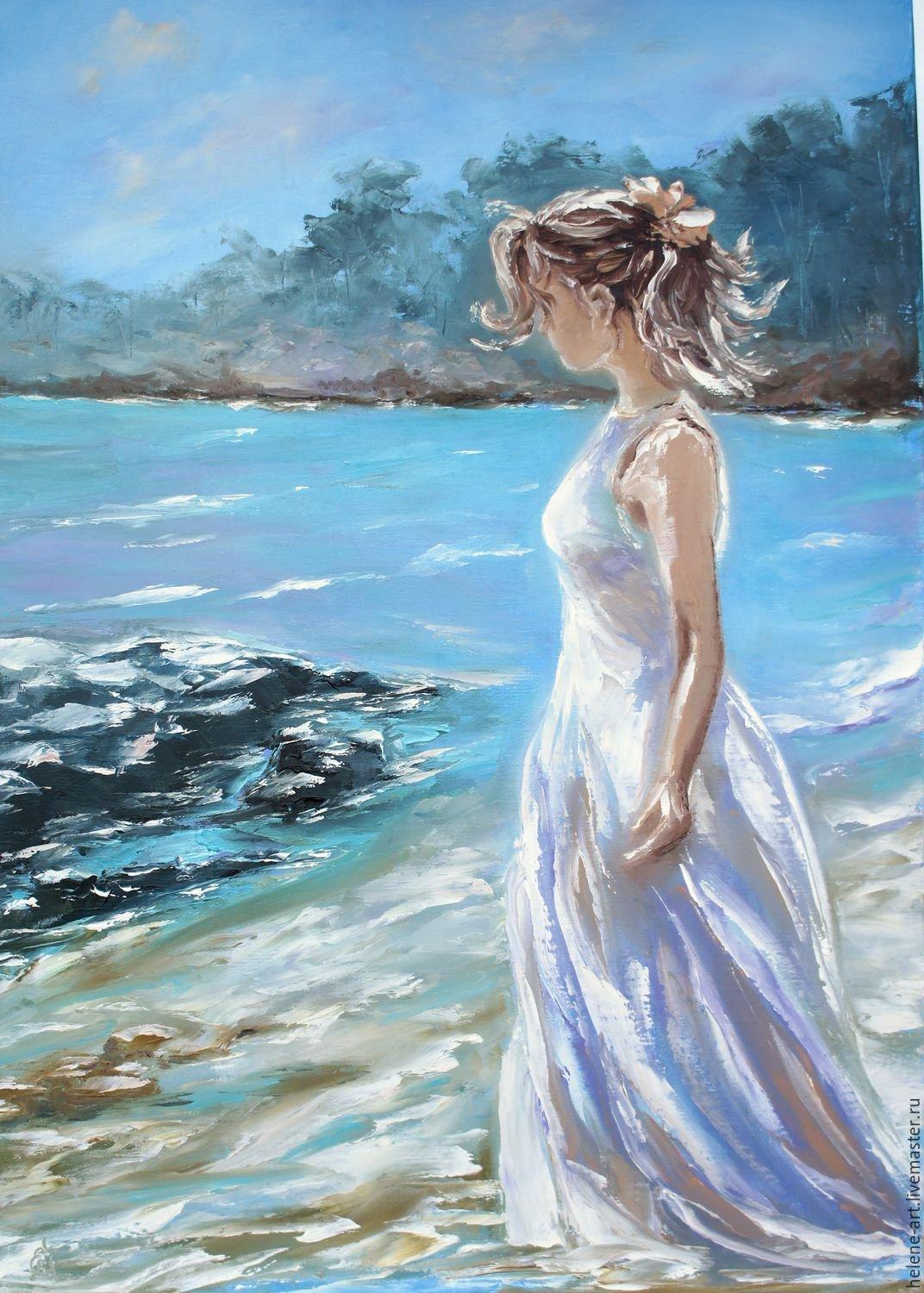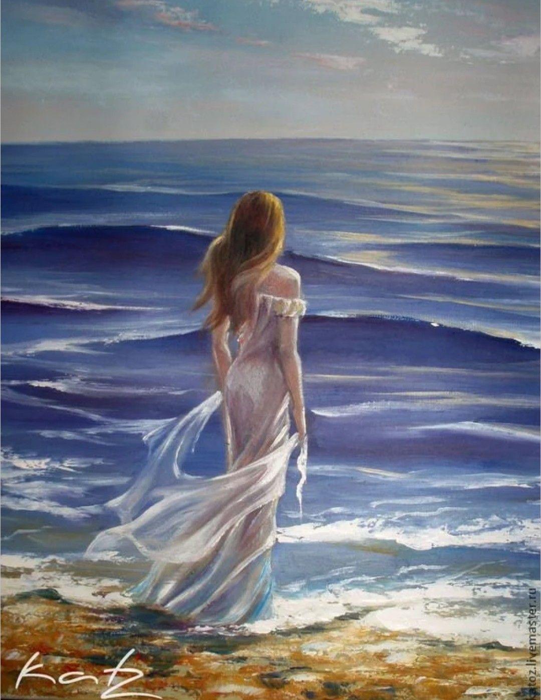 Девушка на берегу моря нарисованные