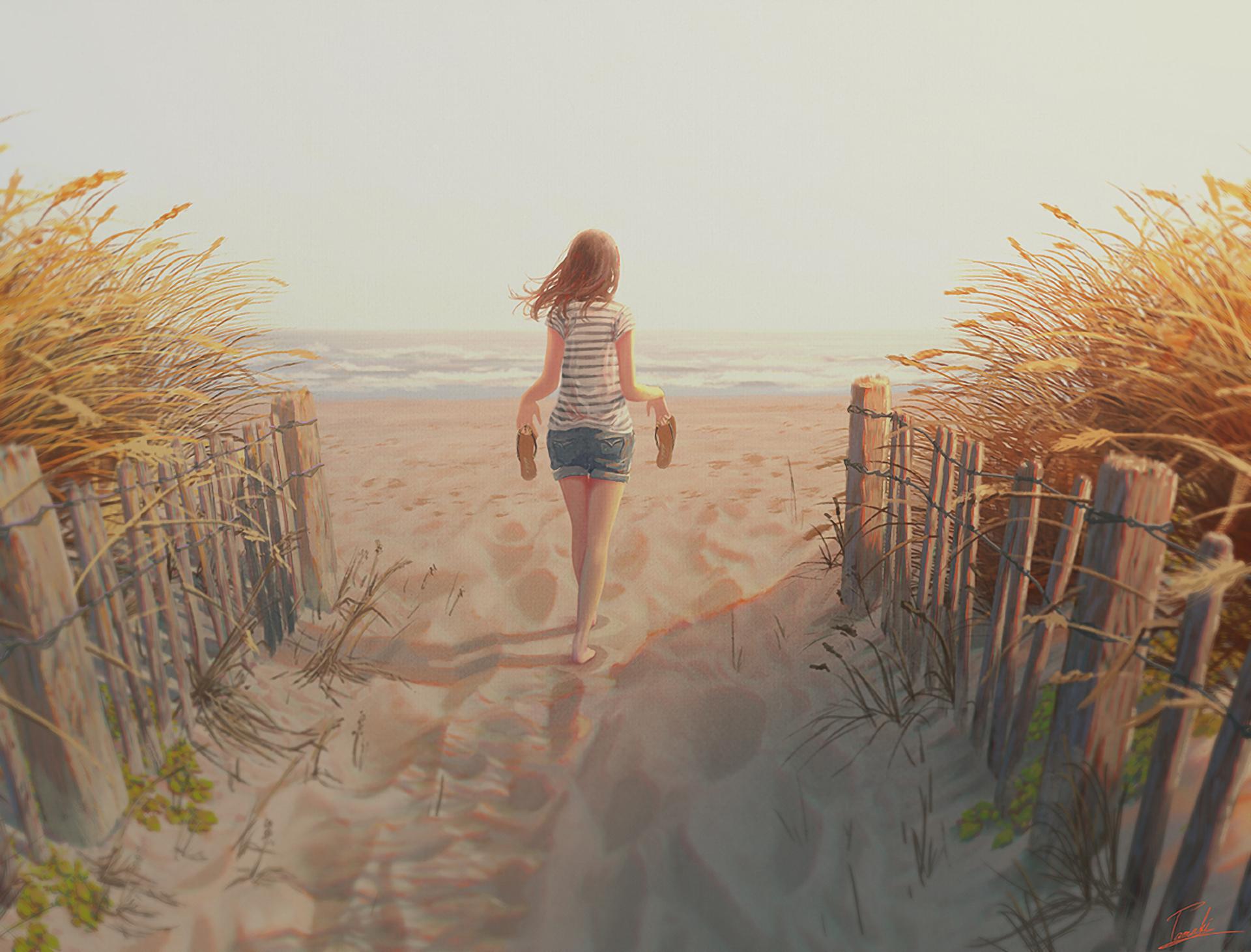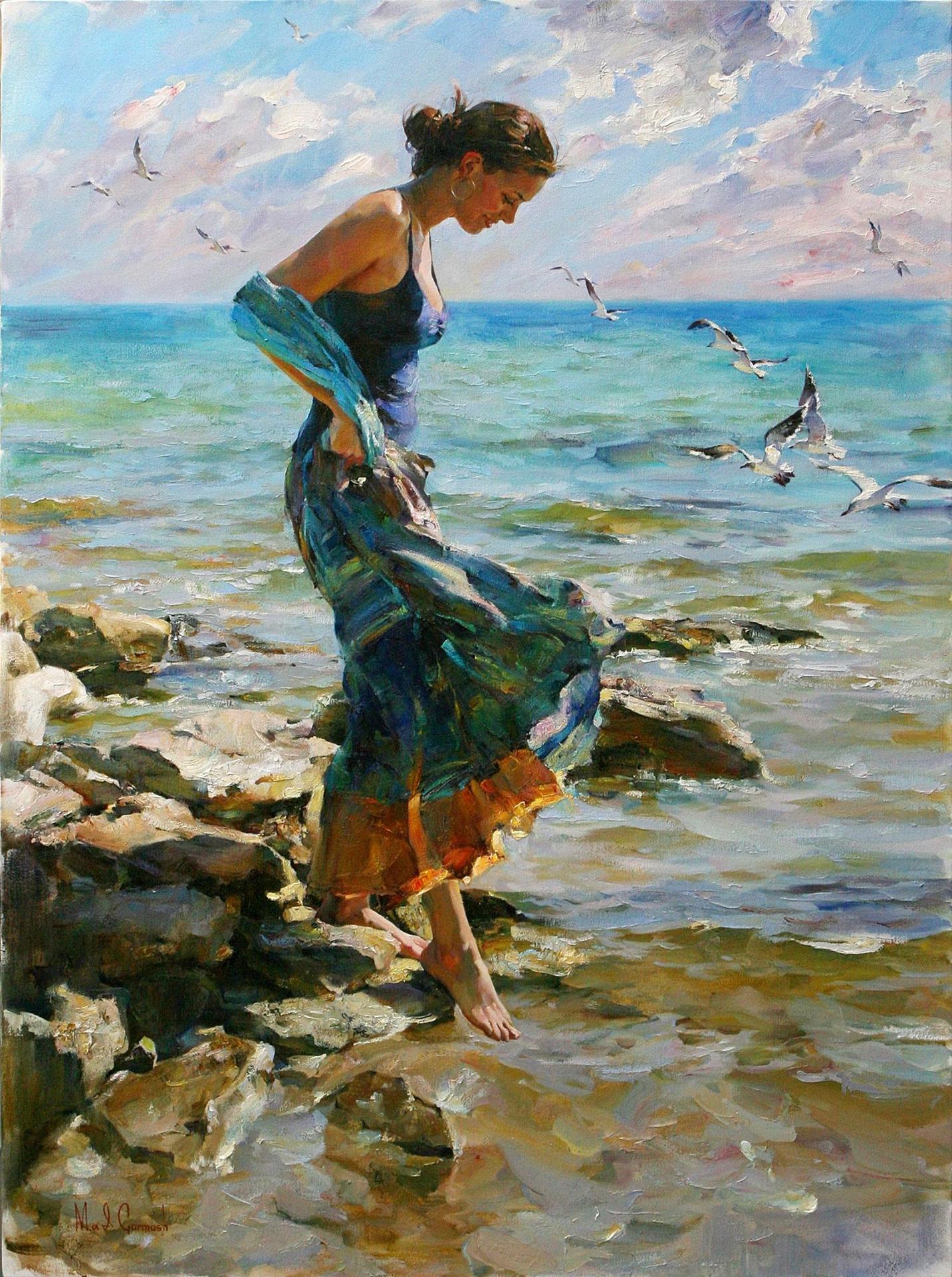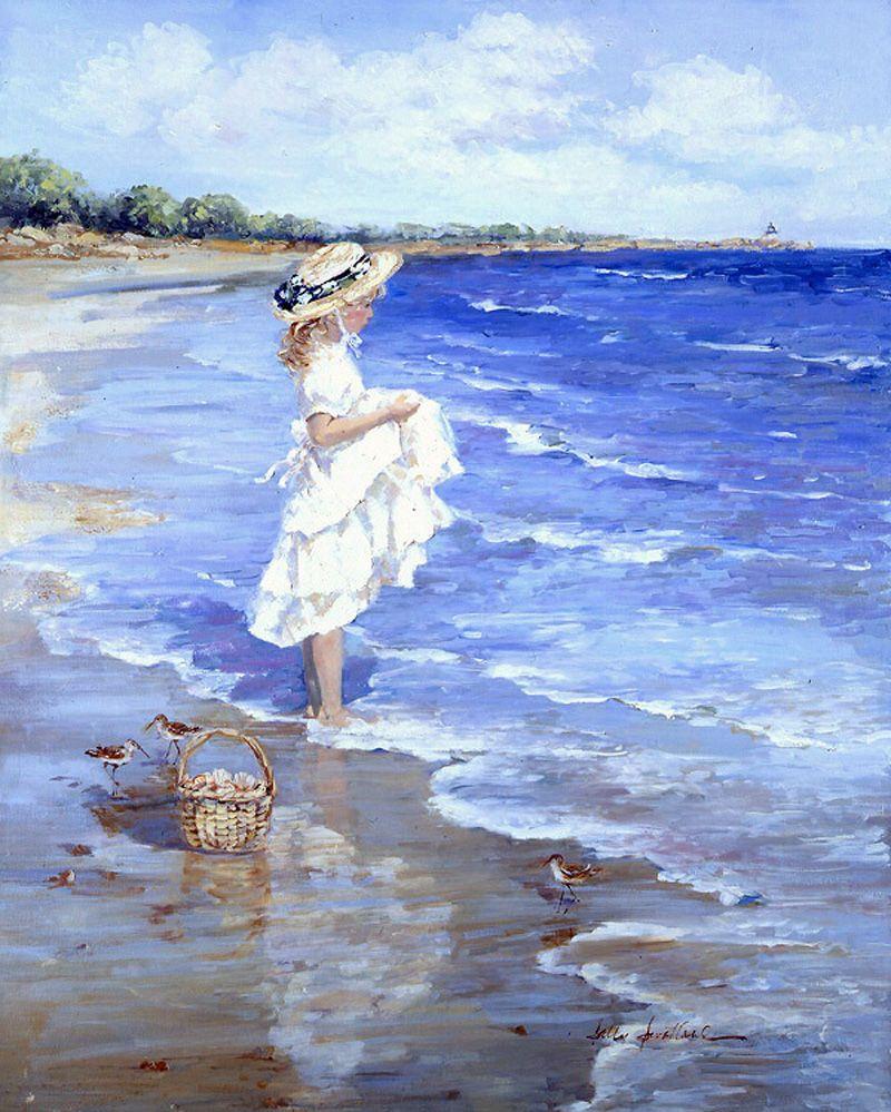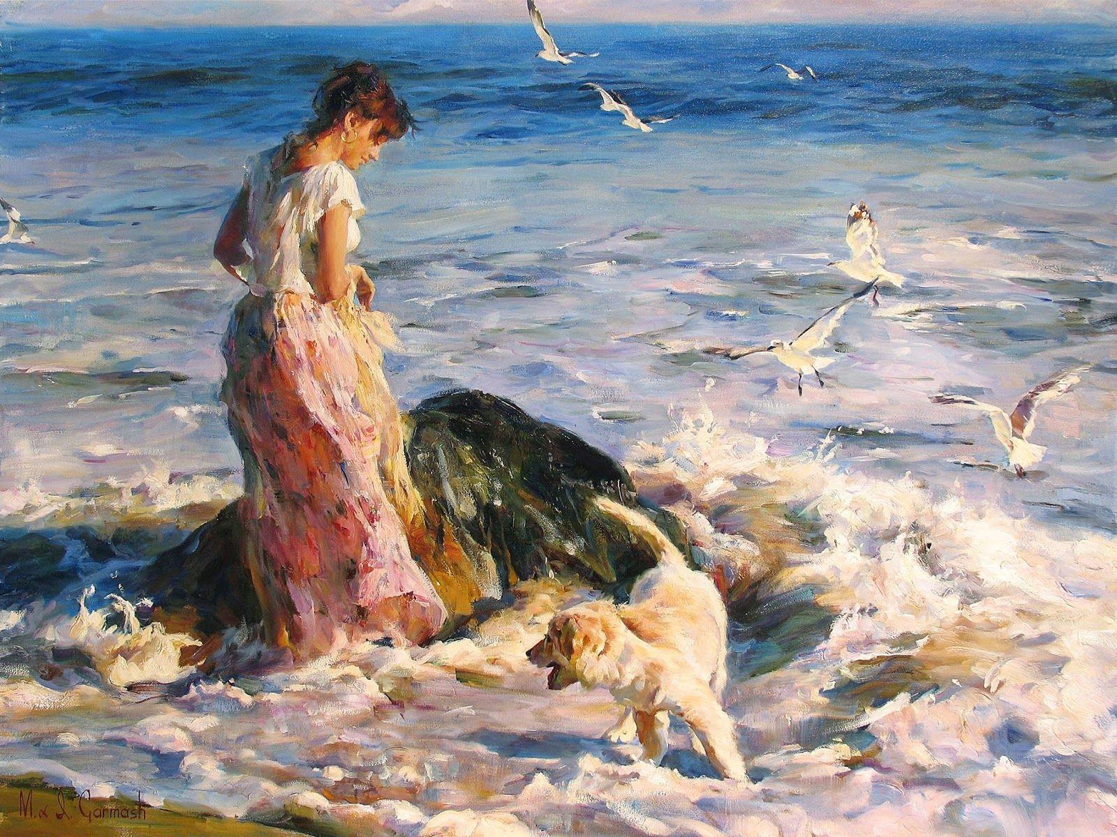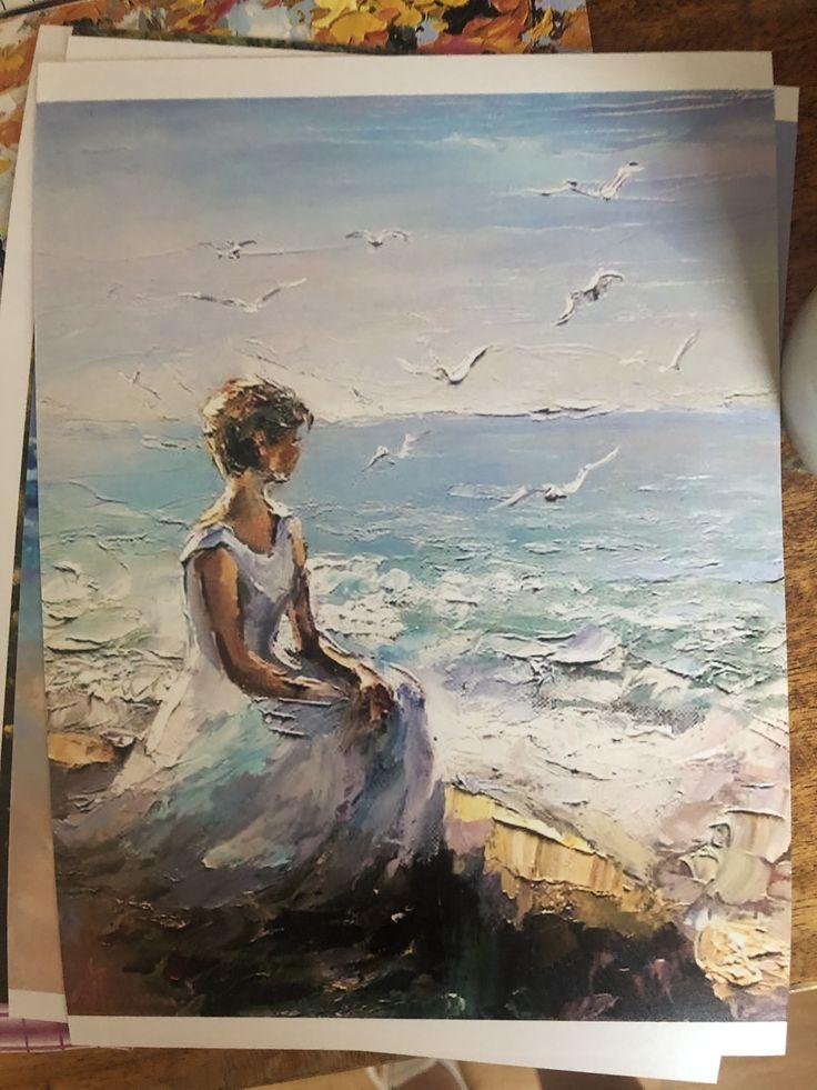 Девушка на берегу моря нарисованные
