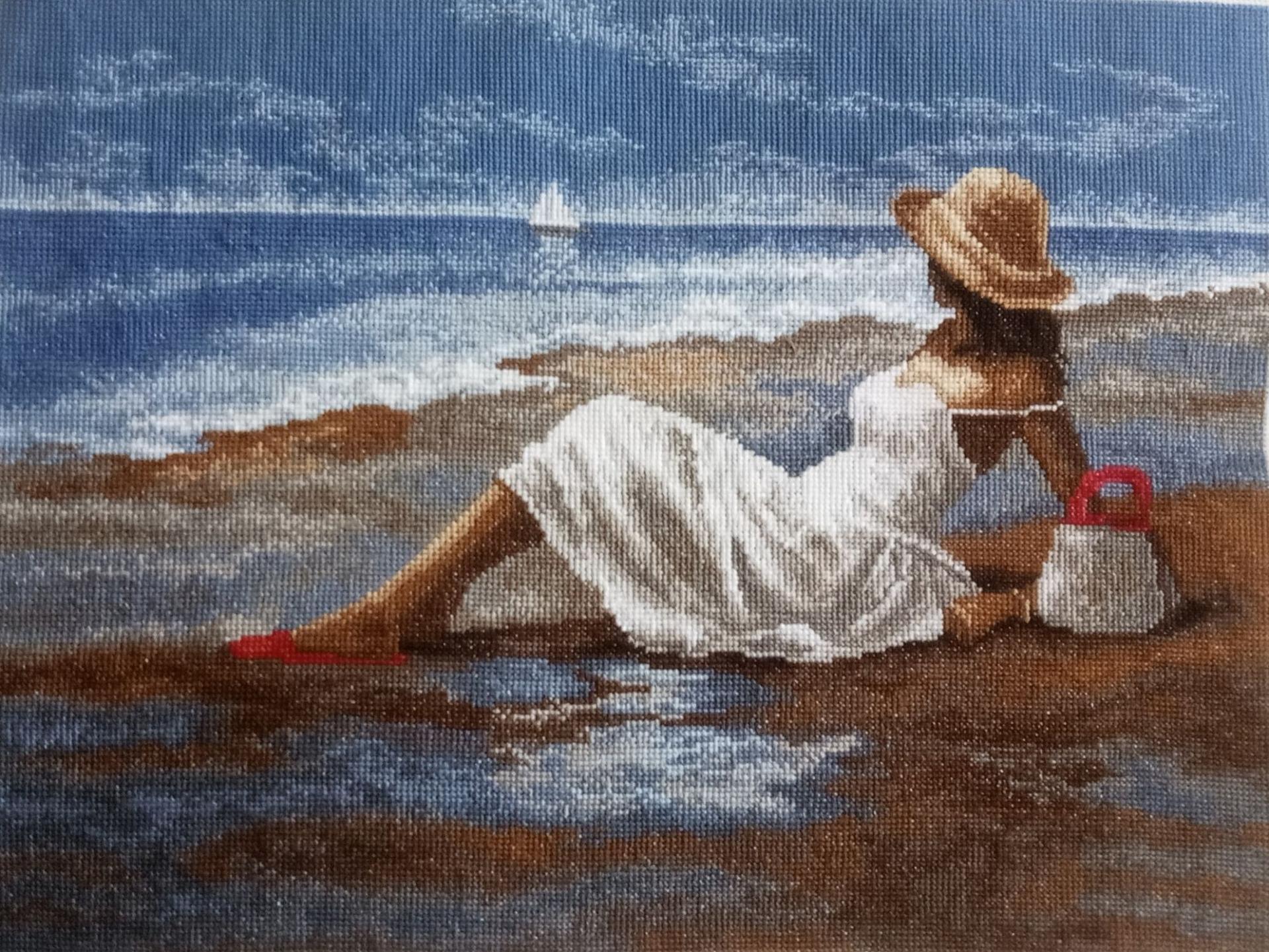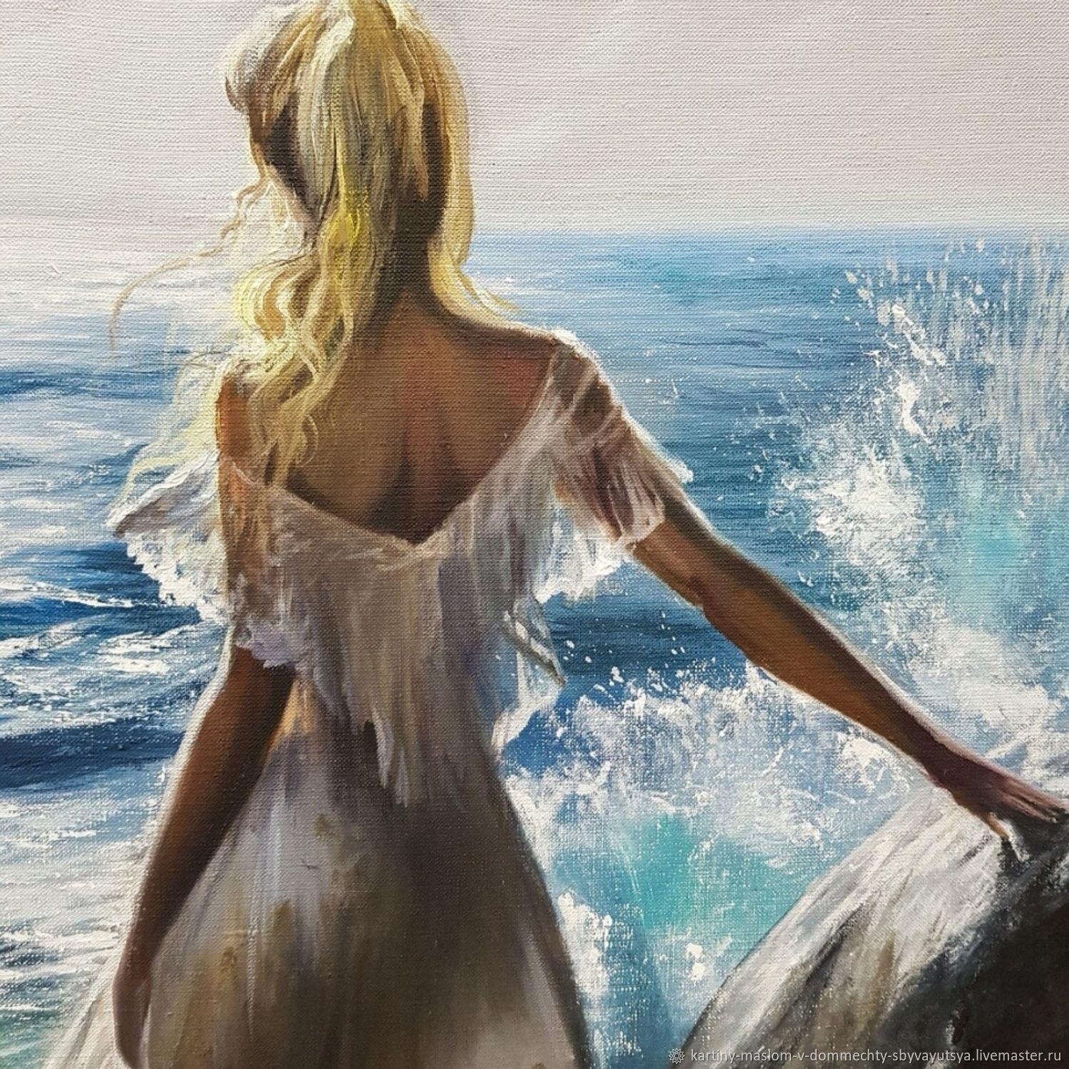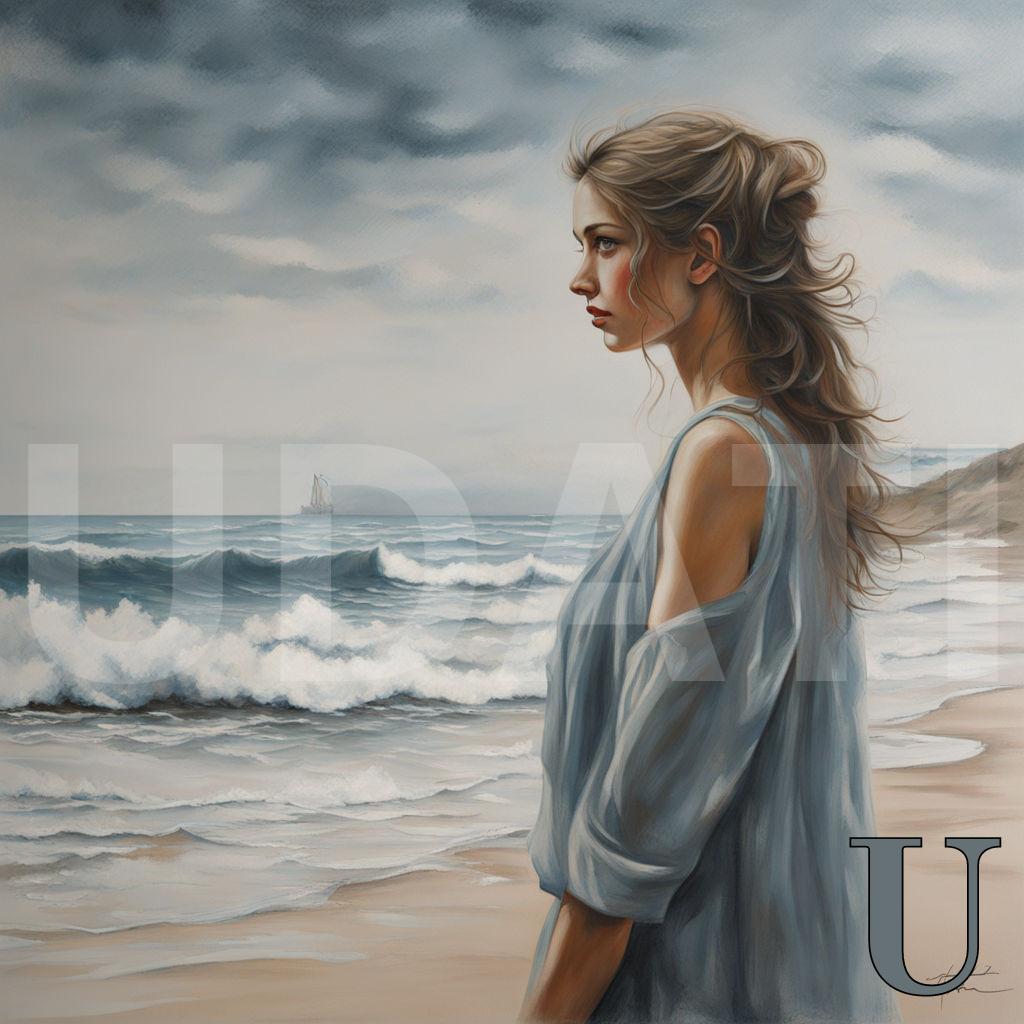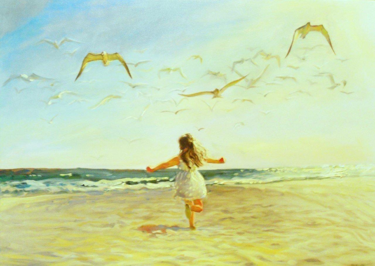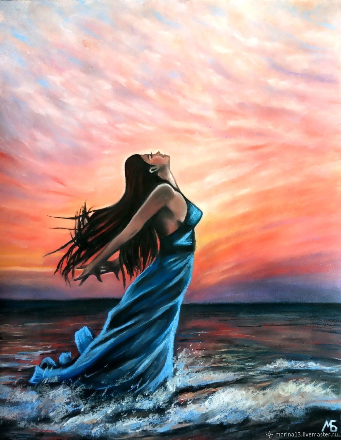 Девушка на берегу моря нарисованные